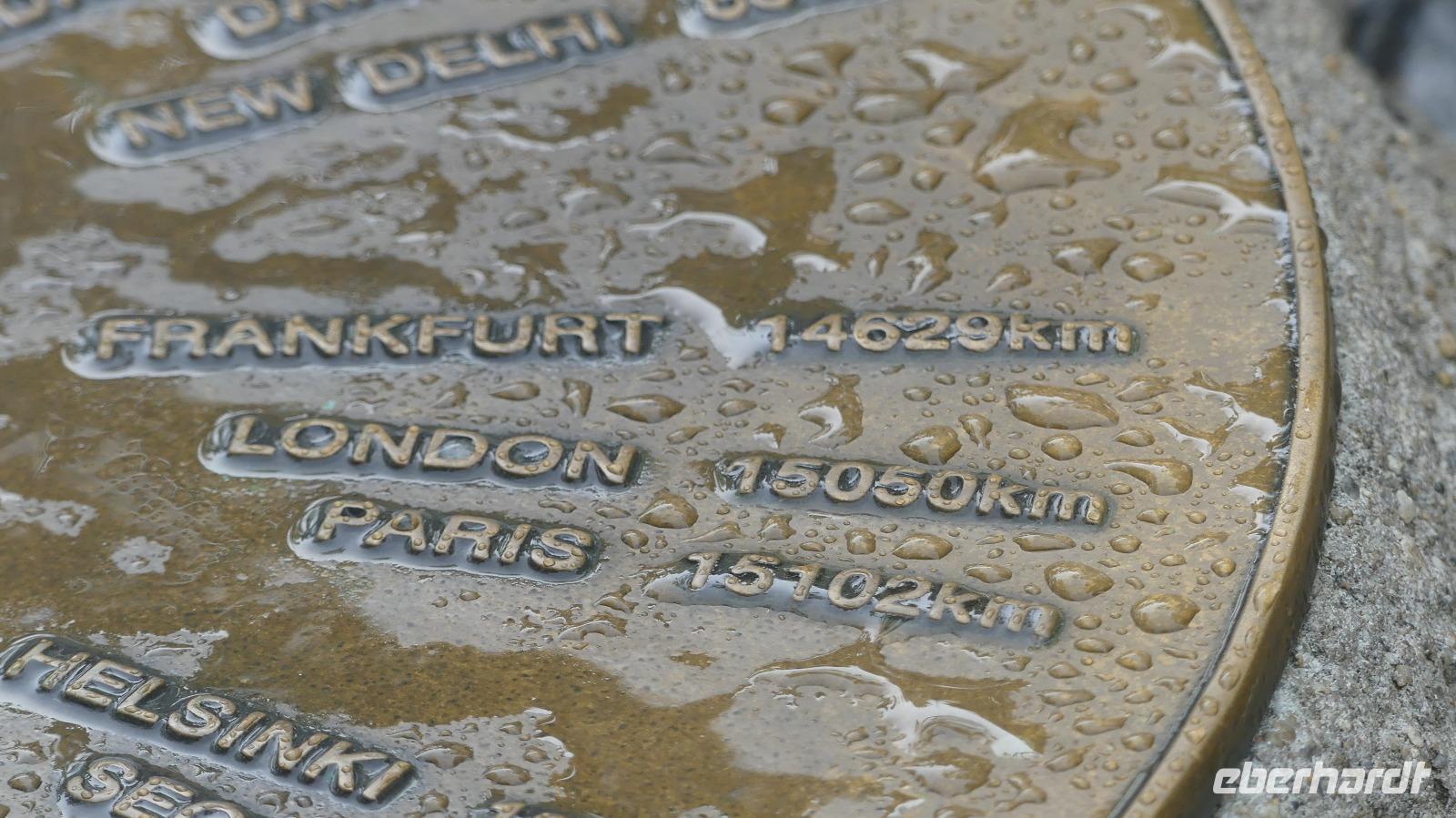 Auf der Rückfahrt zum Hotel halten wir im hübschen Badeort Port Douglas. Vom Aussichtspunkt kann man die tropische Küste gut sehen. Eine Bronzetafel bringt uns hier ins Bewußtsein, dass wir über 14.000 Kilometer von der Heimat entfernt sind.