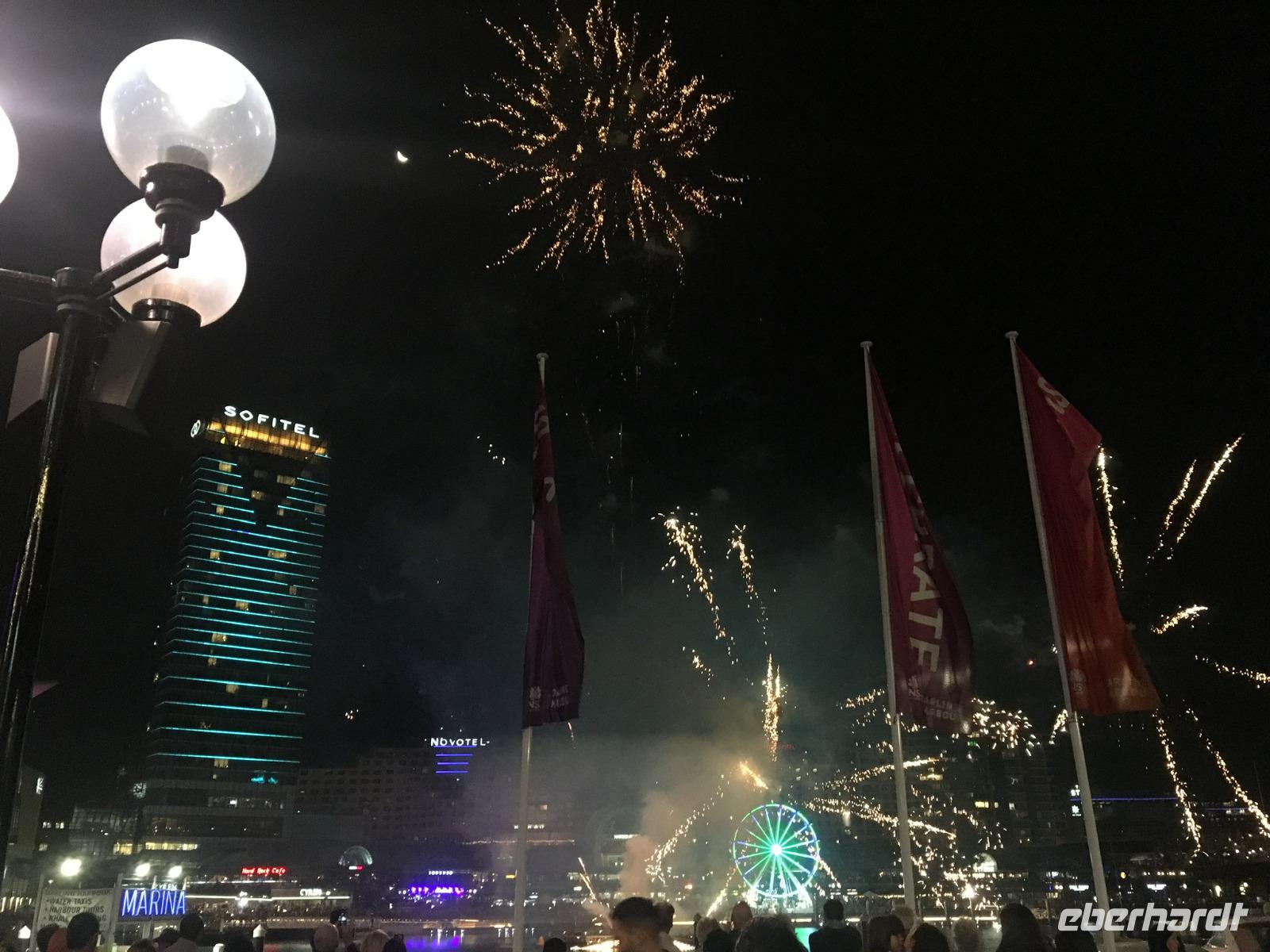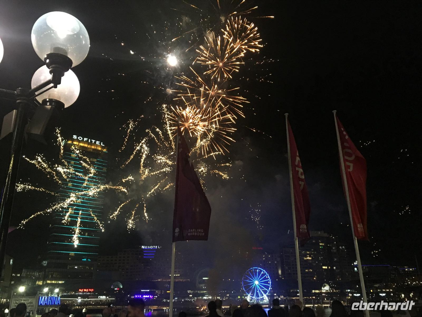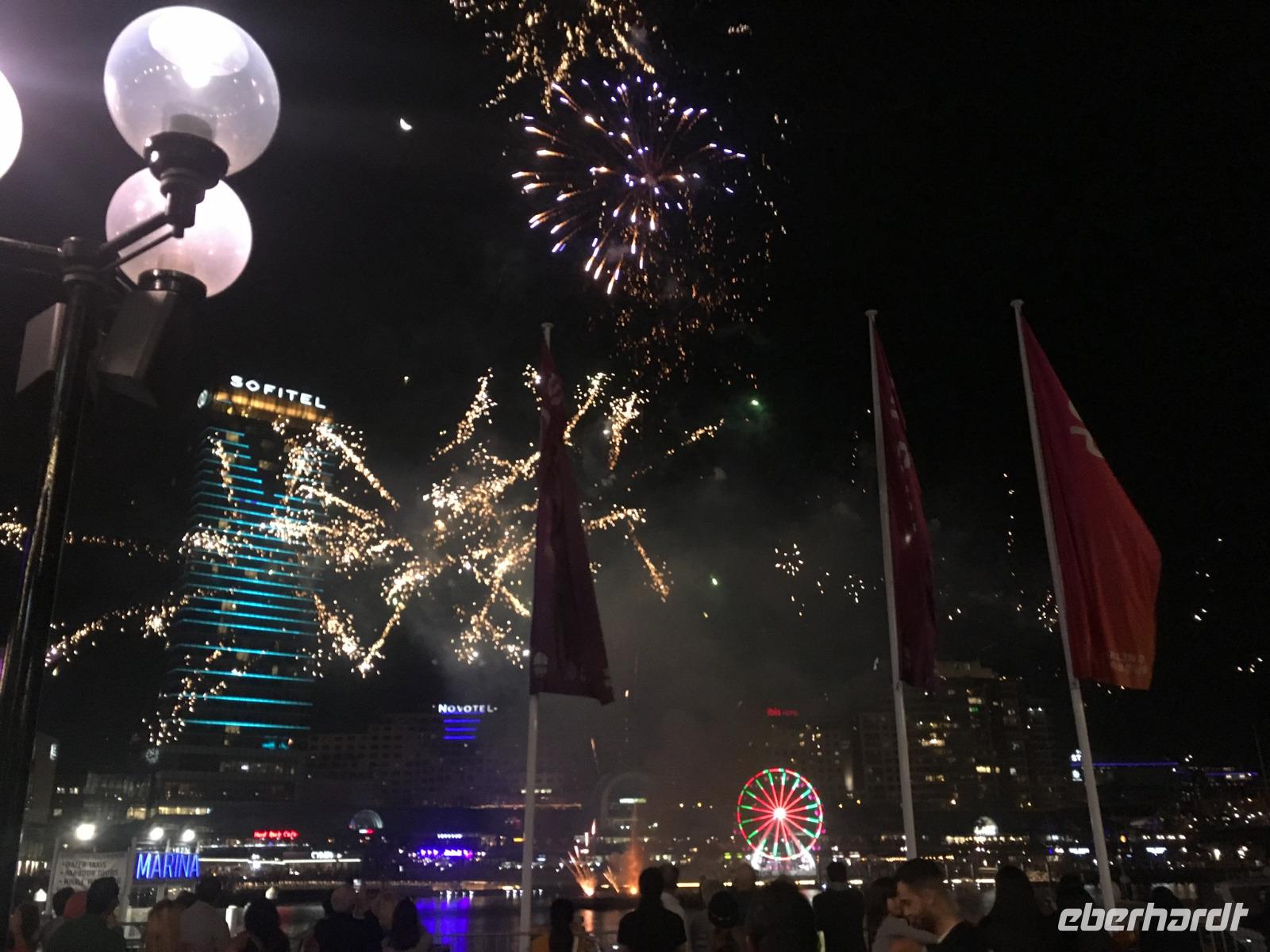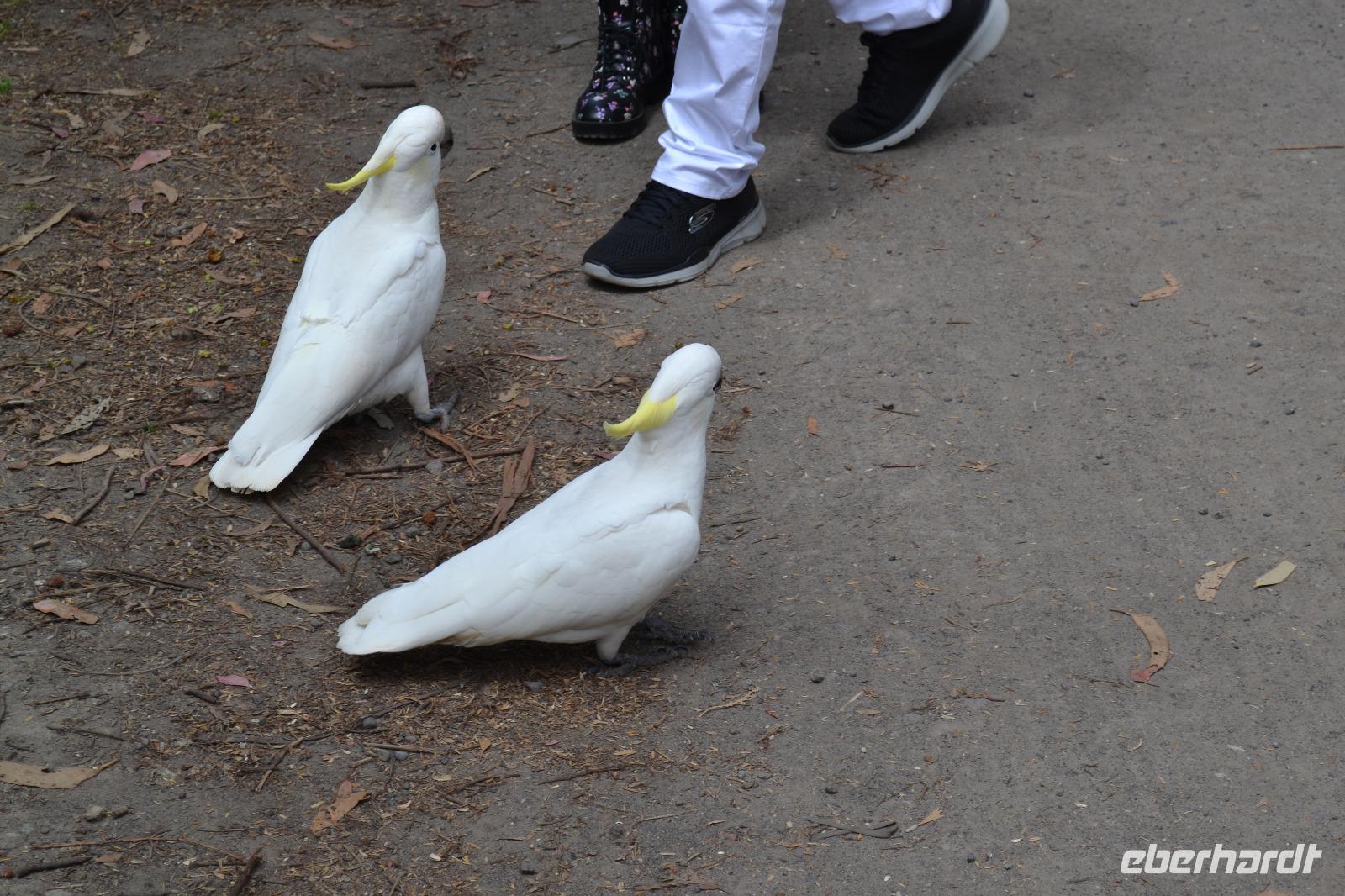 Nachdem es für einige Gäste eine kurze Nacht war fuhren wir heute 8 Uhr in die blauen Berge. Das Gebirge wurde im Jahr 2000 auf Grund der Artenvielfalt der Eukalyptusbäume zum UNESCO Weltnatur Erbe erklärt. Die ätherischen Öle aus den Blättern der Bäume verdunstet und der feine blaue Nebel liegt über den Wäldern. Daher kommt der Name der Blue Mountains. Nach der zweistündigen Busfahrt unternahmen wir einen Spaziergang bei Ulis Geheimtipp. Abseits vom Massentourismus konnten wir die Landschaft und Natur fast für uns allein genießen. Wir kamen an zahlreichen einheimischen Pflanzen und Bäumen vorbei. In Katoomba blieb uns Zeit von der Aussichtsplattform einen Blick auf die bekannten Drei Schwestern zu werfen. Wir erfuhren später von Uli, dass einer Aborigine-Legende zufolge es sich bei den Säulen um die drei schönen Schwestern Meehni, Wimlah und Gunnedoo handelt. Sie wurden von dem mächtigen Stammesältesten in Stein verwandelt. In dem kleinen Ort durften wir heute Mittagessen. Verschiedene Fleischsorten, Salat und Pommes wurden als Selbstbedienung auf den Tischen serviert. Für den Nachmittag fuhren wir in Featherdale Wildlife Park wo wir Koalas, Kängurus, verschiedene Vögel und weitere australische Tiere aus nächster Nähe betrachten konnten. Mittels eines Stempelpass konnte man die verschiedenen Stationen ablaufen. Einigen Tieren kamen wir bei Streicheleinheiten näher. Als Highlight stand ein äußerst schneller und einstudierter Vortrag eines jungen Mannes über Dingos mit anschließender Fütterung statt. Kurz vor 17 Uhr kamen wir nach Sydney zurück. Laura überraschte uns mit einem Eintritt auf den Sky Tower. Dies ermöglichte uns die örtliche Agentur auf Grund der Umstände beim ersten Abendessen in Melbourne. Ein toller Abschluss für die 3 Tage in und um Sydney! Der Abend, sowie das Abendessen konnte heute in Eigenregie gestaltet werden. Laura reservierte für einige Gäste dasselbe Restaurant wie am Vortag denn heute fand um 21 Uhr ein Feuerwerk im Hafen statt. Am Wochenende sind alle Bars und Restaurants in Australien gut gefüllt. Wir genossen wieder mal ein leckeres Essen mit Blick auf den durch das Feuerwerk besonders erleuchteten Hafen.