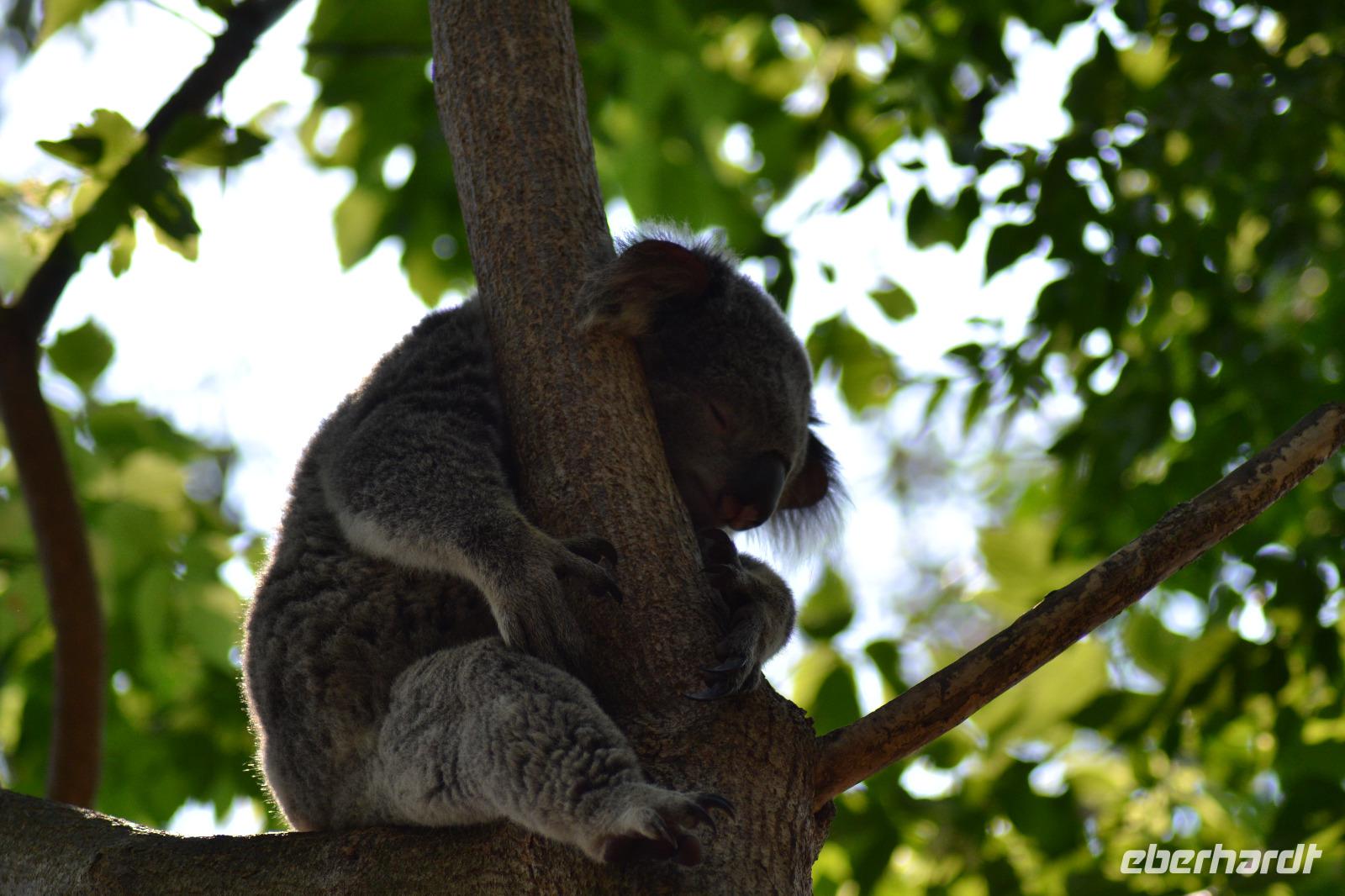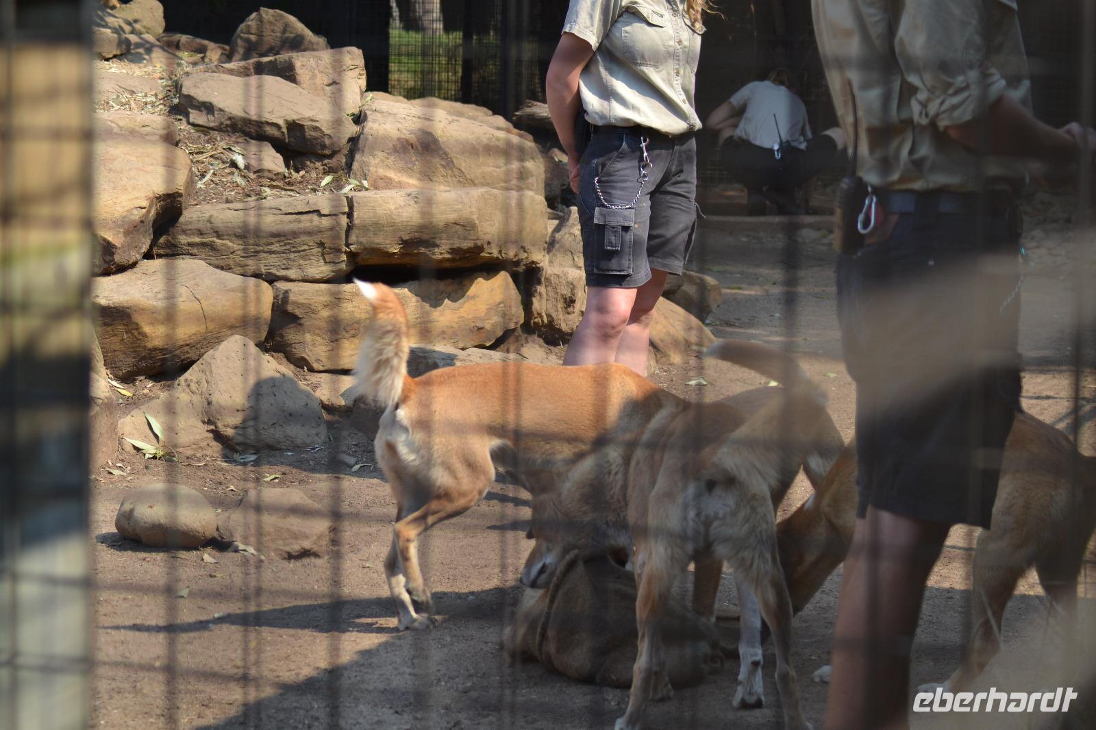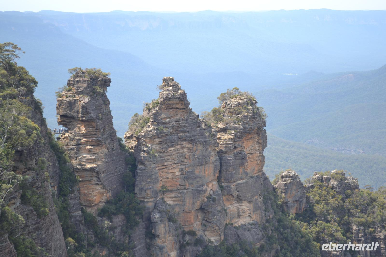 Nachdem es für einige Gäste eine kurze Nacht war fuhren wir heute 8 Uhr in die blauen Berge. Das Gebirge wurde im Jahr 2000 auf Grund der Artenvielfalt der Eukalyptusbäume zum UNESCO Weltnatur Erbe erklärt. Die ätherischen Öle aus den Blättern der Bäume verdunstet und der feine blaue Nebel liegt über den Wäldern. Daher kommt der Name der Blue Mountains. Nach der zweistündigen Busfahrt unternahmen wir einen Spaziergang bei Ulis Geheimtipp. Abseits vom Massentourismus konnten wir die Landschaft und Natur fast für uns allein genießen. Wir kamen an zahlreichen einheimischen Pflanzen und Bäumen vorbei. In Katoomba blieb uns Zeit von der Aussichtsplattform einen Blick auf die bekannten Drei Schwestern zu werfen. Wir erfuhren später von Uli, dass einer Aborigine-Legende zufolge es sich bei den Säulen um die drei schönen Schwestern Meehni, Wimlah und Gunnedoo handelt. Sie wurden von dem mächtigen Stammesältesten in Stein verwandelt. In dem kleinen Ort durften wir heute Mittagessen. Verschiedene Fleischsorten, Salat und Pommes wurden als Selbstbedienung auf den Tischen serviert. Für den Nachmittag fuhren wir in Featherdale Wildlife Park wo wir Koalas, Kängurus, verschiedene Vögel und weitere australische Tiere aus nächster Nähe betrachten konnten. Mittels eines Stempelpass konnte man die verschiedenen Stationen ablaufen. Einigen Tieren kamen wir bei Streicheleinheiten näher. Als Highlight stand ein äußerst schneller und einstudierter Vortrag eines jungen Mannes über Dingos mit anschließender Fütterung statt. Kurz vor 17 Uhr kamen wir nach Sydney zurück. Laura überraschte uns mit einem Eintritt auf den Sky Tower. Dies ermöglichte uns die örtliche Agentur auf Grund der Umstände beim ersten Abendessen in Melbourne. Ein toller Abschluss für die 3 Tage in und um Sydney! Der Abend, sowie das Abendessen konnte heute in Eigenregie gestaltet werden. Laura reservierte für einige Gäste dasselbe Restaurant wie am Vortag denn heute fand um 21 Uhr ein Feuerwerk im Hafen statt. Am Wochenende sind alle Bars und Restaurants in Australien gut gefüllt. Wir genossen wieder mal ein leckeres Essen mit Blick auf den durch das Feuerwerk besonders erleuchteten Hafen.