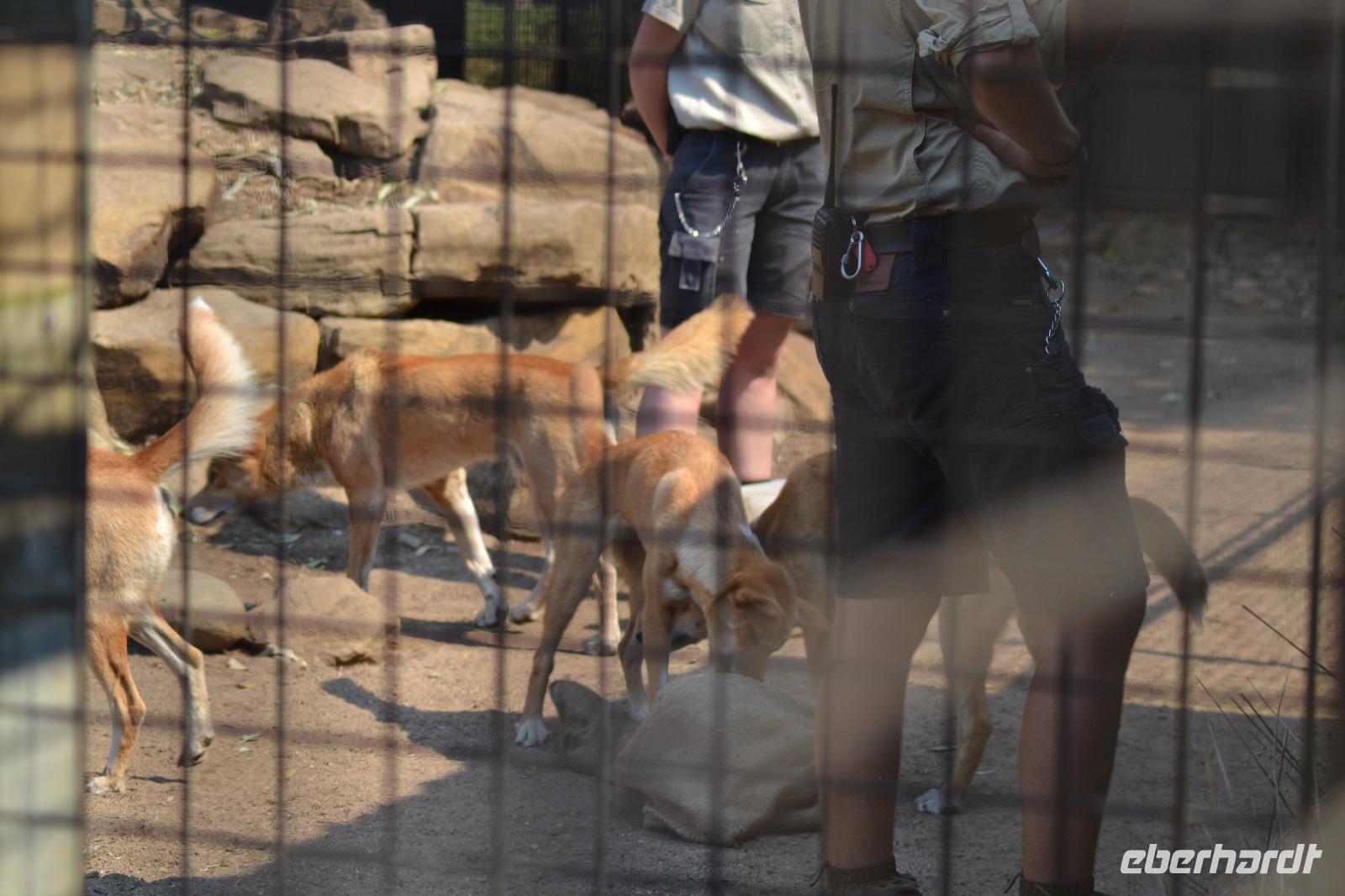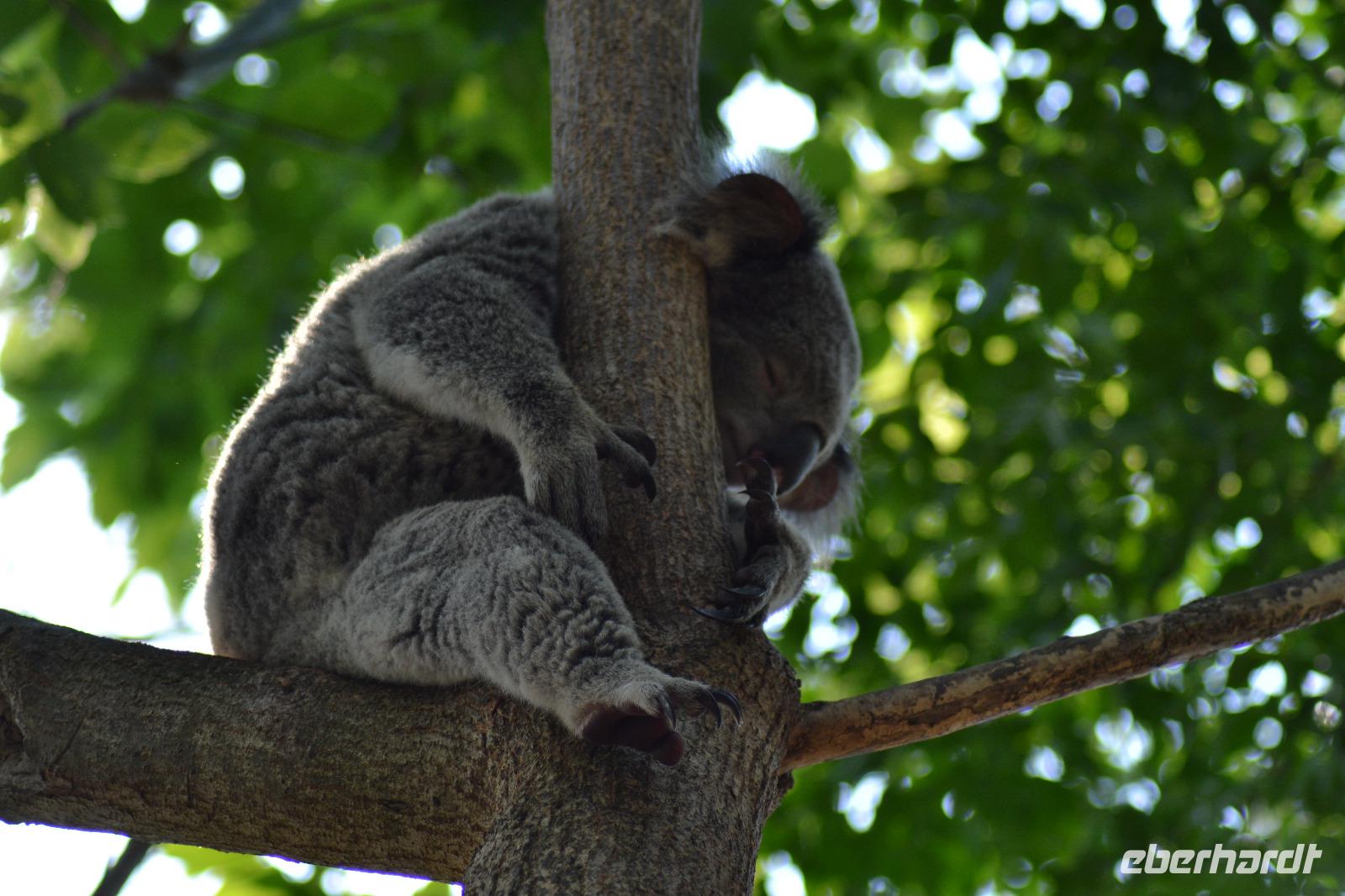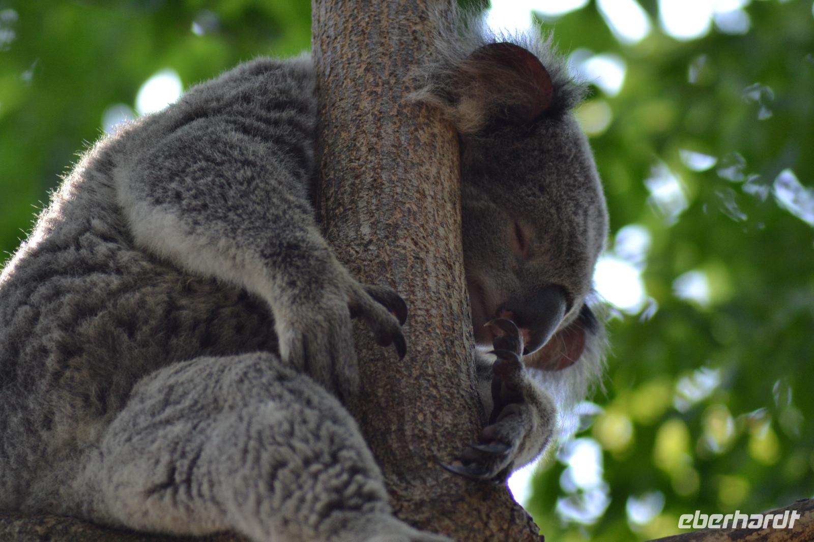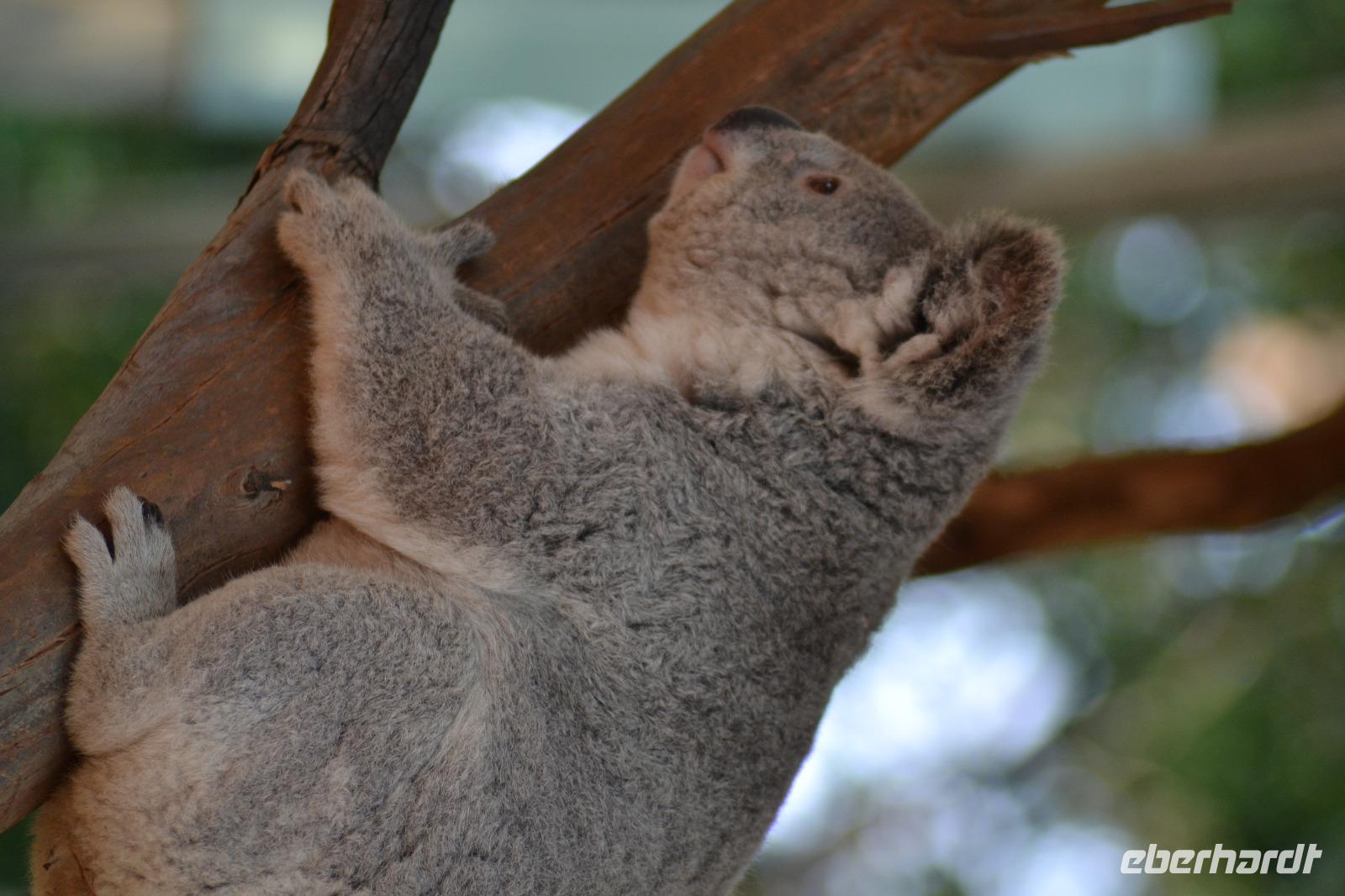 Nachdem es für einige Gäste eine kurze Nacht war fuhren wir heute 8 Uhr in die blauen Berge. Das Gebirge wurde im Jahr 2000 auf Grund der Artenvielfalt der Eukalyptusbäume zum UNESCO Weltnatur Erbe erklärt. Die ätherischen Öle aus den Blättern der Bäume verdunstet und der feine blaue Nebel liegt über den Wäldern. Daher kommt der Name der Blue Mountains. Nach der zweistündigen Busfahrt unternahmen wir einen Spaziergang bei Ulis Geheimtipp. Abseits vom Massentourismus konnten wir die Landschaft und Natur fast für uns allein genießen. Wir kamen an zahlreichen einheimischen Pflanzen und Bäumen vorbei. In Katoomba blieb uns Zeit von der Aussichtsplattform einen Blick auf die bekannten Drei Schwestern zu werfen. Wir erfuhren später von Uli, dass einer Aborigine-Legende zufolge es sich bei den Säulen um die drei schönen Schwestern Meehni, Wimlah und Gunnedoo handelt. Sie wurden von dem mächtigen Stammesältesten in Stein verwandelt. In dem kleinen Ort durften wir heute Mittagessen. Verschiedene Fleischsorten, Salat und Pommes wurden als Selbstbedienung auf den Tischen serviert. Für den Nachmittag fuhren wir in Featherdale Wildlife Park wo wir Koalas, Kängurus, verschiedene Vögel und weitere australische Tiere aus nächster Nähe betrachten konnten. Mittels eines Stempelpass konnte man die verschiedenen Stationen ablaufen. Einigen Tieren kamen wir bei Streicheleinheiten näher. Als Highlight stand ein äußerst schneller und einstudierter Vortrag eines jungen Mannes über Dingos mit anschließender Fütterung statt. Kurz vor 17 Uhr kamen wir nach Sydney zurück. Laura überraschte uns mit einem Eintritt auf den Sky Tower. Dies ermöglichte uns die örtliche Agentur auf Grund der Umstände beim ersten Abendessen in Melbourne. Ein toller Abschluss für die 3 Tage in und um Sydney! Der Abend, sowie das Abendessen konnte heute in Eigenregie gestaltet werden. Laura reservierte für einige Gäste dasselbe Restaurant wie am Vortag denn heute fand um 21 Uhr ein Feuerwerk im Hafen statt. Am Wochenende sind alle Bars und Restaurants in Australien gut gefüllt. Wir genossen wieder mal ein leckeres Essen mit Blick auf den durch das Feuerwerk besonders erleuchteten Hafen.