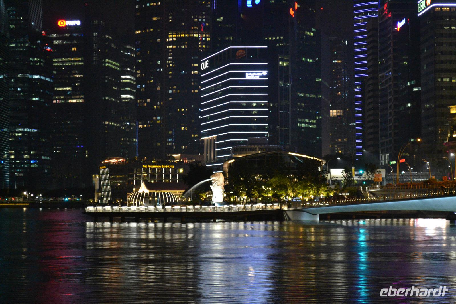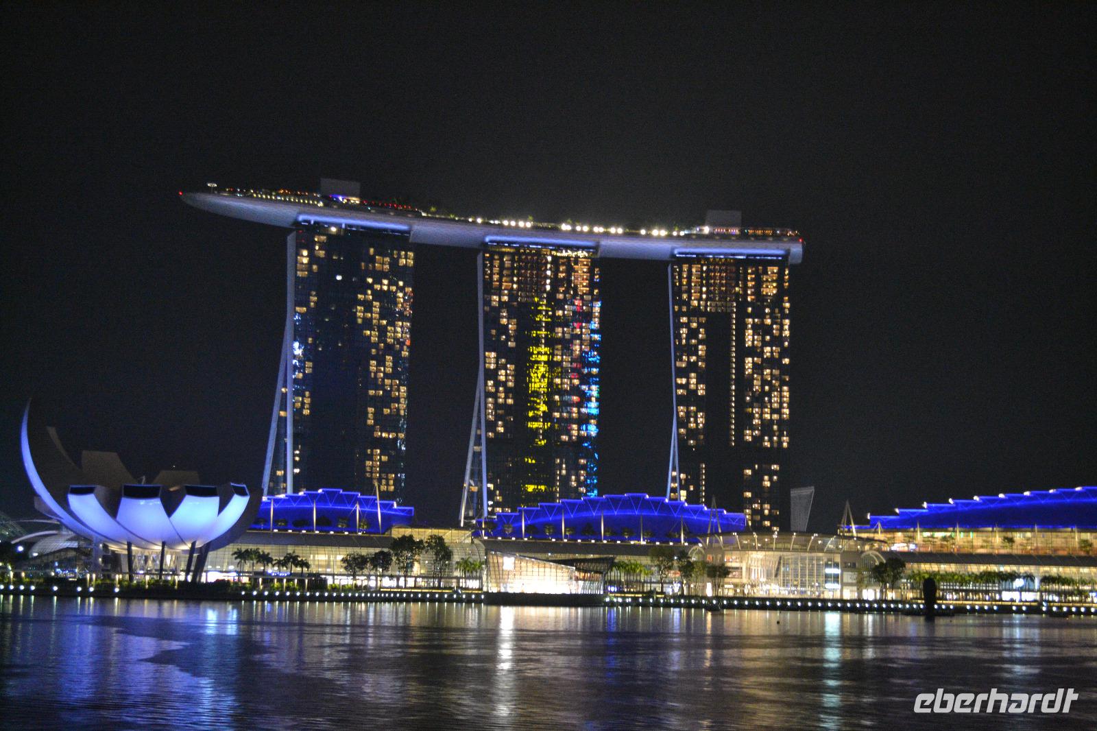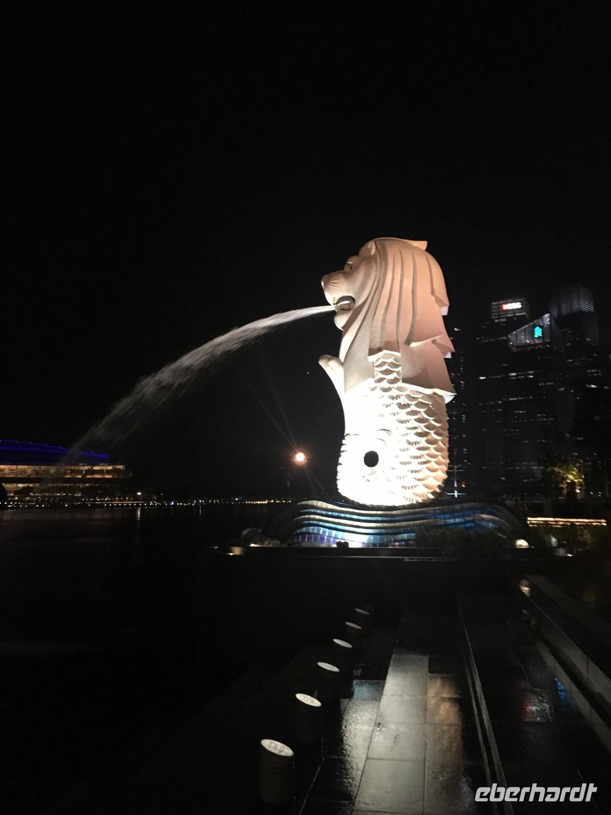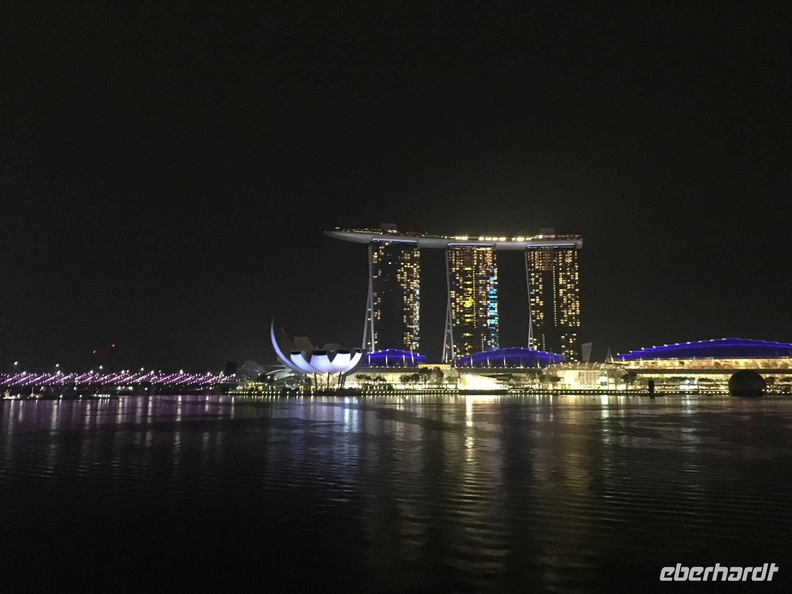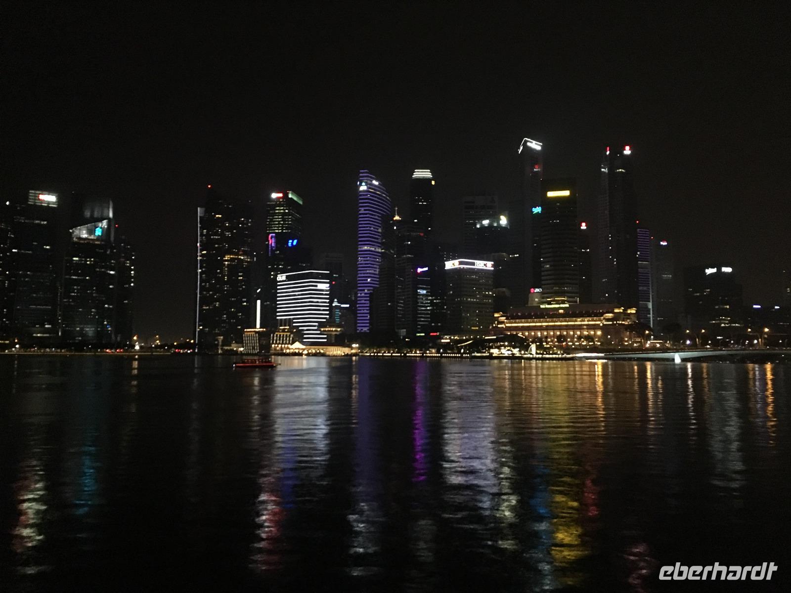 Nach knapp 14 Stunden Flug trafen wir am späten Nachmittag in der Weltmetropole Singapur ein. Wir bezogen zunächst unsere Hotelzimmer und machten uns für den Abend frisch. Laura bot uns an mit der Bahn bis zur Marina Bay Bucht zu fahren und dort die Lichtershow gemeinsam anzusehen. Wir trafen uns 19 Uhr an der Lobby, aber leider fing es plötzlich an aus allen Kannen zu Regnen und Blitze kamen auch dazu. Somit viel unser Abendliches Programm leider wortwörtlich ins Wasser und wir aßen zusammen in dem Hotel Restaurant. Müde und erschöpft von dem langen Flug fielen wir dankbar in unsere Betten.