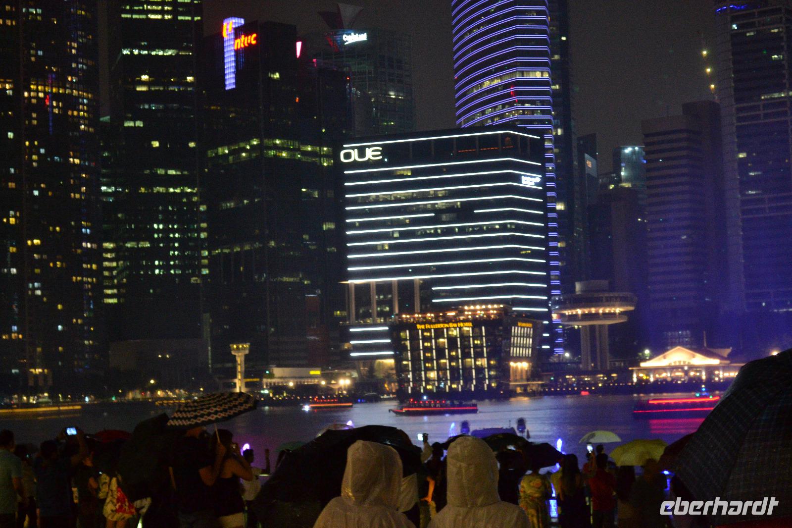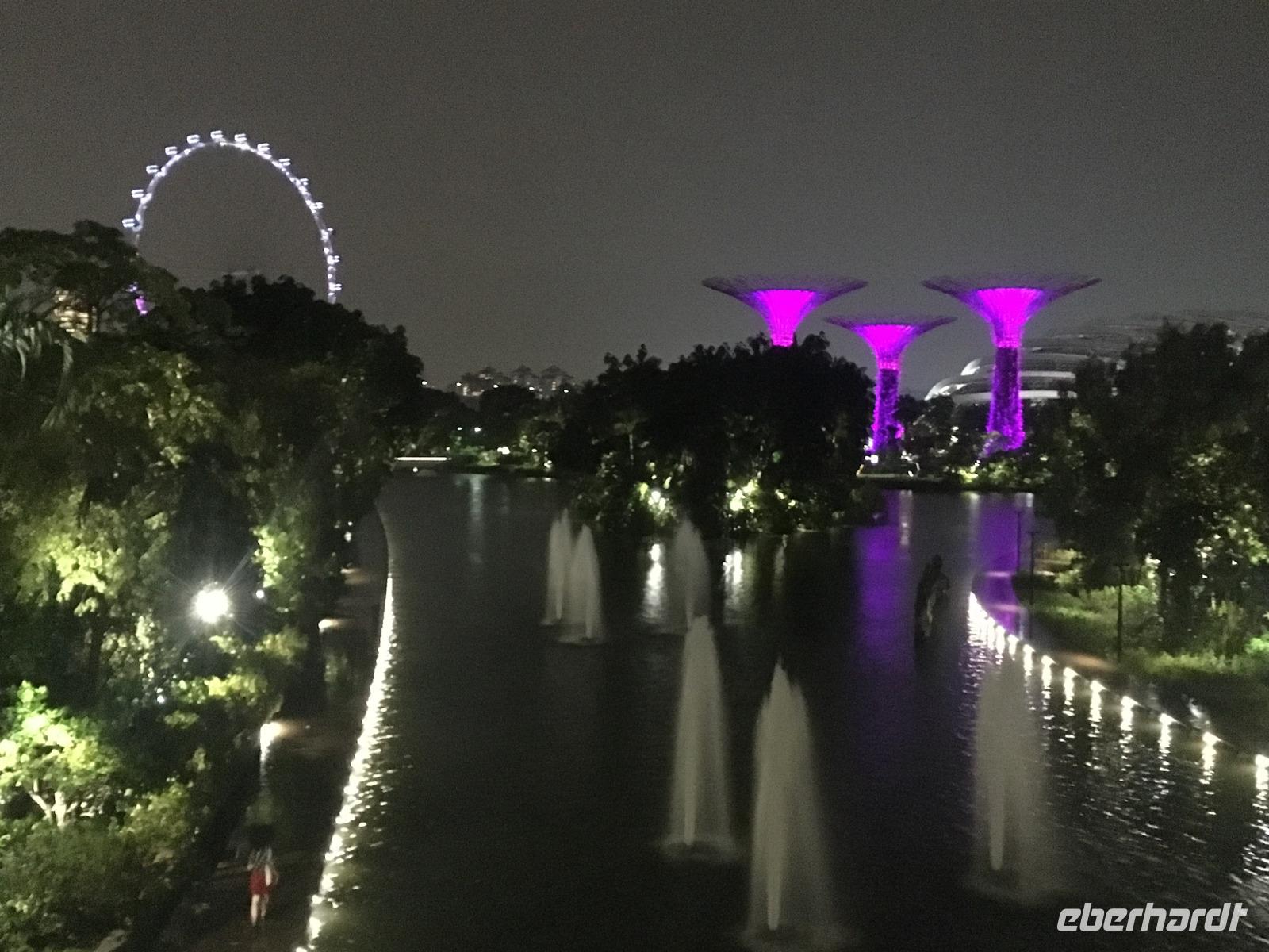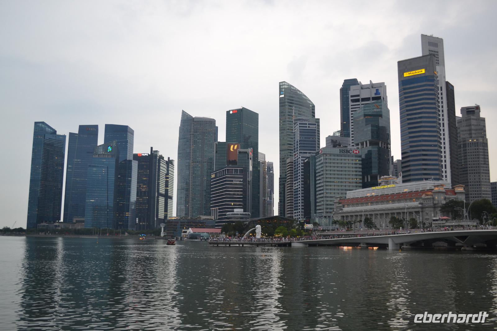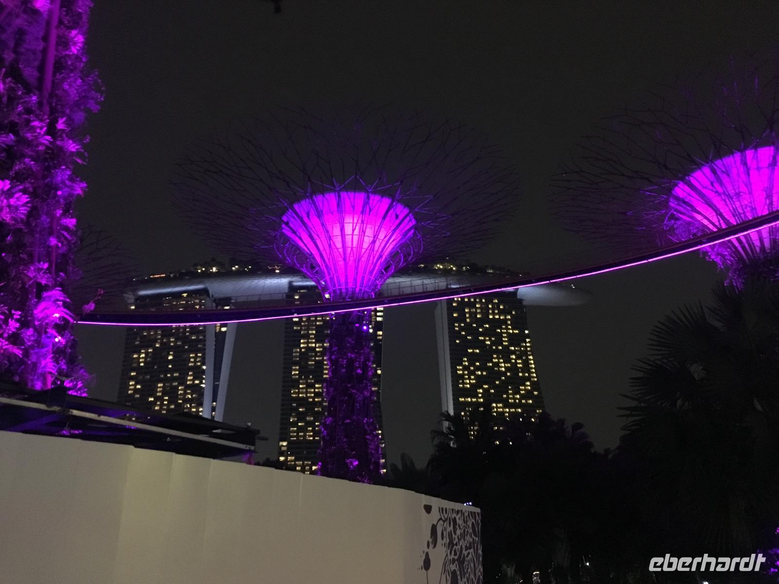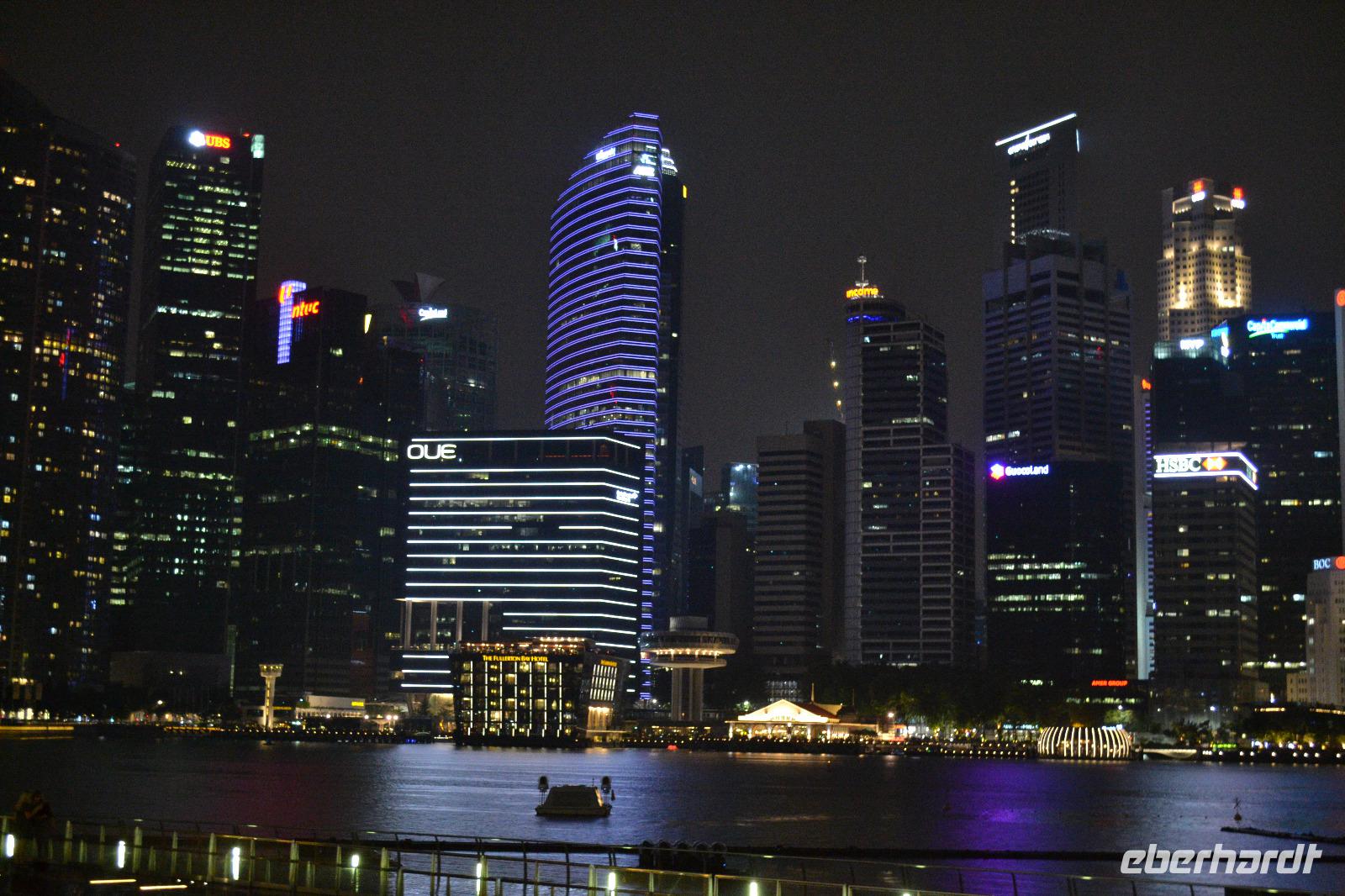 Nach knapp 14 Stunden Flug trafen wir am späten Nachmittag in der Weltmetropole Singapur ein. Wir bezogen zunächst unsere Hotelzimmer und machten uns für den Abend frisch. Laura bot uns an mit der Bahn bis zur Marina Bay Bucht zu fahren und dort die Lichtershow gemeinsam anzusehen. Wir trafen uns 19 Uhr an der Lobby, aber leider fing es plötzlich an aus allen Kannen zu Regnen und Blitze kamen auch dazu. Somit viel unser Abendliches Programm leider wortwörtlich ins Wasser und wir aßen zusammen in dem Hotel Restaurant. Müde und erschöpft von dem langen Flug fielen wir dankbar in unsere Betten.