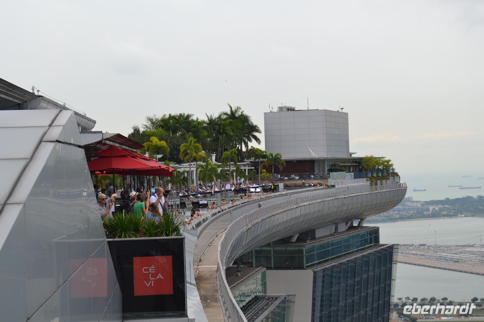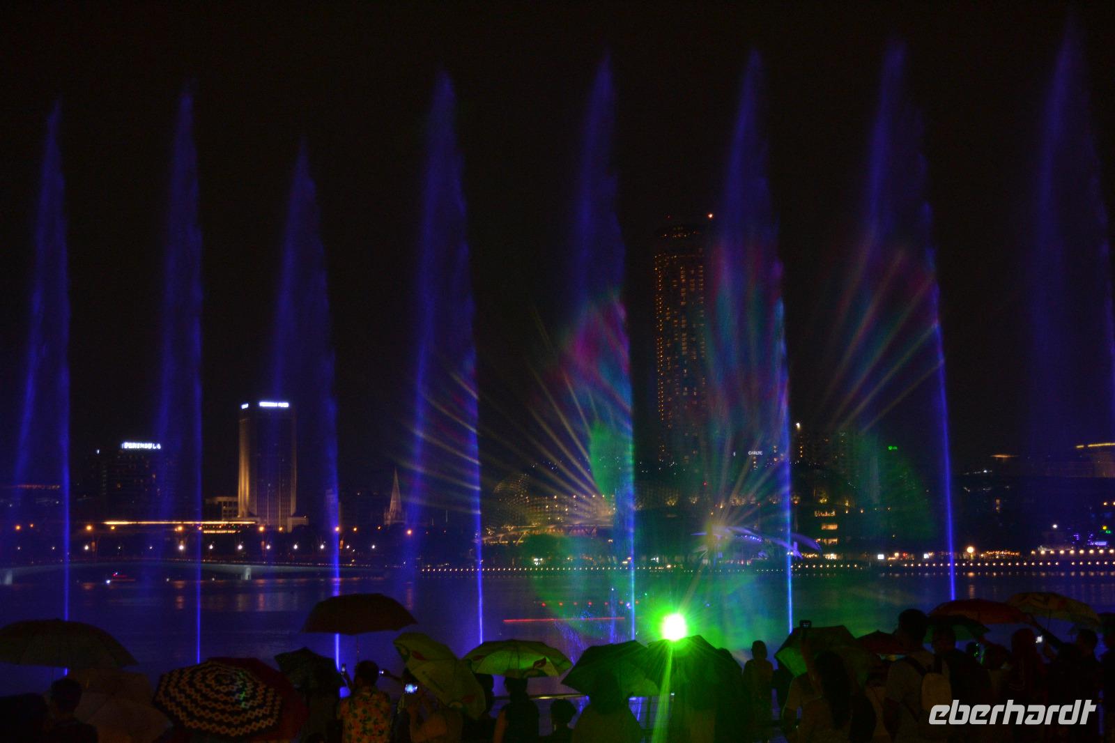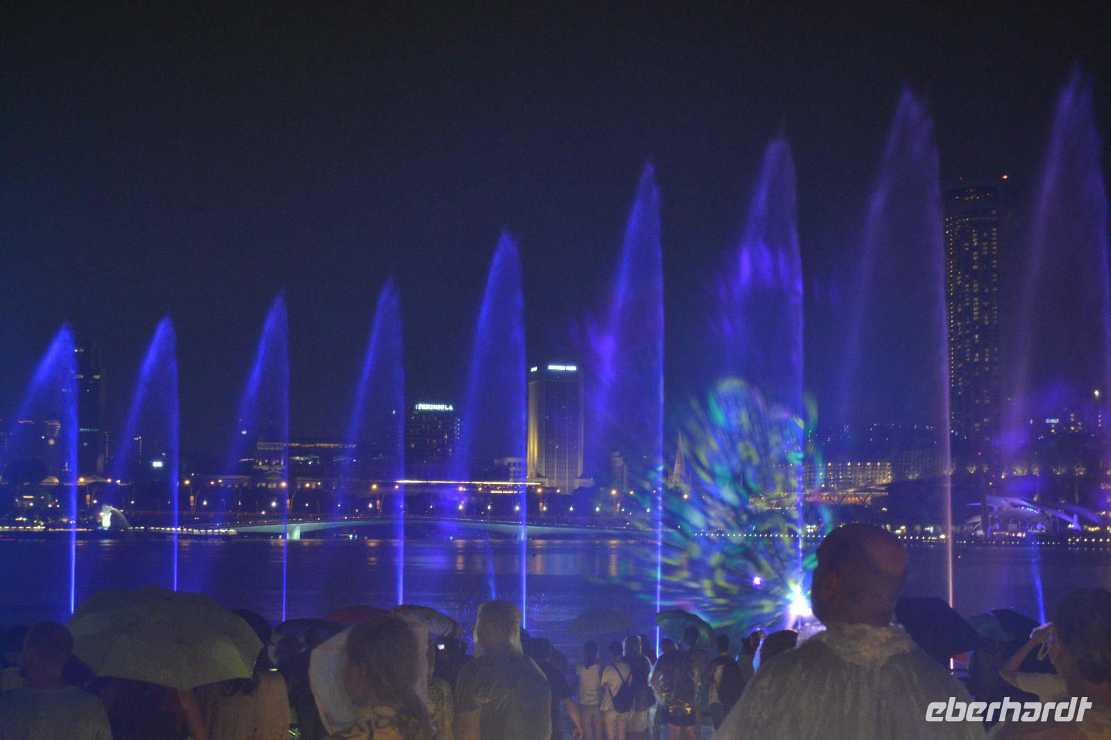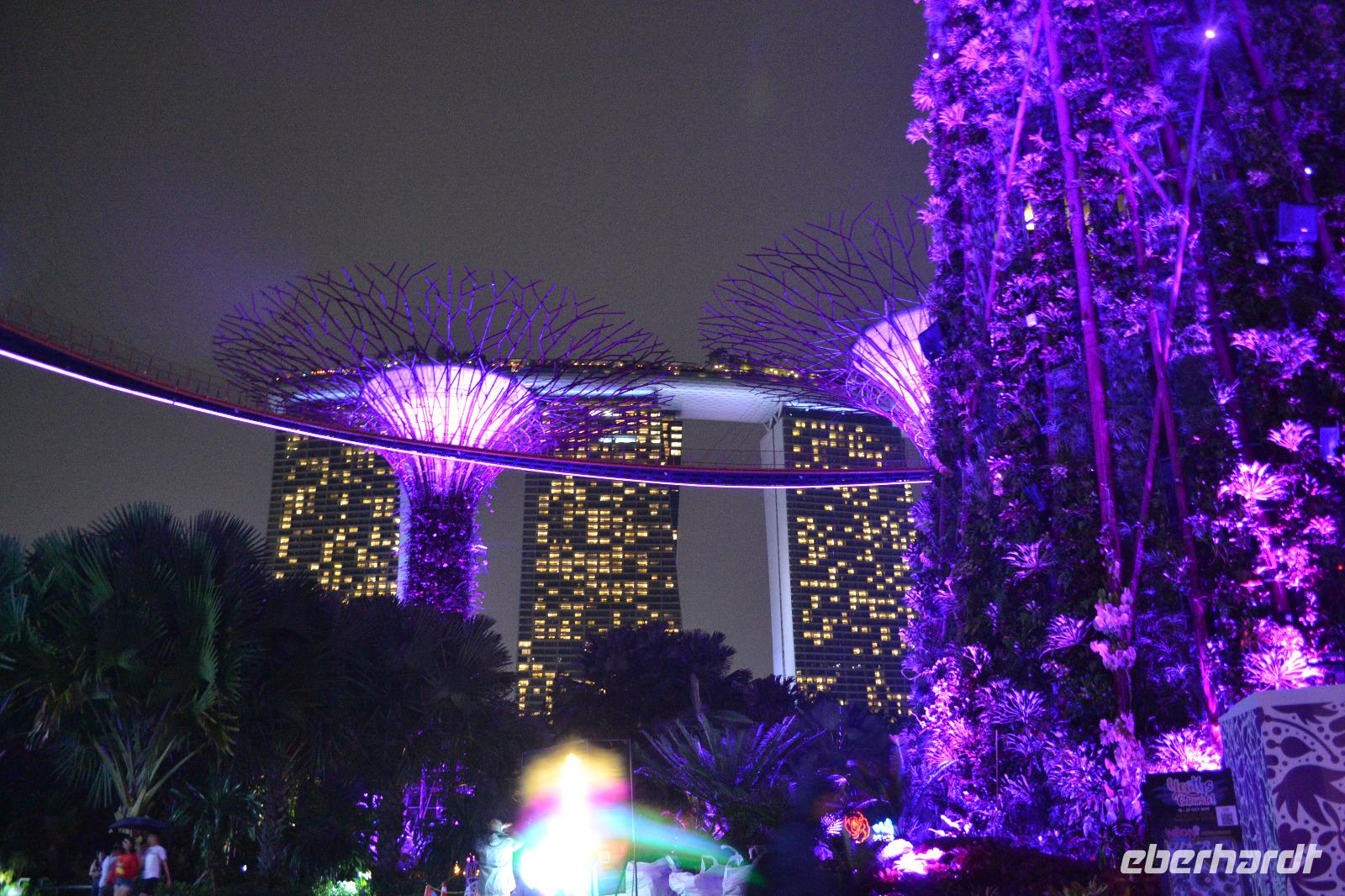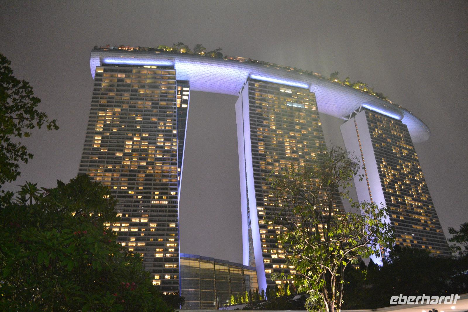 Nach knapp 14 Stunden Flug trafen wir am späten Nachmittag in der Weltmetropole Singapur ein. Wir bezogen zunächst unsere Hotelzimmer und machten uns für den Abend frisch. Laura bot uns an mit der Bahn bis zur Marina Bay Bucht zu fahren und dort die Lichtershow gemeinsam anzusehen. Wir trafen uns 19 Uhr an der Lobby, aber leider fing es plötzlich an aus allen Kannen zu Regnen und Blitze kamen auch dazu. Somit viel unser Abendliches Programm leider wortwörtlich ins Wasser und wir aßen zusammen in dem Hotel Restaurant. Müde und erschöpft von dem langen Flug fielen wir dankbar in unsere Betten.