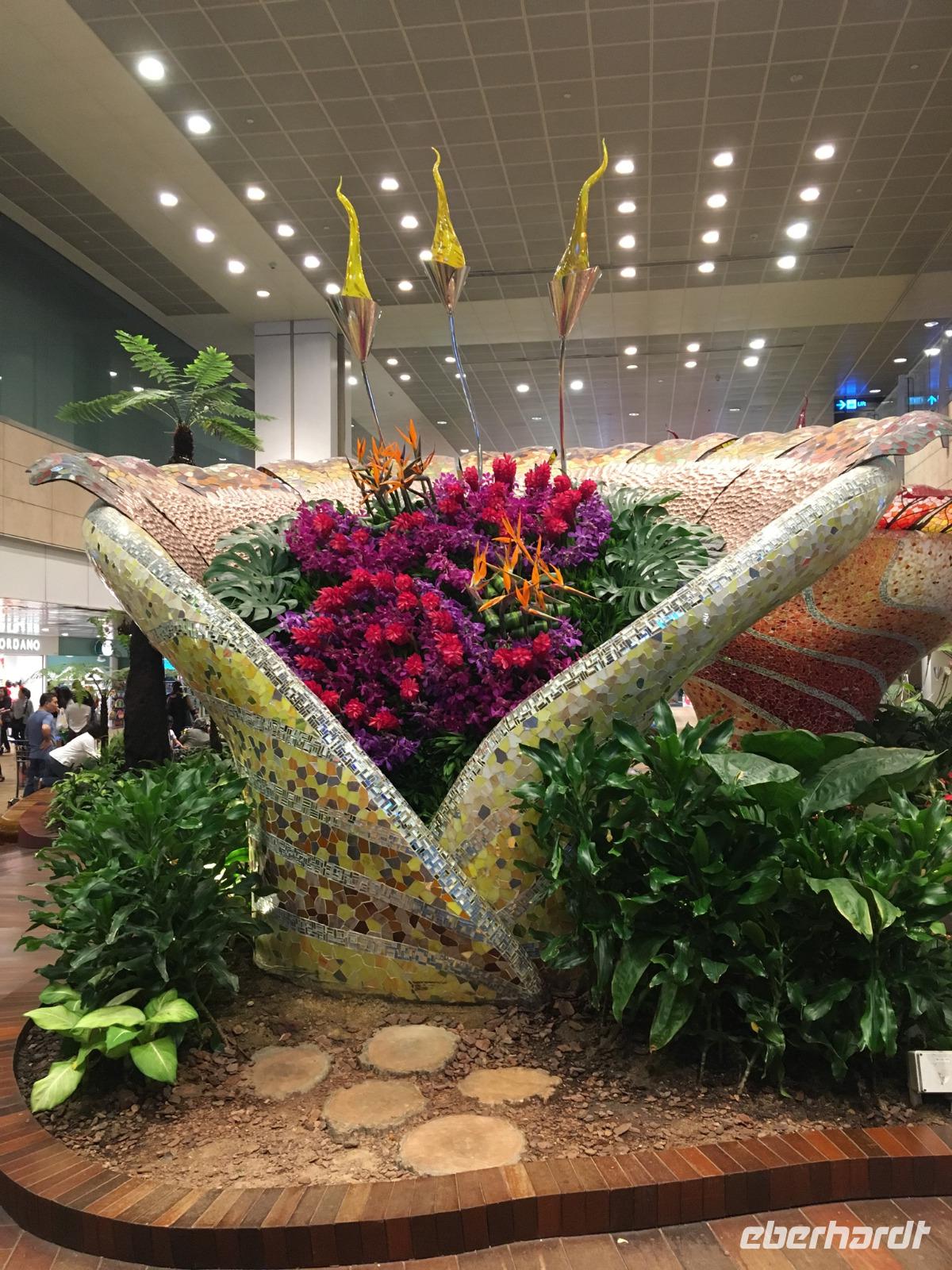 In den frühen Morgenstunden reiste ein Teil unserer Australien Gruppe weiter nach Neuseeland um das nächste Abenteuer zu beginnen. Die restlichen 9 Gäste flogen gemeinsam mit Laura nach Deutschland zurück. Zunächst stand der lange Flug nach Singapur an. Viele nutzen die Zeit so gut wie es ging den fehlenden Schlaf nach zu holen. Am Nachmittag landeten wir in Singapur und uns blieben 8 Stunden Aufenthalt auf einem der schönsten Flughäfen der Welt. Die Zeit verging sehr schnell! Wir besichtigten den Schmetterlings-, Orchideen -und Sonnenblumengarten, bummelten durch die vielen Geschäfte und setzten uns für das Abendessen gemütlich in ein Restaurant. Wir haben in der Zeit noch lange nicht alles gesehen. Keiner von uns nutze die Möglichkeit für ein paar Bahnen im Pool des Flughafens zu schwimmen. Kurz vor 24 Uhr stiegen wir dann für unsere letzte große Flugetappe in den Flieger.