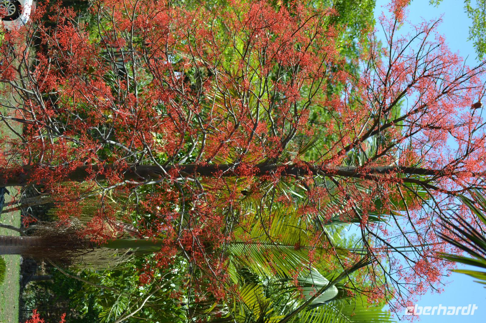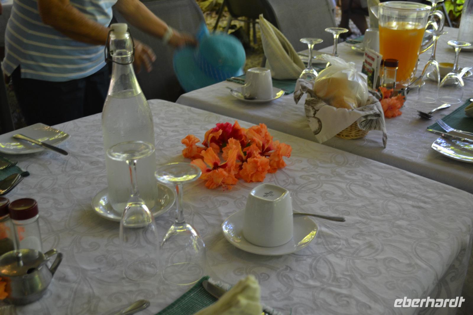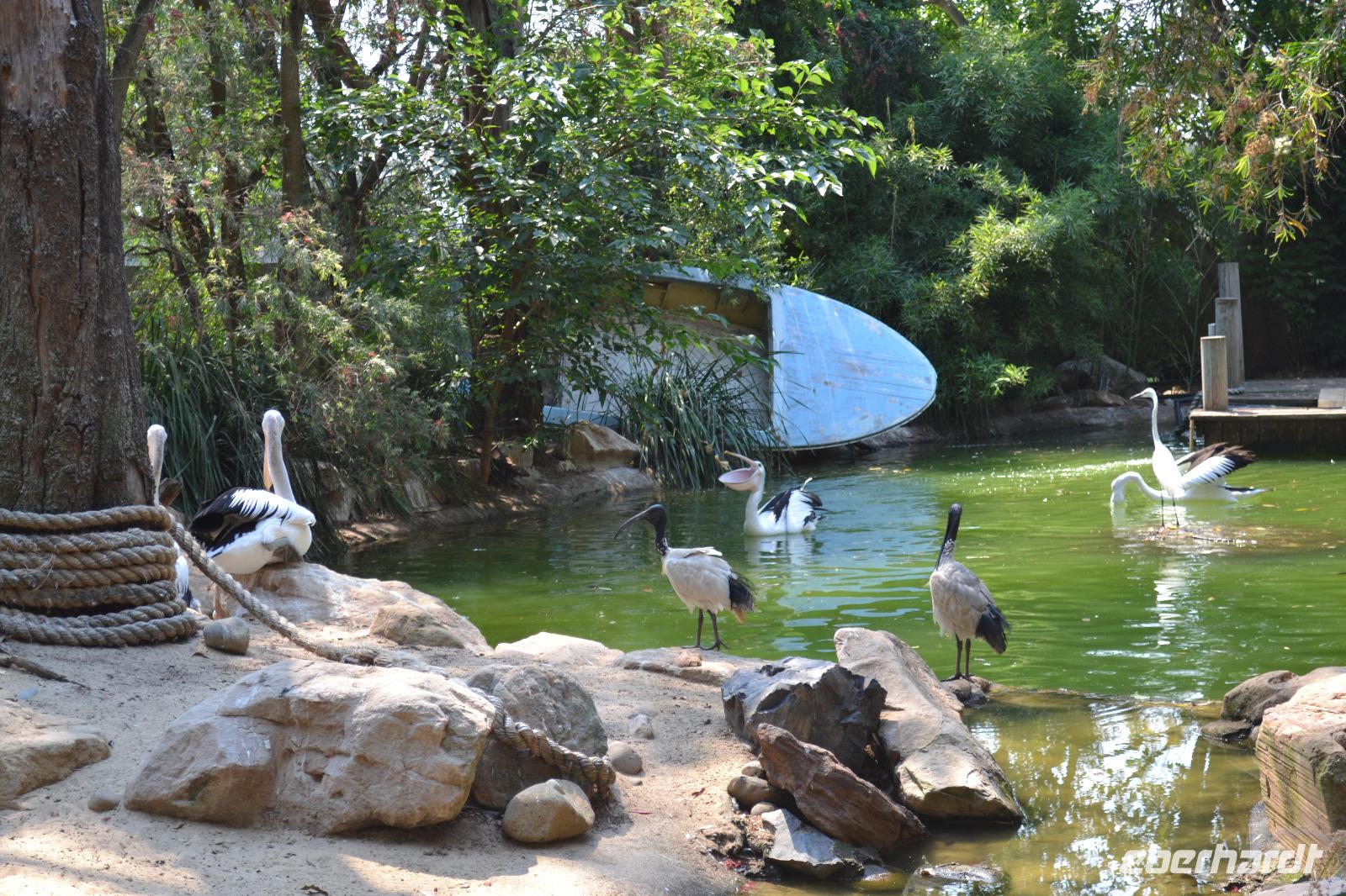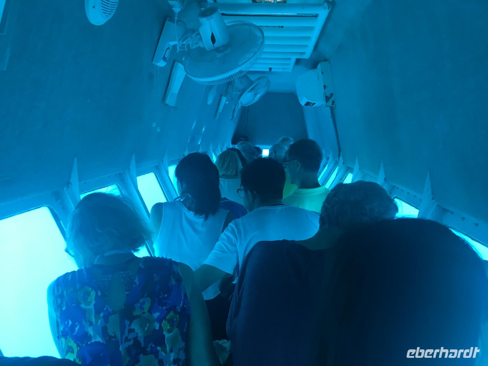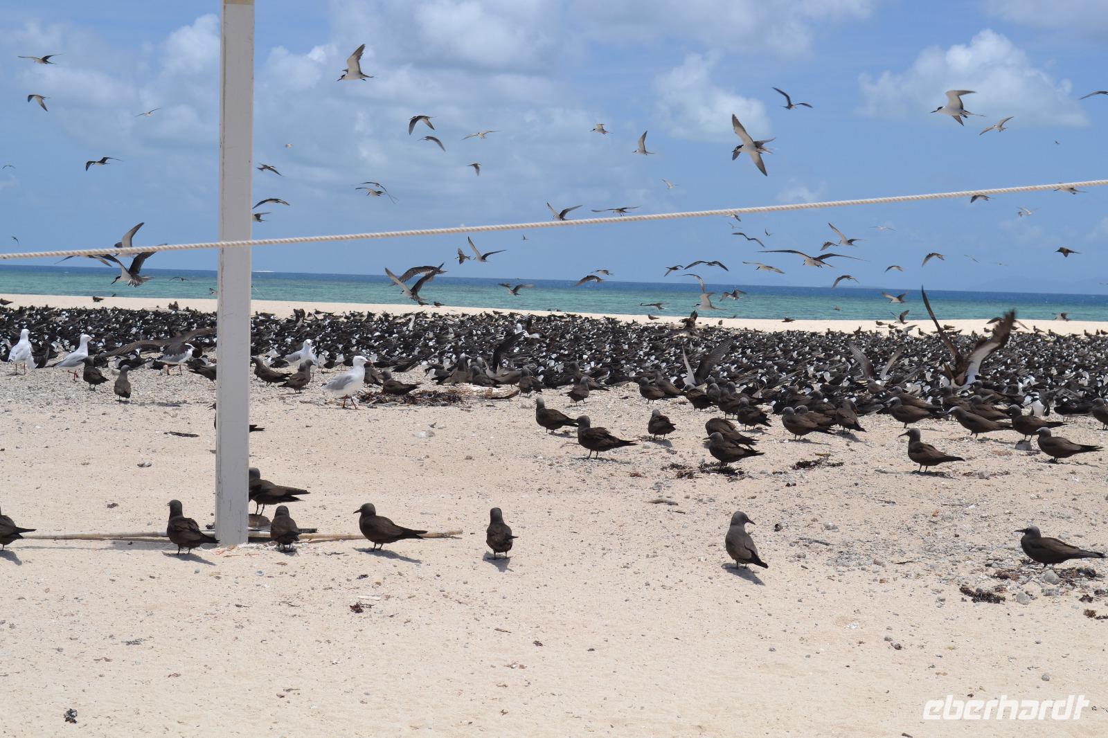 Direkt nach dem Frühstück holte uns ein Sammelbus vom Hotel ab und brachte uns nach Cairns an den Hafen. Auch den heutigen Ausflug unternahmen wir gemeinsam mit der anderen Eberhardt Gruppe und Ihrer Reiseleiterin. Auf dem Katamaran angekommen füllten wir zunächst ein Gesundheitsformular aus bevor wir uns einen Kaffee und ein Muffin holten. Während der 1,5 stündigen Fahrt zu der Insel abseits des Massentourismus wurde uns die Ausrüstung für den Schnorchelgang zur Verfügung gestellt und ein Vortrag über die Unterwasserwelt gehalten. Kurz vor 11 Uhr erreichten wir die mit tausenden von Vögeln belebte Insel. Wir gestalteten den Nachmittag nach unseren Wünschen. Einige Gästen fuhren mit dem Shuttleboot direkt zu Insel zum Schnorcheln, andere unternahmen eine Glasbootfahrt entlang des Riffs. Reiseleiterin Claudine erzählte Interessante Begebenheiten der Unterwasserwelt. Das Great Barrier Reef ist die größte zusammenhängende Ansammlung von knapp 3000 einzelnen Korallenriffen der Welt. 1981 wurde es von der UNESCO zum Weltnaturerbe erklärt und zählt seither zu einem der sieben Weltwunder. Es erstreckt sich im Nordosten Australiens und ist im Laufe seiner Zeit auf 2.300 Kilometern angewachsen. Pünktlich zur Mittagszeit wurde ein leckeres Buffen im Inneren des Katamarans aufgebaut, woran sich jeder nach belieben bedienen konnte. Heute kam jeder auf seine Kosten! Am Nachmittag wurden die letzten Gäste von der kleinen einsamen Insel ohne Sonnenschutz und Liegemöglichkeiten zurückgeholt. Auf der Rückfahrt durften wir uns an dem Obst und Kuchen bedienen und der Kapitän gab jeden Gast ein Glas Sekt aus! Wir genossen die Sonnenstrahlen auf der Heimfahrt von dem Traumhaften Ausflug. Im Hotel angekommen erfrischten wir uns von dem salzigen Meerwasser und trafen uns an der Hotelbar. Laura stand bereits mit einem Eimer gefüllt mit Weinflaschen da und teilte uns mit, ein Getränk zu bestellen. Danach spazierten wir den romantisch beleuchteten Weg zum Feigenbaum in Garten der Hotelanlage. Dieser war mit Lichterketten ähnlich wie in einem Film geschmückt. Das Essen des Würzburger Kochs schmeckte uns bei dem Ambiente besonders gut.