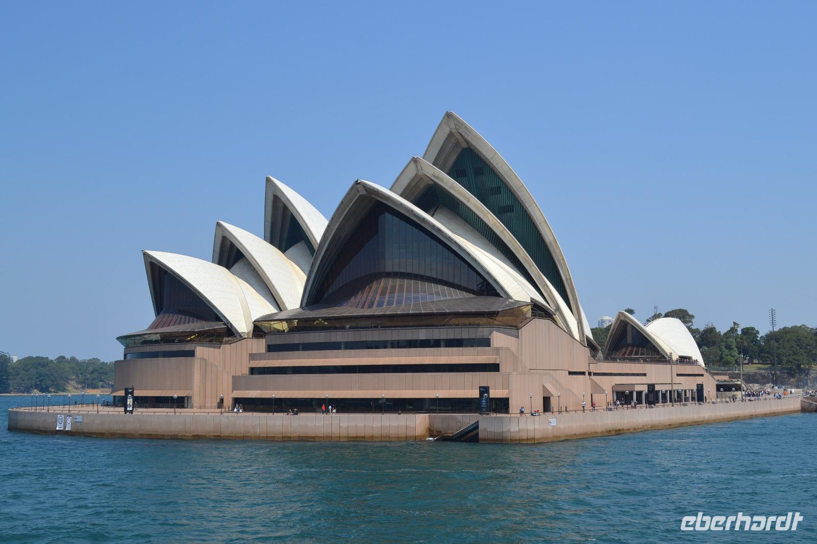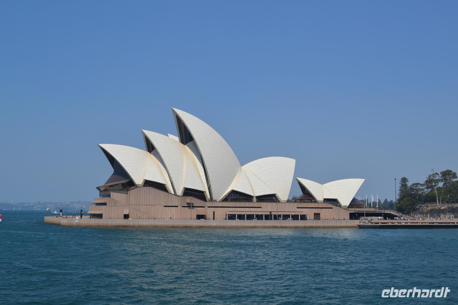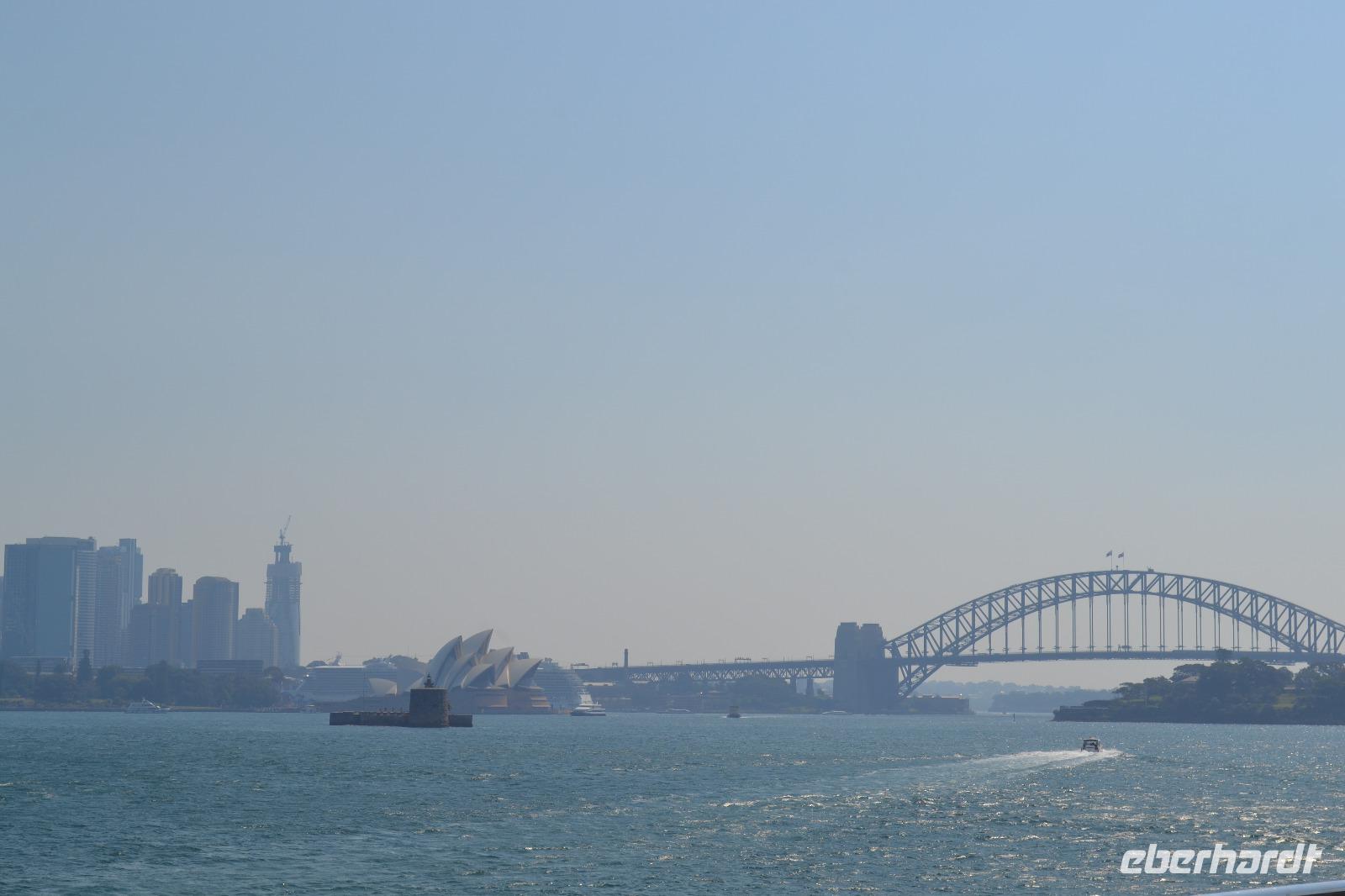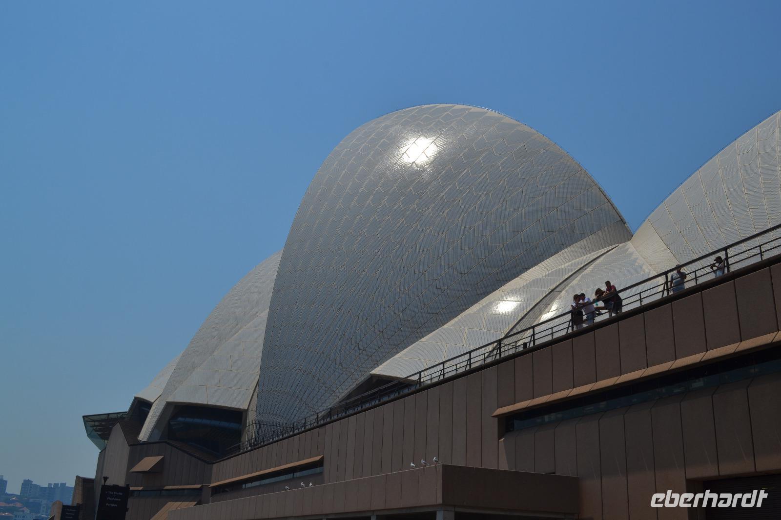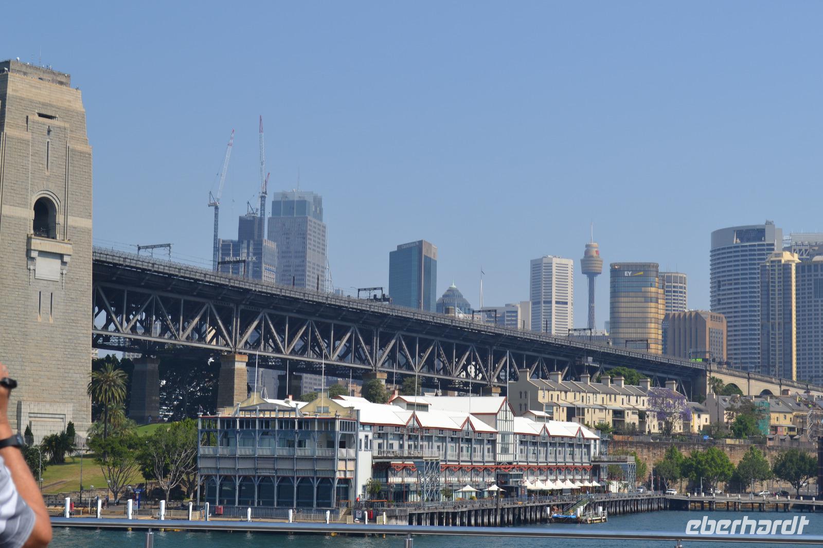 Am Morgen holte uns Uli zusammen mit Busfahrer Max von dem zentralen Hotel in Sydney ab. Zuerst fuhren wir zu dem Aussichtspunkt wo wir einen Gesamtblick über die Oper, Harbour Bridge und der Skyline hatten. Weiter ging es durch die Vororte vorbei an dem Darling Harbour, entlang des historischen Viertel „The Rocks", Kings Cross und Paddington. Entfernt von den Hochhäusern merkte man nicht mehr, dass es sich um eine Weltmetropole handelte. Die hübsch angelegten Stadtteile mit den lila blühenden Jacaradas gefielen uns sehr. Leider lag auch heute noch ein Rauchfilm über der Stadt, sodass unsere Aufnahmen an den Fotostopps nur bedingt gelungen sind. Gegen Mittag gelangten wir zum Bondi Beach, dem bekanntesten Surf Spot der Welt. Auch wir konnten heute trotz niedrigen Wellen einigen Sportlern beim Wellenreiten zusehen. Gemeinsam spazierten wir den Coastal Walk, wo gerade die Sculpture by the Sea zu sehen waren. Dabei handelt es sich um die größte temporäre Ausstellung von Bildhauerarbeiten im öffentlichen Raum. Rund 100 Kunstwerke von Künstlern aus aller Welt werden hier präsentiert. Auf dem Rückweg zum Bus blieb uns noch Zeit den Strandabschnitt entlang zu laufen. Anschließend fuhren wir zurück in die Stadt, wo wir am Hafen eine Mittagspause an einem Food Court einlegten. Nur wenige Gehminuten entfernt erreichten wir das Opernhaus. Wir wurden von einer österreichischen Gästeführerin in Empfang genommen und durch die magischen Hallen und verschiedenen Konzertsäle geführt. Dabei erzählte Sie uns lustige und spannenden Anekdoten über die Entstehung und Geschichte der Oper. Das Gebäude, welches durch den Architekten Jørn Utzon geplant wurde, ist Oktober 1973 offiziell von Königin Elisabeth II., übergeben worden. Zur feierlichen Eröffnung wurde Beethovens Neunte mit der Ode An die Freude gespielt. Im Anschluss ging es für uns auf das Schiff, wo wir uns die Stadt noch einmal von einer anderen Perspektive ansahen. Dabei kamen wir unmittelbar an der Residenz der königlichen Familie bei staatlichen Besuchen vorbei. Nachdem wir zurück am Hafen waren, stand uns der Nachmittag zur freien Verfügung. Laura spazierte mit einigen Gäste gemeinsam über die Harbour Bridge. Sie stellt den Hauptverbindungszweig zwischen Nord- und Süd Sydney dar und wird von den australischen Bürgern liebevoll „Kleiderbügel" genannt. Am Abend trafen wir uns um zu unserem Fischrestaurant am Darling Harbour zu spazieren. Dort erwartete uns ein leckeres 3-Gänge-Menü auf der Terrasse. Als Abschluss des Abends nahm uns Laura noch mit in eine Drehbare Skybar. Die o-Bar liegt im 47. Stock und besticht mit einem tollen Blick auf das nächtlich beleuchtete Sydney. Wir ließen uns den Cocktail schmecken!