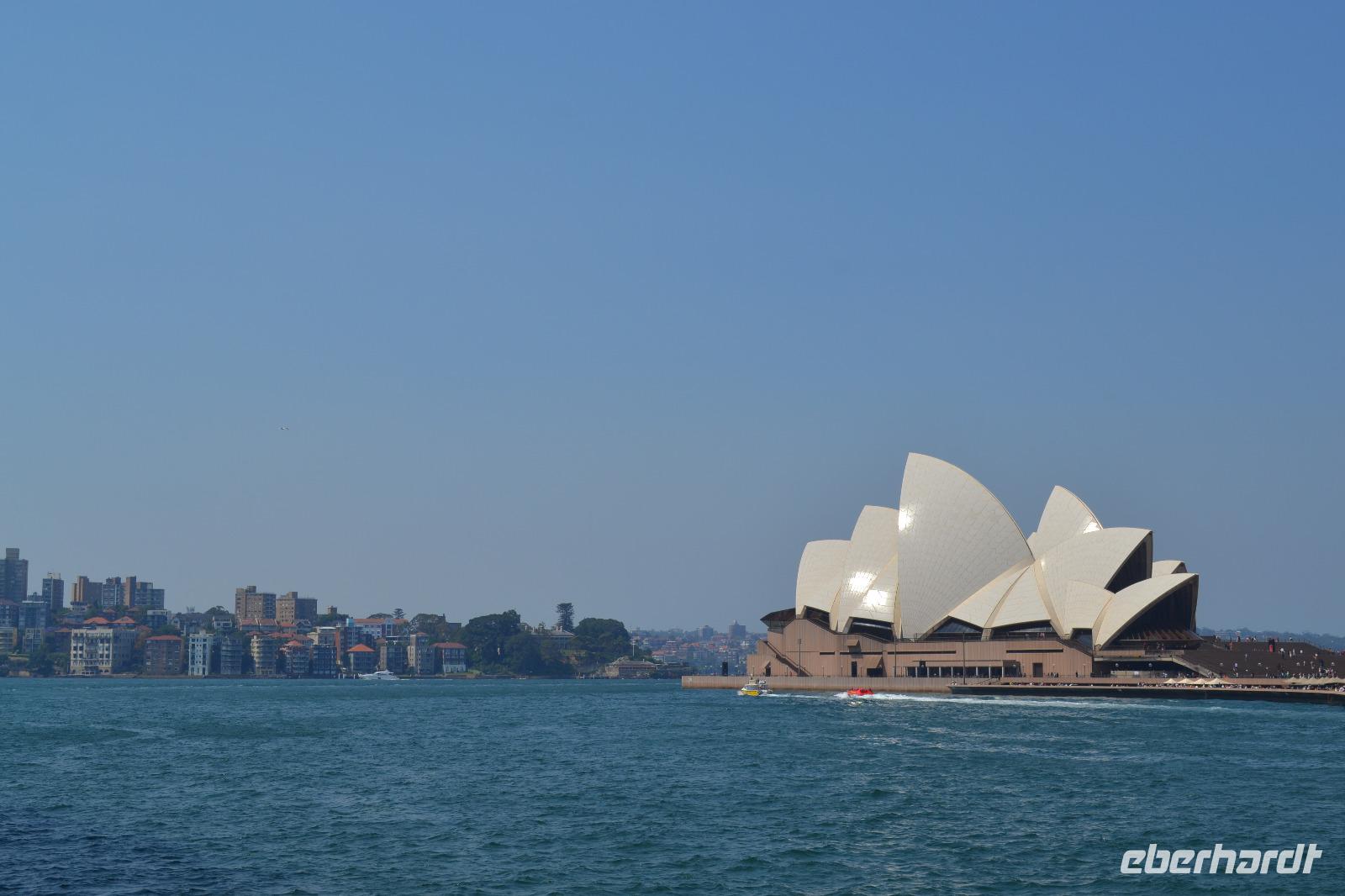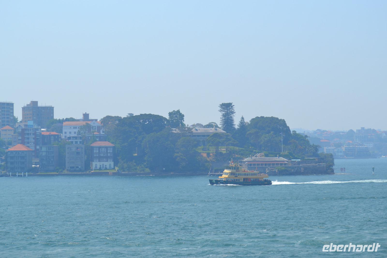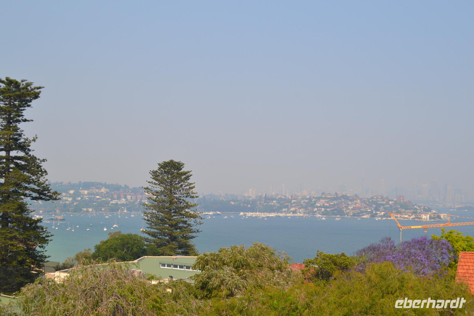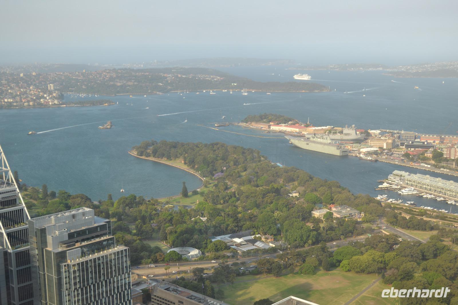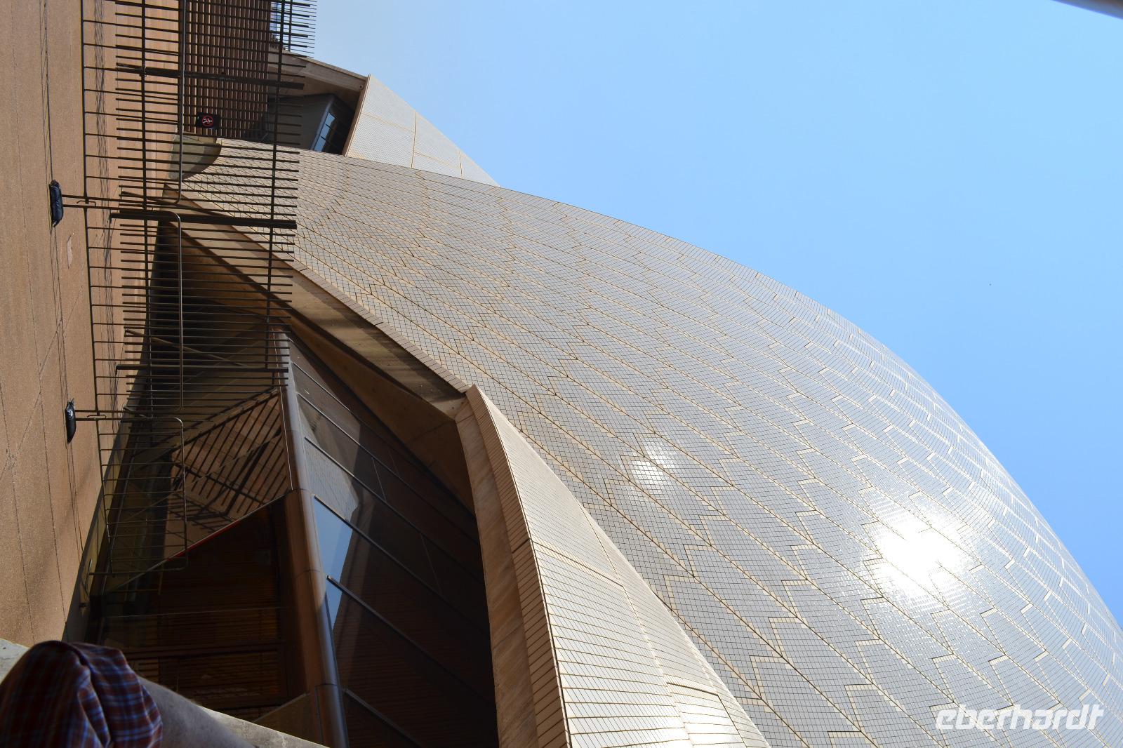 Am Morgen holte uns Uli zusammen mit Busfahrer Max von dem zentralen Hotel in Sydney ab. Zuerst fuhren wir zu dem Aussichtspunkt wo wir einen Gesamtblick über die Oper, Harbour Bridge und der Skyline hatten. Weiter ging es durch die Vororte vorbei an dem Darling Harbour, entlang des historischen Viertel „The Rocks", Kings Cross und Paddington. Entfernt von den Hochhäusern merkte man nicht mehr, dass es sich um eine Weltmetropole handelte. Die hübsch angelegten Stadtteile mit den lila blühenden Jacaradas gefielen uns sehr. Leider lag auch heute noch ein Rauchfilm über der Stadt, sodass unsere Aufnahmen an den Fotostopps nur bedingt gelungen sind. Gegen Mittag gelangten wir zum Bondi Beach, dem bekanntesten Surf Spot der Welt. Auch wir konnten heute trotz niedrigen Wellen einigen Sportlern beim Wellenreiten zusehen. Gemeinsam spazierten wir den Coastal Walk, wo gerade die Sculpture by the Sea zu sehen waren. Dabei handelt es sich um die größte temporäre Ausstellung von Bildhauerarbeiten im öffentlichen Raum. Rund 100 Kunstwerke von Künstlern aus aller Welt werden hier präsentiert. Auf dem Rückweg zum Bus blieb uns noch Zeit den Strandabschnitt entlang zu laufen. Anschließend fuhren wir zurück in die Stadt, wo wir am Hafen eine Mittagspause an einem Food Court einlegten. Nur wenige Gehminuten entfernt erreichten wir das Opernhaus. Wir wurden von einer österreichischen Gästeführerin in Empfang genommen und durch die magischen Hallen und verschiedenen Konzertsäle geführt. Dabei erzählte Sie uns lustige und spannenden Anekdoten über die Entstehung und Geschichte der Oper. Das Gebäude, welches durch den Architekten Jørn Utzon geplant wurde, ist Oktober 1973 offiziell von Königin Elisabeth II., übergeben worden. Zur feierlichen Eröffnung wurde Beethovens Neunte mit der Ode An die Freude gespielt. Im Anschluss ging es für uns auf das Schiff, wo wir uns die Stadt noch einmal von einer anderen Perspektive ansahen. Dabei kamen wir unmittelbar an der Residenz der königlichen Familie bei staatlichen Besuchen vorbei. Nachdem wir zurück am Hafen waren, stand uns der Nachmittag zur freien Verfügung. Laura spazierte mit einigen Gäste gemeinsam über die Harbour Bridge. Sie stellt den Hauptverbindungszweig zwischen Nord- und Süd Sydney dar und wird von den australischen Bürgern liebevoll „Kleiderbügel" genannt. Am Abend trafen wir uns um zu unserem Fischrestaurant am Darling Harbour zu spazieren. Dort erwartete uns ein leckeres 3-Gänge-Menü auf der Terrasse. Als Abschluss des Abends nahm uns Laura noch mit in eine Drehbare Skybar. Die o-Bar liegt im 47. Stock und besticht mit einem tollen Blick auf das nächtlich beleuchtete Sydney. Wir ließen uns den Cocktail schmecken!