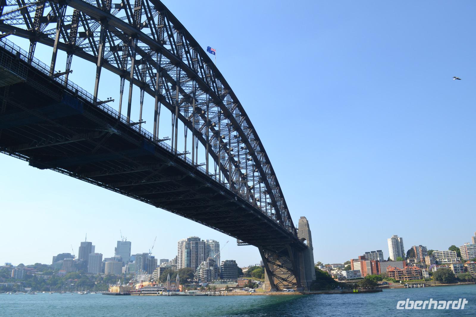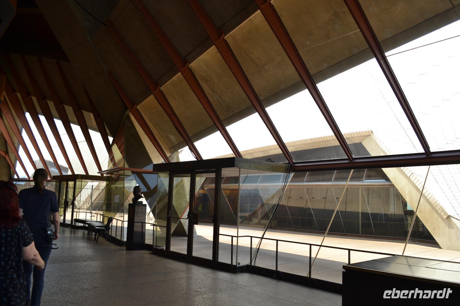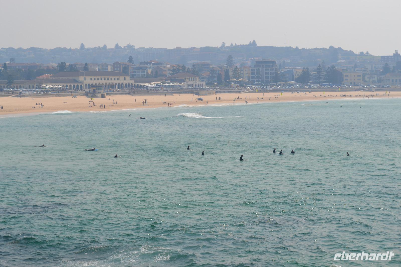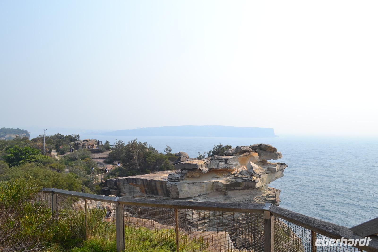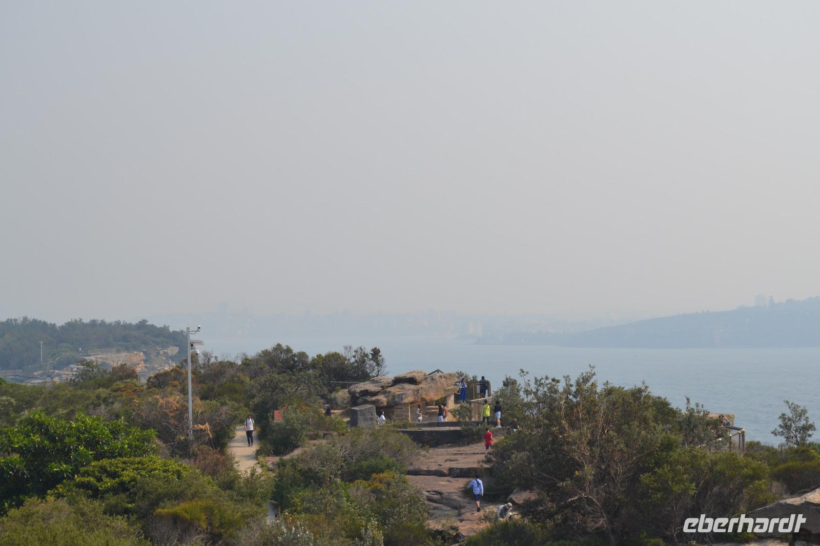 Am Morgen holte uns Uli zusammen mit Busfahrer Max von dem zentralen Hotel in Sydney ab. Zuerst fuhren wir zu dem Aussichtspunkt wo wir einen Gesamtblick über die Oper, Harbour Bridge und der Skyline hatten. Weiter ging es durch die Vororte vorbei an dem Darling Harbour, entlang des historischen Viertel „The Rocks", Kings Cross und Paddington. Entfernt von den Hochhäusern merkte man nicht mehr, dass es sich um eine Weltmetropole handelte. Die hübsch angelegten Stadtteile mit den lila blühenden Jacaradas gefielen uns sehr. Leider lag auch heute noch ein Rauchfilm über der Stadt, sodass unsere Aufnahmen an den Fotostopps nur bedingt gelungen sind. Gegen Mittag gelangten wir zum Bondi Beach, dem bekanntesten Surf Spot der Welt. Auch wir konnten heute trotz niedrigen Wellen einigen Sportlern beim Wellenreiten zusehen. Gemeinsam spazierten wir den Coastal Walk, wo gerade die Sculpture by the Sea zu sehen waren. Dabei handelt es sich um die größte temporäre Ausstellung von Bildhauerarbeiten im öffentlichen Raum. Rund 100 Kunstwerke von Künstlern aus aller Welt werden hier präsentiert. Auf dem Rückweg zum Bus blieb uns noch Zeit den Strandabschnitt entlang zu laufen. Anschließend fuhren wir zurück in die Stadt, wo wir am Hafen eine Mittagspause an einem Food Court einlegten. Nur wenige Gehminuten entfernt erreichten wir das Opernhaus. Wir wurden von einer österreichischen Gästeführerin in Empfang genommen und durch die magischen Hallen und verschiedenen Konzertsäle geführt. Dabei erzählte Sie uns lustige und spannenden Anekdoten über die Entstehung und Geschichte der Oper. Das Gebäude, welches durch den Architekten Jørn Utzon geplant wurde, ist Oktober 1973 offiziell von Königin Elisabeth II., übergeben worden. Zur feierlichen Eröffnung wurde Beethovens Neunte mit der Ode An die Freude gespielt. Im Anschluss ging es für uns auf das Schiff, wo wir uns die Stadt noch einmal von einer anderen Perspektive ansahen. Dabei kamen wir unmittelbar an der Residenz der königlichen Familie bei staatlichen Besuchen vorbei. Nachdem wir zurück am Hafen waren, stand uns der Nachmittag zur freien Verfügung. Laura spazierte mit einigen Gäste gemeinsam über die Harbour Bridge. Sie stellt den Hauptverbindungszweig zwischen Nord- und Süd Sydney dar und wird von den australischen Bürgern liebevoll „Kleiderbügel" genannt. Am Abend trafen wir uns um zu unserem Fischrestaurant am Darling Harbour zu spazieren. Dort erwartete uns ein leckeres 3-Gänge-Menü auf der Terrasse. Als Abschluss des Abends nahm uns Laura noch mit in eine Drehbare Skybar. Die o-Bar liegt im 47. Stock und besticht mit einem tollen Blick auf das nächtlich beleuchtete Sydney. Wir ließen uns den Cocktail schmecken!