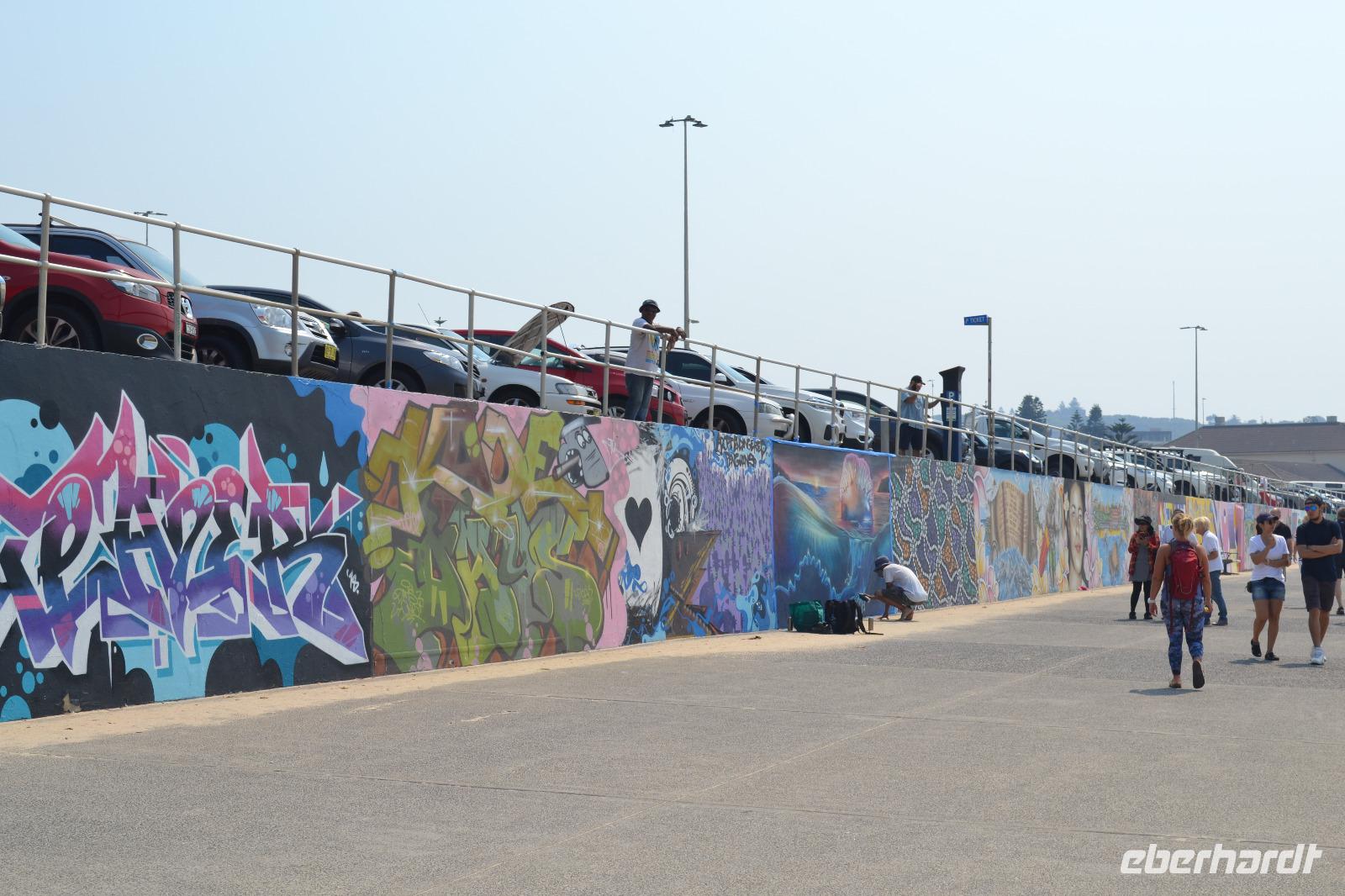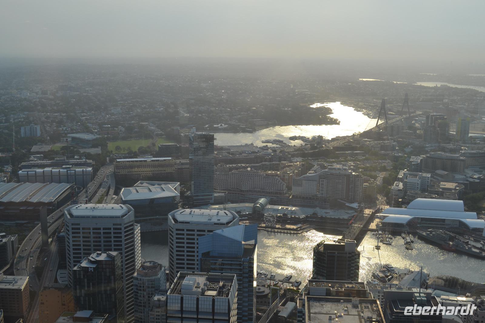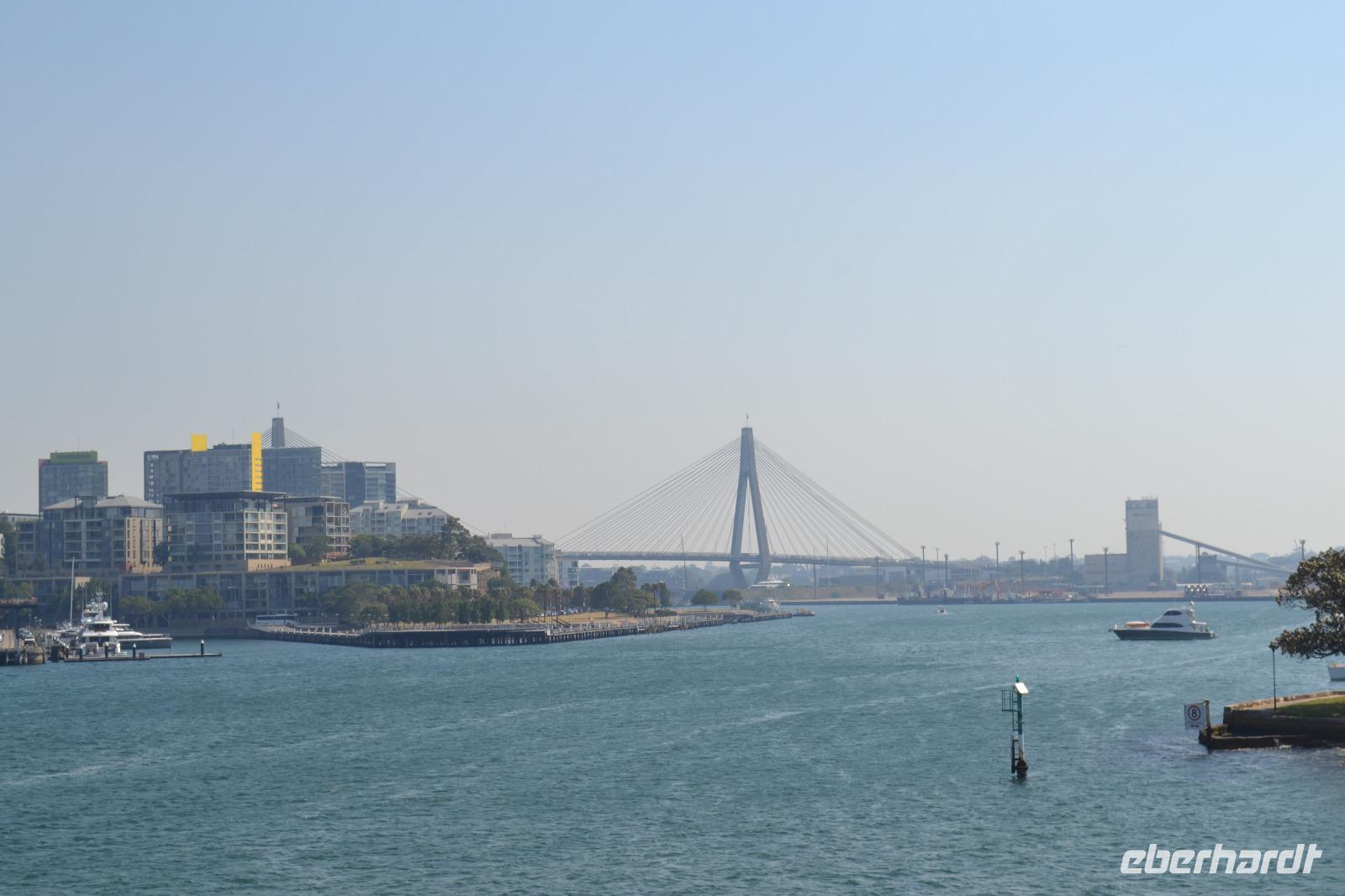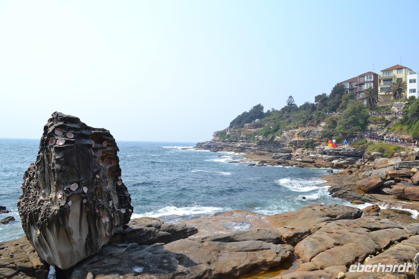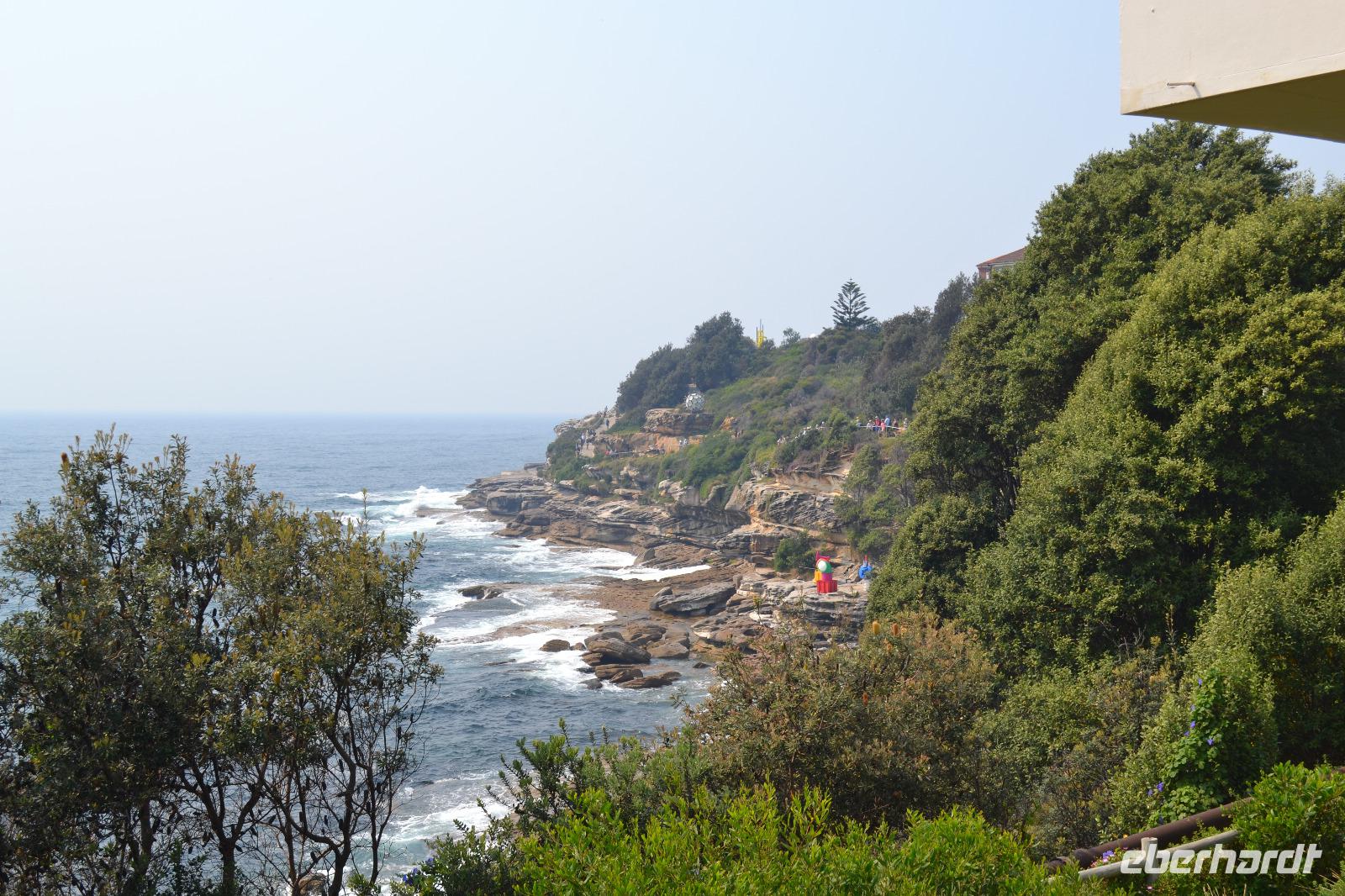Am Morgen holte uns Uli zusammen mit Busfahrer Max von dem zentralen Hotel in Sydney ab. Zuerst fuhren wir zu dem Aussichtspunkt wo wir einen Gesamtblick über die Oper, Harbour Bridge und der Skyline hatten. Weiter ging es durch die Vororte vorbei an dem Darling Harbour, entlang des historischen Viertel „The Rocks", Kings Cross und Paddington. Entfernt von den Hochhäusern merkte man nicht mehr, dass es sich um eine Weltmetropole handelte. Die hübsch angelegten Stadtteile mit den lila blühenden Jacaradas gefielen uns sehr. Leider lag auch heute noch ein Rauchfilm über der Stadt, sodass unsere Aufnahmen an den Fotostopps nur bedingt gelungen sind. Gegen Mittag gelangten wir zum Bondi Beach, dem bekanntesten Surf Spot der Welt. Auch wir konnten heute trotz niedrigen Wellen einigen Sportlern beim Wellenreiten zusehen. Gemeinsam spazierten wir den Coastal Walk, wo gerade die Sculpture by the Sea zu sehen waren. Dabei handelt es sich um die größte temporäre Ausstellung von Bildhauerarbeiten im öffentlichen Raum. Rund 100 Kunstwerke von Künstlern aus aller Welt werden hier präsentiert. Auf dem Rückweg zum Bus blieb uns noch Zeit den Strandabschnitt entlang zu laufen. Anschließend fuhren wir zurück in die Stadt, wo wir am Hafen eine Mittagspause an einem Food Court einlegten. Nur wenige Gehminuten entfernt erreichten wir das Opernhaus. Wir wurden von einer österreichischen Gästeführerin in Empfang genommen und durch die magischen Hallen und verschiedenen Konzertsäle geführt. Dabei erzählte Sie uns lustige und spannenden Anekdoten über die Entstehung und Geschichte der Oper. Das Gebäude, welches durch den Architekten Jørn Utzon geplant wurde, ist Oktober 1973 offiziell von Königin Elisabeth II., übergeben worden. Zur feierlichen Eröffnung wurde Beethovens Neunte mit der Ode An die Freude gespielt. Im Anschluss ging es für uns auf das Schiff, wo wir uns die Stadt noch einmal von einer anderen Perspektive ansahen. Dabei kamen wir unmittelbar an der Residenz der königlichen Familie bei staatlichen Besuchen vorbei. Nachdem wir zurück am Hafen waren, stand uns der Nachmittag zur freien Verfügung. Laura spazierte mit einigen Gäste gemeinsam über die Harbour Bridge. Sie stellt den Hauptverbindungszweig zwischen Nord- und Süd Sydney dar und wird von den australischen Bürgern liebevoll „Kleiderbügel" genannt. Am Abend trafen wir uns um zu unserem Fischrestaurant am Darling Harbour zu spazieren. Dort erwartete uns ein leckeres 3-Gänge-Menü auf der Terrasse. Als Abschluss des Abends nahm uns Laura noch mit in eine Drehbare Skybar. Die o-Bar liegt im 47. Stock und besticht mit einem tollen Blick auf das nächtlich beleuchtete Sydney. Wir ließen uns den Cocktail schmecken!