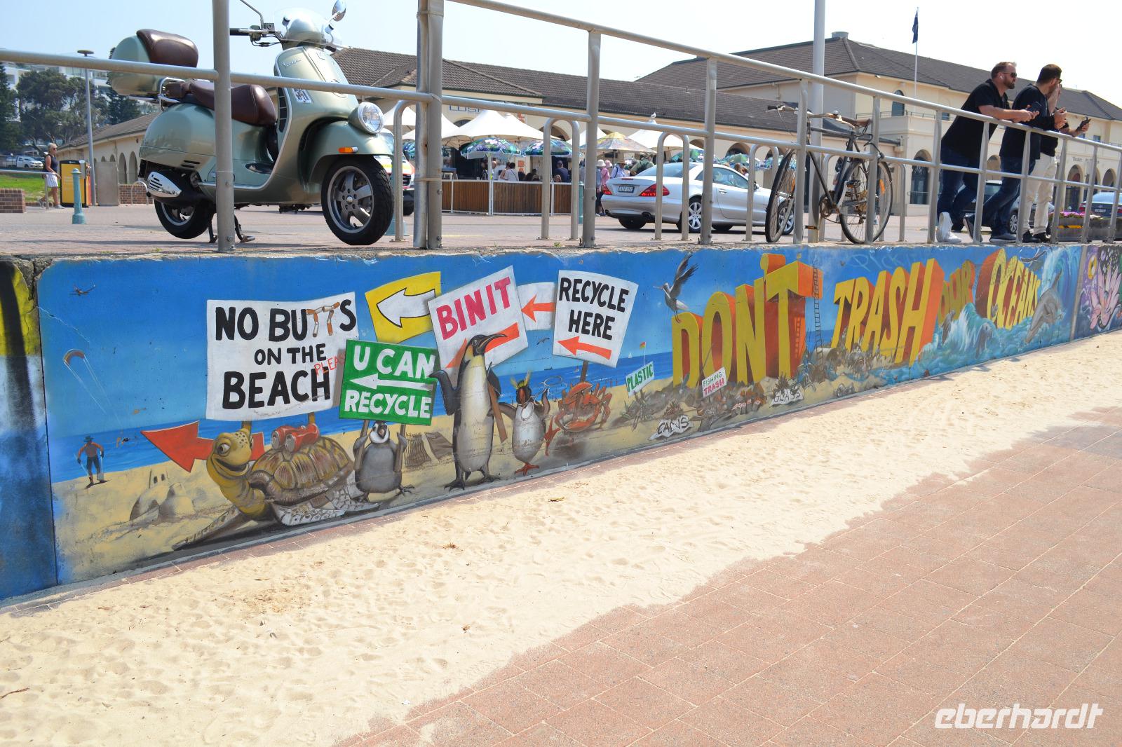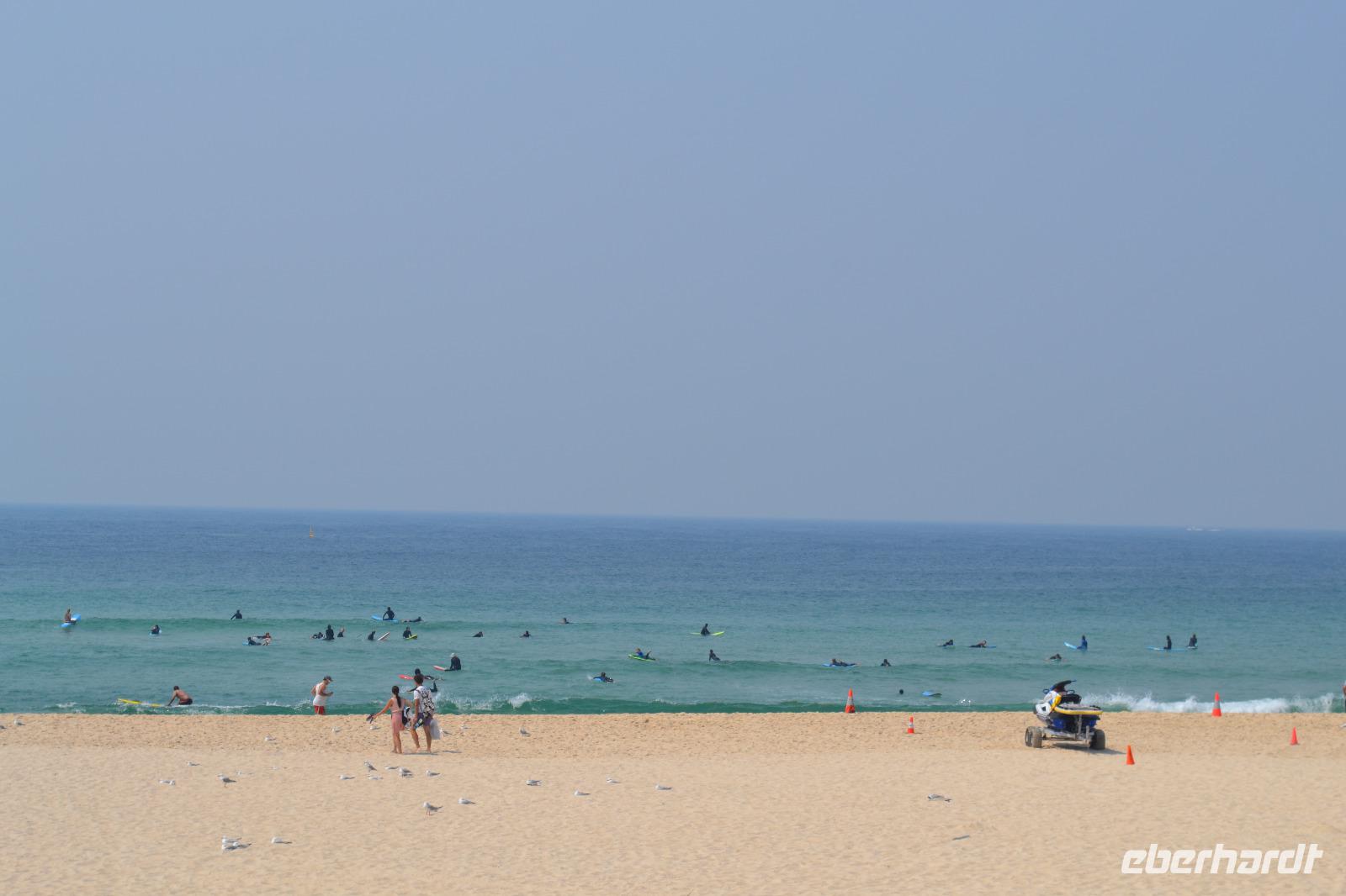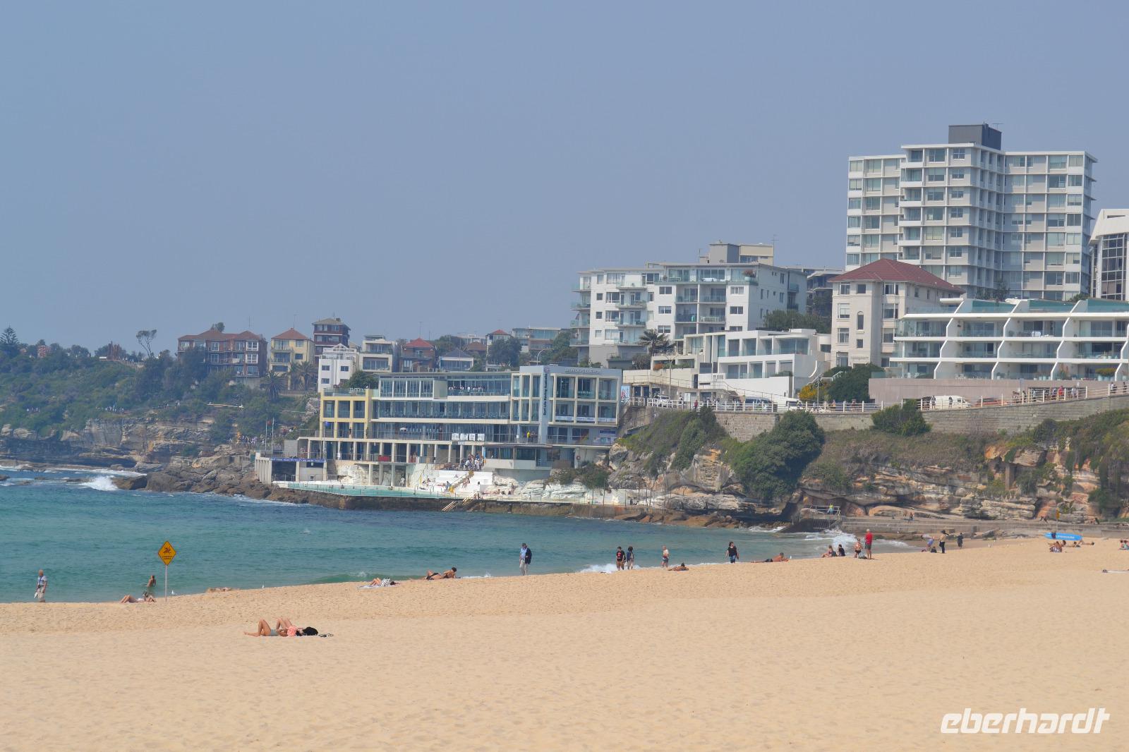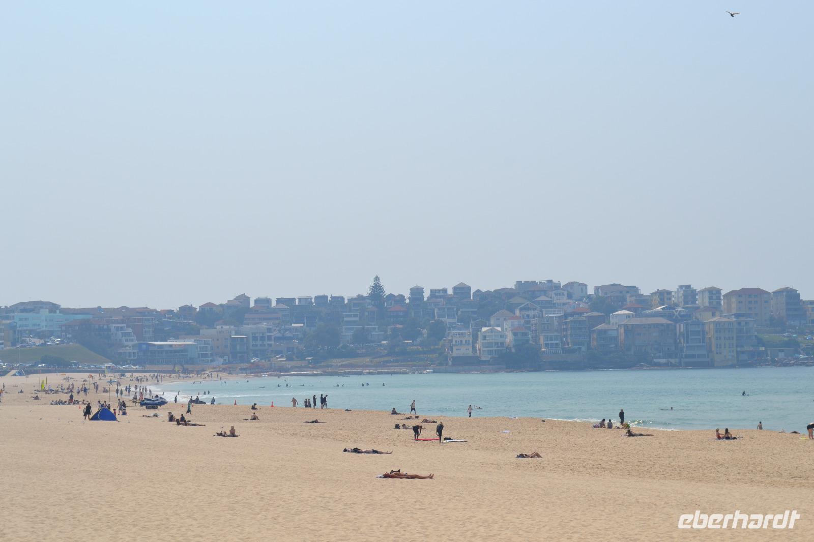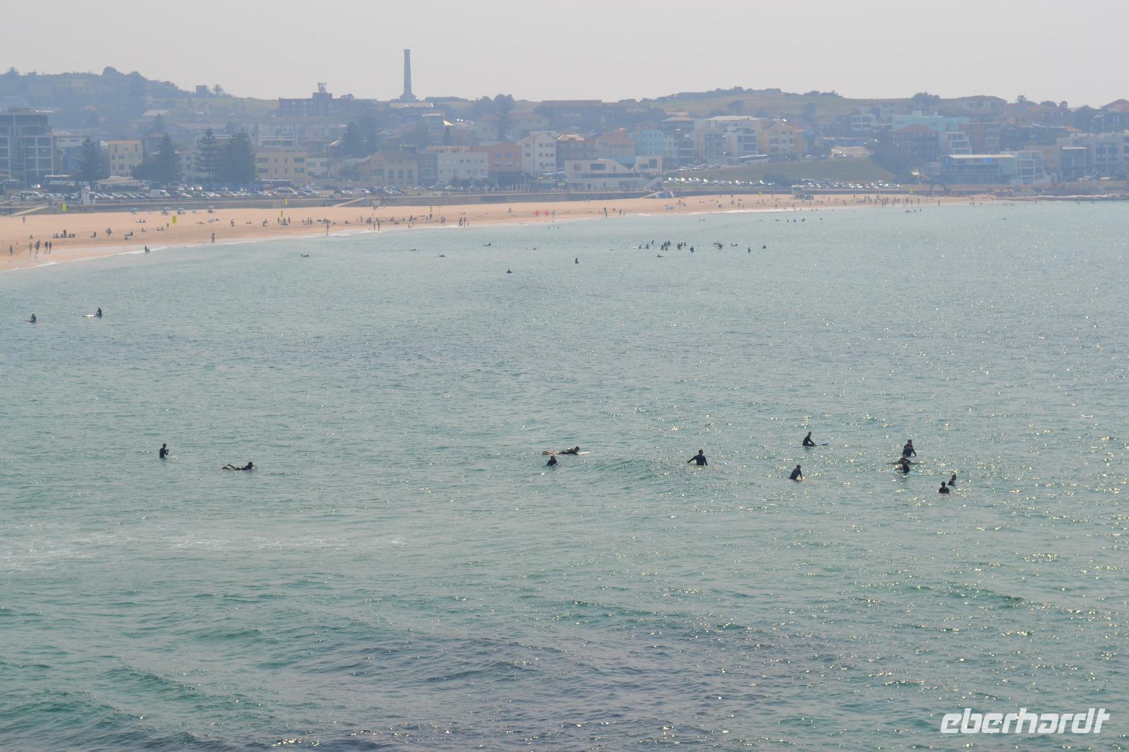 Am Morgen holte uns Uli zusammen mit Busfahrer Max von dem zentralen Hotel in Sydney ab. Zuerst fuhren wir zu dem Aussichtspunkt wo wir einen Gesamtblick über die Oper, Harbour Bridge und der Skyline hatten. Weiter ging es durch die Vororte vorbei an dem Darling Harbour, entlang des historischen Viertel „The Rocks", Kings Cross und Paddington. Entfernt von den Hochhäusern merkte man nicht mehr, dass es sich um eine Weltmetropole handelte. Die hübsch angelegten Stadtteile mit den lila blühenden Jacaradas gefielen uns sehr. Leider lag auch heute noch ein Rauchfilm über der Stadt, sodass unsere Aufnahmen an den Fotostopps nur bedingt gelungen sind. Gegen Mittag gelangten wir zum Bondi Beach, dem bekanntesten Surf Spot der Welt. Auch wir konnten heute trotz niedrigen Wellen einigen Sportlern beim Wellenreiten zusehen. Gemeinsam spazierten wir den Coastal Walk, wo gerade die Sculpture by the Sea zu sehen waren. Dabei handelt es sich um die größte temporäre Ausstellung von Bildhauerarbeiten im öffentlichen Raum. Rund 100 Kunstwerke von Künstlern aus aller Welt werden hier präsentiert. Auf dem Rückweg zum Bus blieb uns noch Zeit den Strandabschnitt entlang zu laufen. Anschließend fuhren wir zurück in die Stadt, wo wir am Hafen eine Mittagspause an einem Food Court einlegten. Nur wenige Gehminuten entfernt erreichten wir das Opernhaus. Wir wurden von einer österreichischen Gästeführerin in Empfang genommen und durch die magischen Hallen und verschiedenen Konzertsäle geführt. Dabei erzählte Sie uns lustige und spannenden Anekdoten über die Entstehung und Geschichte der Oper. Das Gebäude, welches durch den Architekten Jørn Utzon geplant wurde, ist Oktober 1973 offiziell von Königin Elisabeth II., übergeben worden. Zur feierlichen Eröffnung wurde Beethovens Neunte mit der Ode An die Freude gespielt. Im Anschluss ging es für uns auf das Schiff, wo wir uns die Stadt noch einmal von einer anderen Perspektive ansahen. Dabei kamen wir unmittelbar an der Residenz der königlichen Familie bei staatlichen Besuchen vorbei. Nachdem wir zurück am Hafen waren, stand uns der Nachmittag zur freien Verfügung. Laura spazierte mit einigen Gäste gemeinsam über die Harbour Bridge. Sie stellt den Hauptverbindungszweig zwischen Nord- und Süd Sydney dar und wird von den australischen Bürgern liebevoll „Kleiderbügel" genannt. Am Abend trafen wir uns um zu unserem Fischrestaurant am Darling Harbour zu spazieren. Dort erwartete uns ein leckeres 3-Gänge-Menü auf der Terrasse. Als Abschluss des Abends nahm uns Laura noch mit in eine Drehbare Skybar. Die o-Bar liegt im 47. Stock und besticht mit einem tollen Blick auf das nächtlich beleuchtete Sydney. Wir ließen uns den Cocktail schmecken!