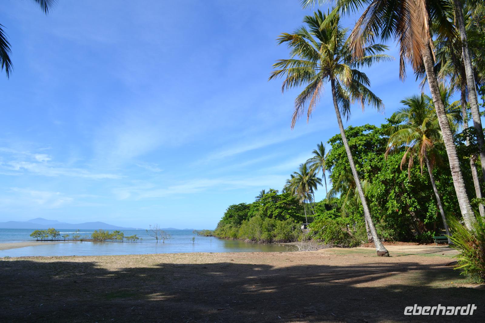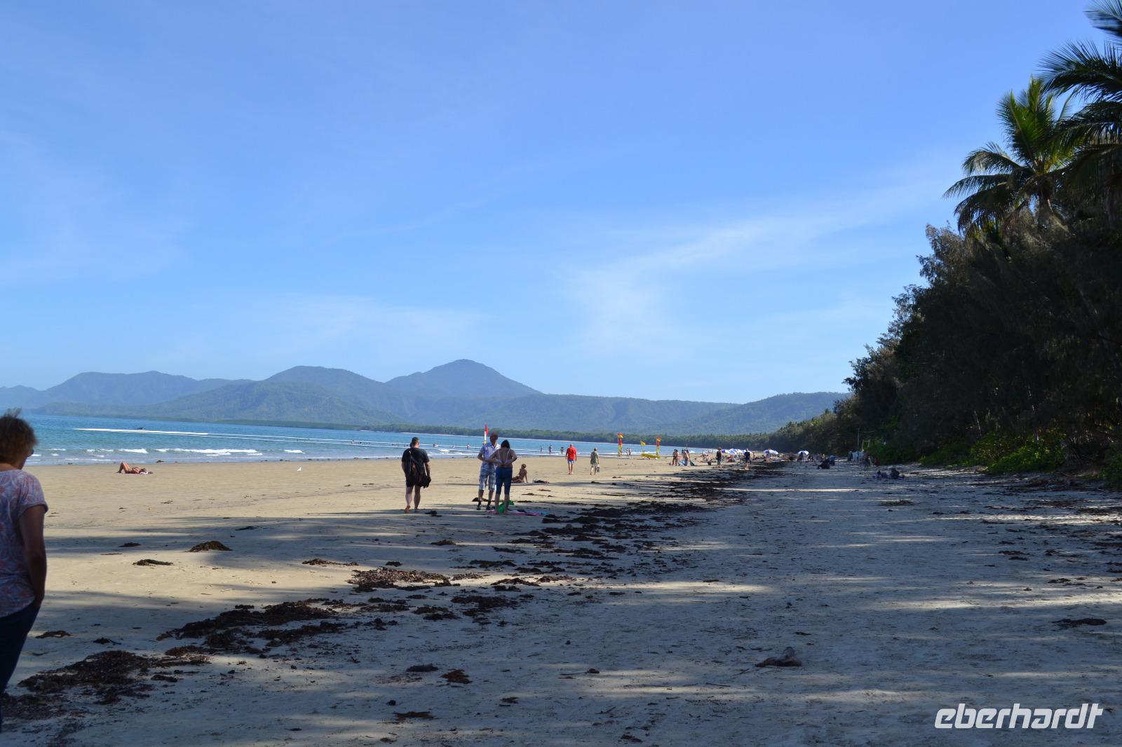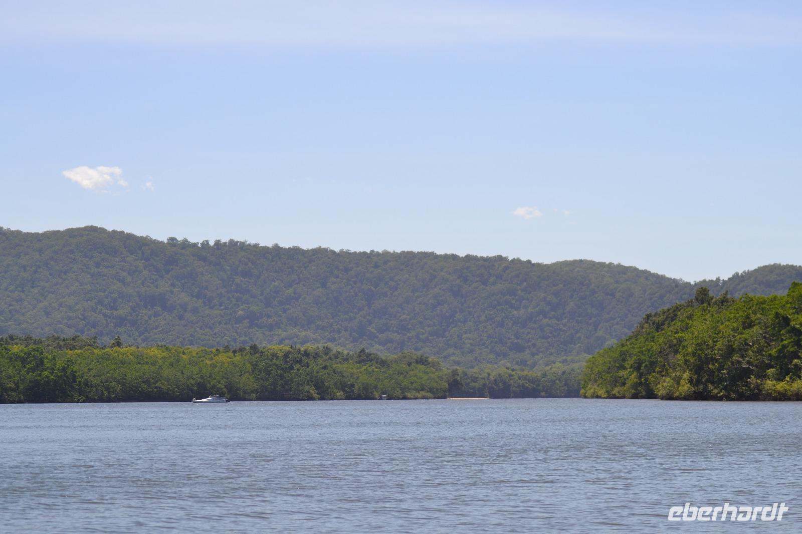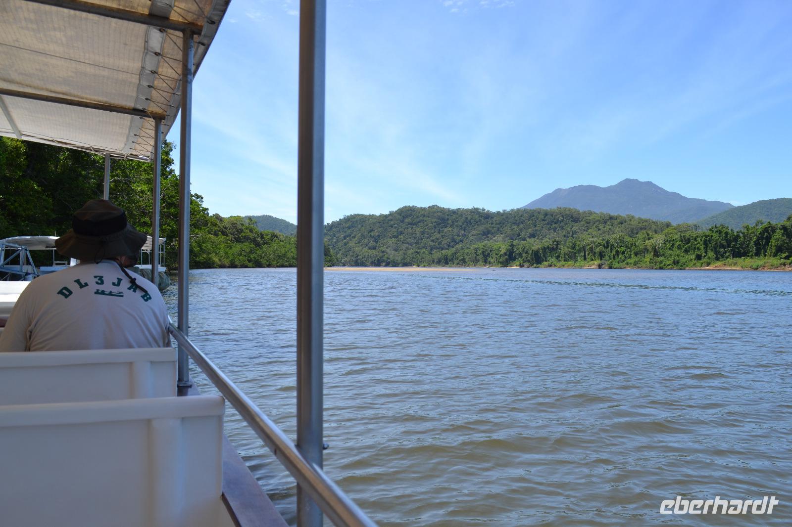 Den heutigen Tag nutzen einige Gäste zum Entspannen in Palm Cove. 12 Gäste fuhren mit Laura und Annette in den Daintree-Nationalpark. Die Fahrt entlang der wunderschönen Küste führte uns nach Mossmann Gorge wo wir mit einer Aborigine Zeremonie willkommen geheißen wurden. Wir tanzten gemeinsam mit Vater und Sohn um ein stark rauchendes, erloschenes Feuer. Danach erklärten Sie uns die verschiedenen Bemalungen der Stammesmitglieder und womit die Farbe hergestellt wird. In dem Kulturzentrum wurde uns ein typisch australisches Gebäck mit Marmelade und Sahne gereicht. Nach der kleinen Stärkung am Morgen ging es mit dem Shuttlebus zu dem Mossmann-Fluss. Hier spazierten wir auf den Pfaden entlang des Flusses und konnten die verwurzelten Bäume und Pflanzen bestaunen. Die Gegend rund um den Fluss wird auf Grund der Feuchtigkeit vorwiegend für den Zuckerrohr Anbau genutzt. Der ein oder andere hätte hier sicherlich noch länger verweilen können. Doch es ging mit dem nächsten Shuttlebus wieder zurück in das Zentrum, wo bereits unser Bus auf uns wartete um uns zu dem Mittagessen zu bringen. Auf dem Weg dort hin stiegen wir an dem traumhaften mit Palmen besetzten Wonga Beach aus und hielten unsere Füße in das warme Wasser. 12 Uhr erreichten wir das Daintree Teahouse welches im Frühjahr leider von einem Hochwasser des nebenliegenden Flusses überflutet wurde. Doch Sie haben es in wenigen Monaten geschafft wieder betriebsfähig zu sein und darüber waren wir sehr froh. Da Essen wurde mit viel Liebe zum Detail angerichtet. Auf jedem Teller lagen ca. 8 einheimische Fruchtstücke, welche uns der Besitzer während des Essens erklärte. Das Restaurant lag in Mitten des Regenwaldes. Am Nachmittag fuhren wir zu dem Bootsanleger, wo wir die nächste Stunde auf Krokodil Suche gingen. Wir konnten viele unterschiedliche Lebewesen wie den Graureiher, Eisvogel und einen grünen Frosch entdecken. Wir machten uns zum Ende der Tour keine Hoffnung auf ein Krokodil, da das Wasser schon sehr warm war und die Tiere keinen Grund mehr hatten aufzutauchen. Doch das größte bekannteste Krokodil des Flusses fühlte sich von uns gestört und schwamm plötzlich aus dem nichts auf uns zu. Das hatte selbst unser Bootsführer lange nicht mehr erlebt. Nun entdeckten wir noch das ein oder andere am Ufer entlang schwimmen. Auf der Rückfahrt nach Cairns hielten wir für einen Strandspaziergang in der kleinen Hafenstadt Port Douglas. Der Ort lebt hauptsächlich von Touristen, denn hier gibt es eine Vielzahl an hochwertigen Hotels und einen Golfplatz. Leider ist die Stadt auch seit dem Tod des australische „Crocodile Hunter" Steve Irwin 2006 bekannt. Er starb bei Dreharbeiten zu einer Tierdokumentation durch den Stich eines Stachelrochens. Mit einer letzten Fotostopp mit der Aussicht auf die Küste vor Cairns verabschiedeten wir uns von unserer Reiseleiterin. Am Abend bummelten wir gemütlich von dem Hotel entlang der Esplanade zu unserem Abschluss Abendessen. Laura Verabschiedete sich mit einem kleinen Glas Honig von uns. Die Süßigkeit ist auf Grund der geringen zahl an Bienen in Australien eine Seltenheit, genauso wie das Glück nach Australien zu kommen. Wir verabschiedeten uns von den Gästen, welche weiter nach Neuseeland reisen, denn sie mussten früh aufstehen.