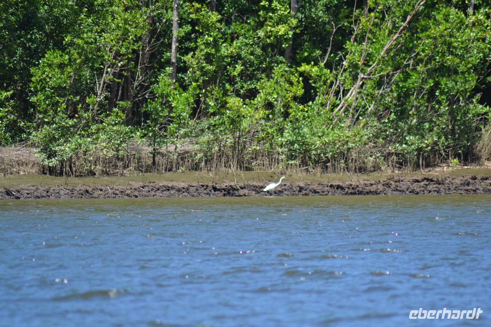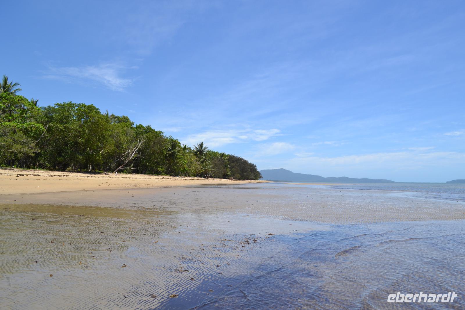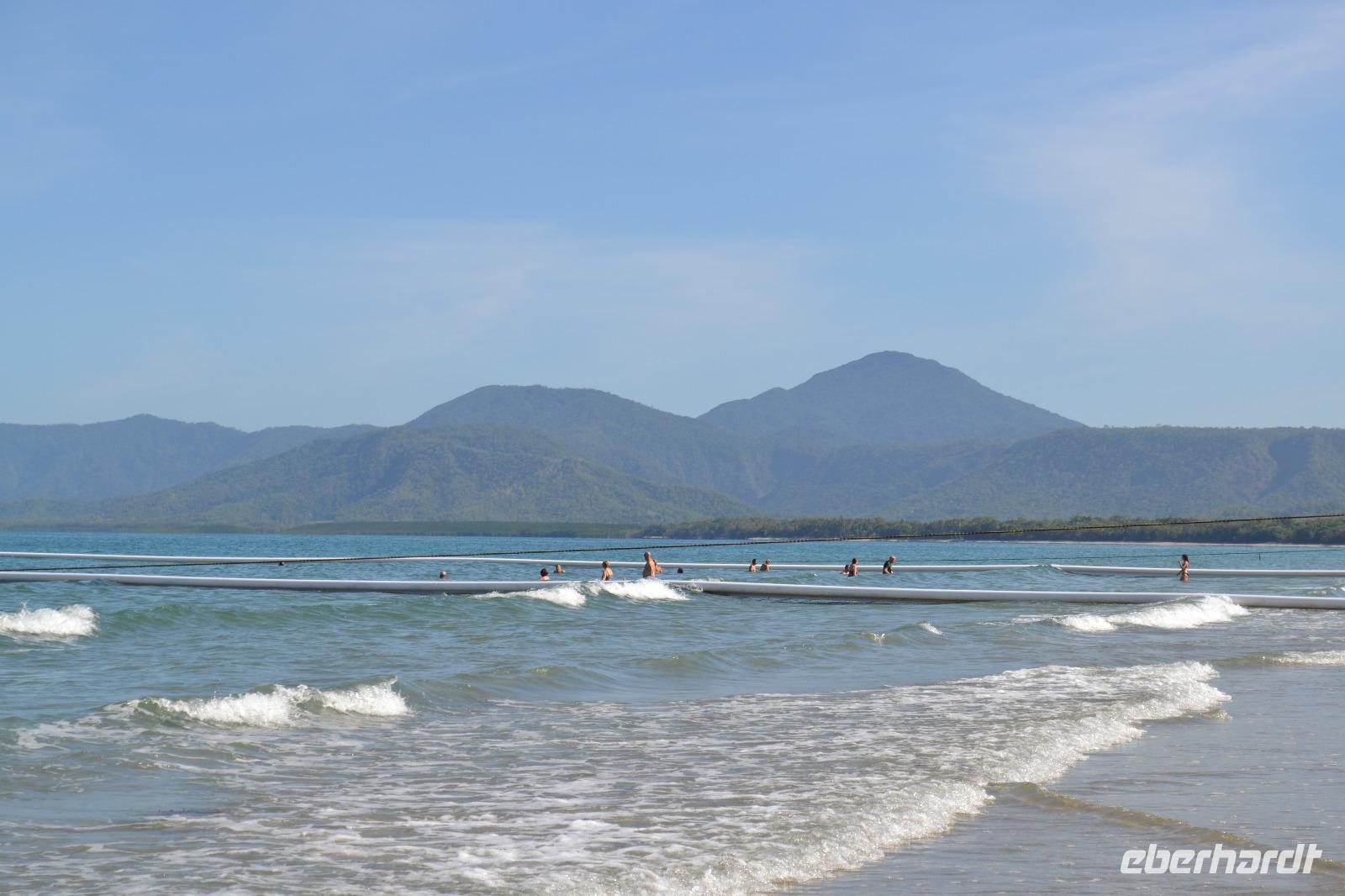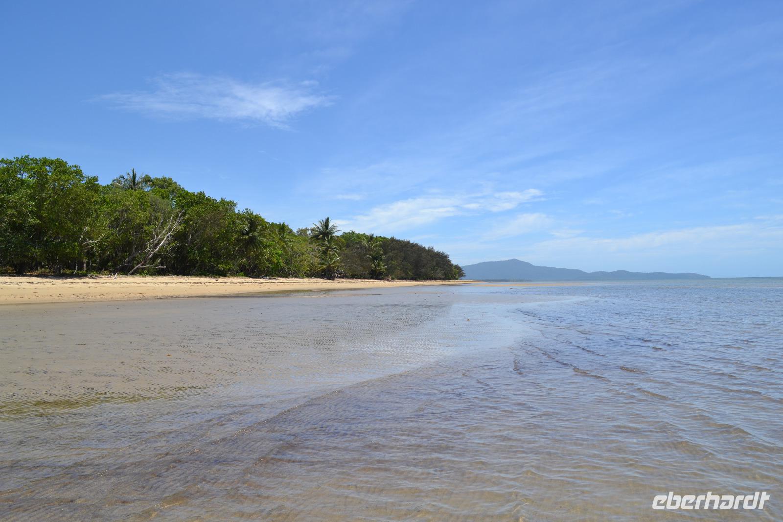 Den heutigen Tag nutzen einige Gäste zum Entspannen in Palm Cove. 12 Gäste fuhren mit Laura und Annette in den Daintree-Nationalpark. Die Fahrt entlang der wunderschönen Küste führte uns nach Mossmann Gorge wo wir mit einer Aborigine Zeremonie willkommen geheißen wurden. Wir tanzten gemeinsam mit Vater und Sohn um ein stark rauchendes, erloschenes Feuer. Danach erklärten Sie uns die verschiedenen Bemalungen der Stammesmitglieder und womit die Farbe hergestellt wird. In dem Kulturzentrum wurde uns ein typisch australisches Gebäck mit Marmelade und Sahne gereicht. Nach der kleinen Stärkung am Morgen ging es mit dem Shuttlebus zu dem Mossmann-Fluss. Hier spazierten wir auf den Pfaden entlang des Flusses und konnten die verwurzelten Bäume und Pflanzen bestaunen. Die Gegend rund um den Fluss wird auf Grund der Feuchtigkeit vorwiegend für den Zuckerrohr Anbau genutzt. Der ein oder andere hätte hier sicherlich noch länger verweilen können. Doch es ging mit dem nächsten Shuttlebus wieder zurück in das Zentrum, wo bereits unser Bus auf uns wartete um uns zu dem Mittagessen zu bringen. Auf dem Weg dort hin stiegen wir an dem traumhaften mit Palmen besetzten Wonga Beach aus und hielten unsere Füße in das warme Wasser. 12 Uhr erreichten wir das Daintree Teahouse welches im Frühjahr leider von einem Hochwasser des nebenliegenden Flusses überflutet wurde. Doch Sie haben es in wenigen Monaten geschafft wieder betriebsfähig zu sein und darüber waren wir sehr froh. Da Essen wurde mit viel Liebe zum Detail angerichtet. Auf jedem Teller lagen ca. 8 einheimische Fruchtstücke, welche uns der Besitzer während des Essens erklärte. Das Restaurant lag in Mitten des Regenwaldes. Am Nachmittag fuhren wir zu dem Bootsanleger, wo wir die nächste Stunde auf Krokodil Suche gingen. Wir konnten viele unterschiedliche Lebewesen wie den Graureiher, Eisvogel und einen grünen Frosch entdecken. Wir machten uns zum Ende der Tour keine Hoffnung auf ein Krokodil, da das Wasser schon sehr warm war und die Tiere keinen Grund mehr hatten aufzutauchen. Doch das größte bekannteste Krokodil des Flusses fühlte sich von uns gestört und schwamm plötzlich aus dem nichts auf uns zu. Das hatte selbst unser Bootsführer lange nicht mehr erlebt. Nun entdeckten wir noch das ein oder andere am Ufer entlang schwimmen. Auf der Rückfahrt nach Cairns hielten wir für einen Strandspaziergang in der kleinen Hafenstadt Port Douglas. Der Ort lebt hauptsächlich von Touristen, denn hier gibt es eine Vielzahl an hochwertigen Hotels und einen Golfplatz. Leider ist die Stadt auch seit dem Tod des australische „Crocodile Hunter" Steve Irwin 2006 bekannt. Er starb bei Dreharbeiten zu einer Tierdokumentation durch den Stich eines Stachelrochens. Mit einer letzten Fotostopp mit der Aussicht auf die Küste vor Cairns verabschiedeten wir uns von unserer Reiseleiterin. Am Abend bummelten wir gemütlich von dem Hotel entlang der Esplanade zu unserem Abschluss Abendessen. Laura Verabschiedete sich mit einem kleinen Glas Honig von uns. Die Süßigkeit ist auf Grund der geringen zahl an Bienen in Australien eine Seltenheit, genauso wie das Glück nach Australien zu kommen. Wir verabschiedeten uns von den Gästen, welche weiter nach Neuseeland reisen, denn sie mussten früh aufstehen.