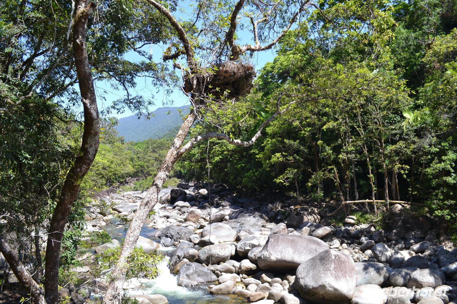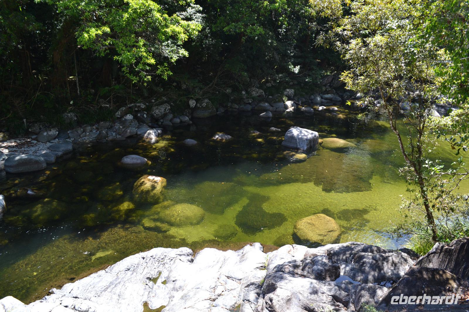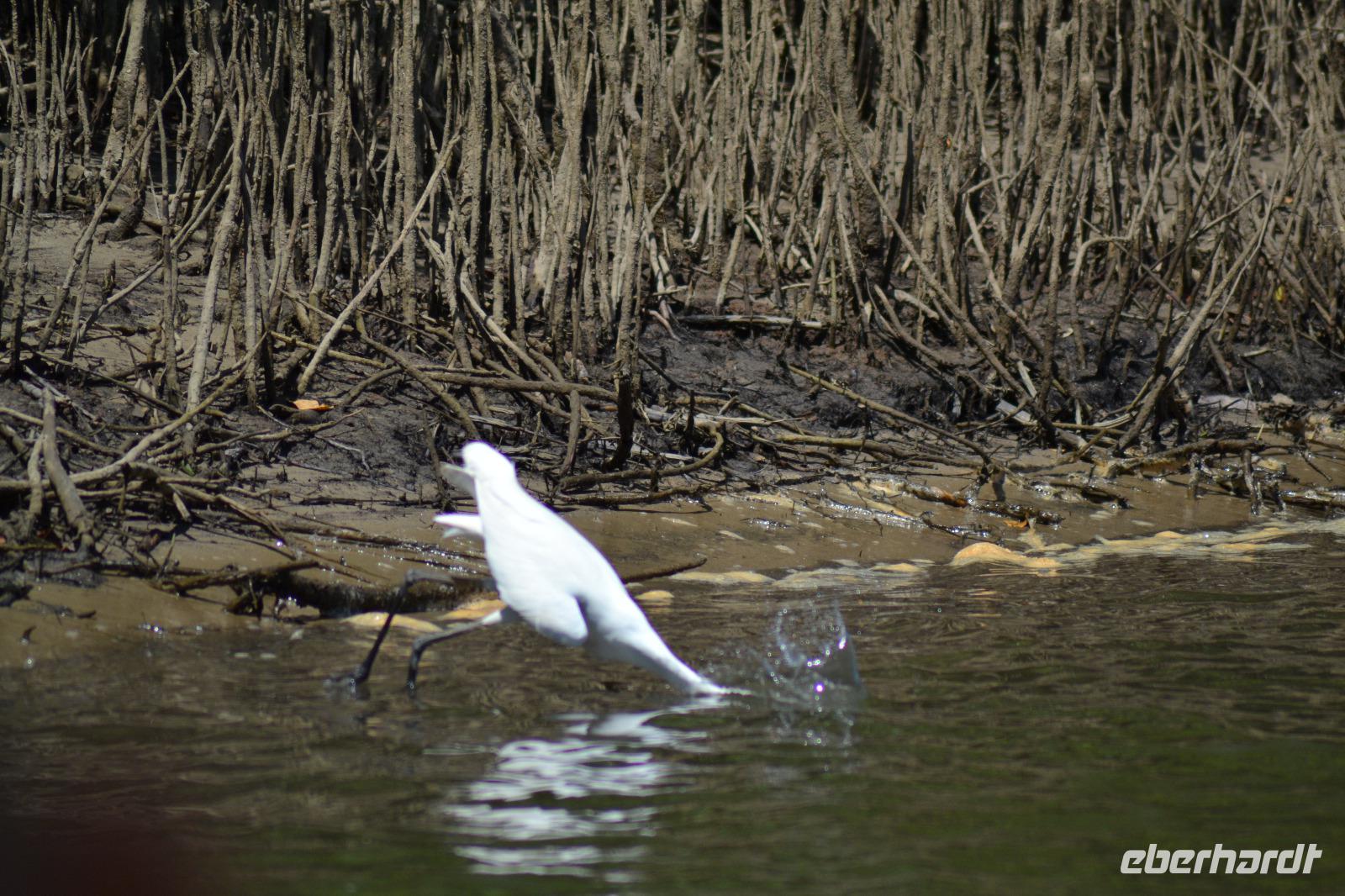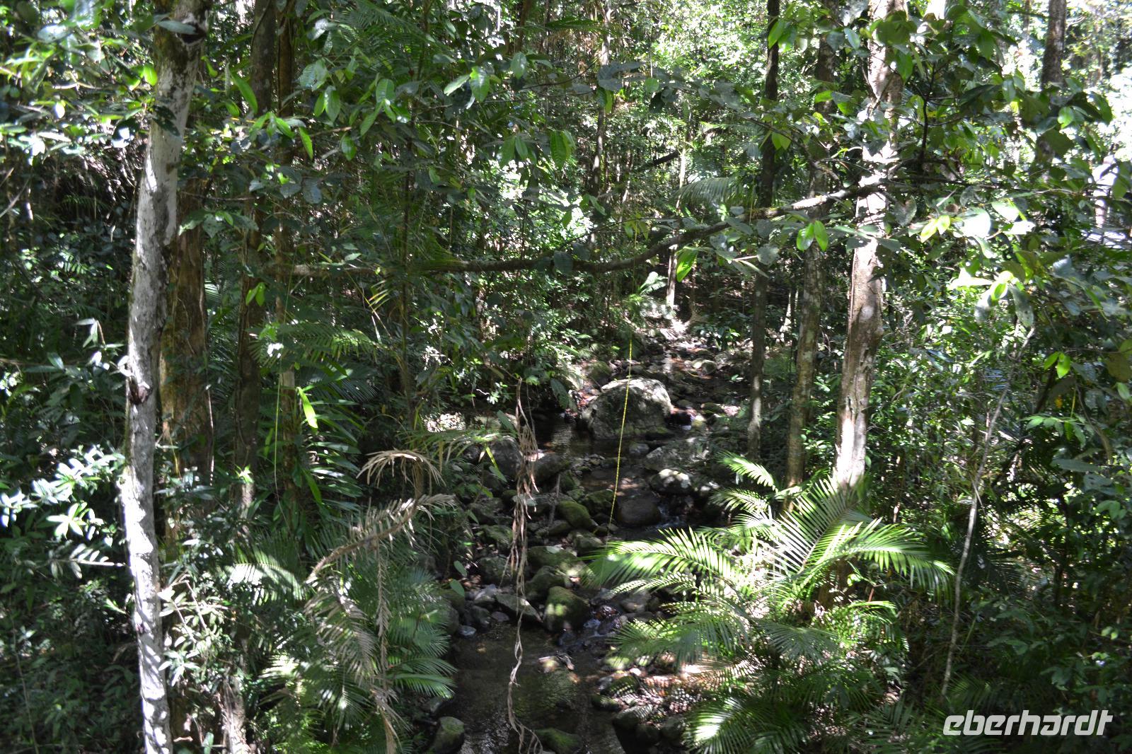 Den heutigen Tag nutzen einige Gäste zum Entspannen in Palm Cove. 12 Gäste fuhren mit Laura und Annette in den Daintree-Nationalpark. Die Fahrt entlang der wunderschönen Küste führte uns nach Mossmann Gorge wo wir mit einer Aborigine Zeremonie willkommen geheißen wurden. Wir tanzten gemeinsam mit Vater und Sohn um ein stark rauchendes, erloschenes Feuer. Danach erklärten Sie uns die verschiedenen Bemalungen der Stammesmitglieder und womit die Farbe hergestellt wird. In dem Kulturzentrum wurde uns ein typisch australisches Gebäck mit Marmelade und Sahne gereicht. Nach der kleinen Stärkung am Morgen ging es mit dem Shuttlebus zu dem Mossmann-Fluss. Hier spazierten wir auf den Pfaden entlang des Flusses und konnten die verwurzelten Bäume und Pflanzen bestaunen. Die Gegend rund um den Fluss wird auf Grund der Feuchtigkeit vorwiegend für den Zuckerrohr Anbau genutzt. Der ein oder andere hätte hier sicherlich noch länger verweilen können. Doch es ging mit dem nächsten Shuttlebus wieder zurück in das Zentrum, wo bereits unser Bus auf uns wartete um uns zu dem Mittagessen zu bringen. Auf dem Weg dort hin stiegen wir an dem traumhaften mit Palmen besetzten Wonga Beach aus und hielten unsere Füße in das warme Wasser. 12 Uhr erreichten wir das Daintree Teahouse welches im Frühjahr leider von einem Hochwasser des nebenliegenden Flusses überflutet wurde. Doch Sie haben es in wenigen Monaten geschafft wieder betriebsfähig zu sein und darüber waren wir sehr froh. Da Essen wurde mit viel Liebe zum Detail angerichtet. Auf jedem Teller lagen ca. 8 einheimische Fruchtstücke, welche uns der Besitzer während des Essens erklärte. Das Restaurant lag in Mitten des Regenwaldes. Am Nachmittag fuhren wir zu dem Bootsanleger, wo wir die nächste Stunde auf Krokodil Suche gingen. Wir konnten viele unterschiedliche Lebewesen wie den Graureiher, Eisvogel und einen grünen Frosch entdecken. Wir machten uns zum Ende der Tour keine Hoffnung auf ein Krokodil, da das Wasser schon sehr warm war und die Tiere keinen Grund mehr hatten aufzutauchen. Doch das größte bekannteste Krokodil des Flusses fühlte sich von uns gestört und schwamm plötzlich aus dem nichts auf uns zu. Das hatte selbst unser Bootsführer lange nicht mehr erlebt. Nun entdeckten wir noch das ein oder andere am Ufer entlang schwimmen. Auf der Rückfahrt nach Cairns hielten wir für einen Strandspaziergang in der kleinen Hafenstadt Port Douglas. Der Ort lebt hauptsächlich von Touristen, denn hier gibt es eine Vielzahl an hochwertigen Hotels und einen Golfplatz. Leider ist die Stadt auch seit dem Tod des australische „Crocodile Hunter" Steve Irwin 2006 bekannt. Er starb bei Dreharbeiten zu einer Tierdokumentation durch den Stich eines Stachelrochens. Mit einer letzten Fotostopp mit der Aussicht auf die Küste vor Cairns verabschiedeten wir uns von unserer Reiseleiterin. Am Abend bummelten wir gemütlich von dem Hotel entlang der Esplanade zu unserem Abschluss Abendessen. Laura Verabschiedete sich mit einem kleinen Glas Honig von uns. Die Süßigkeit ist auf Grund der geringen zahl an Bienen in Australien eine Seltenheit, genauso wie das Glück nach Australien zu kommen. Wir verabschiedeten uns von den Gästen, welche weiter nach Neuseeland reisen, denn sie mussten früh aufstehen.