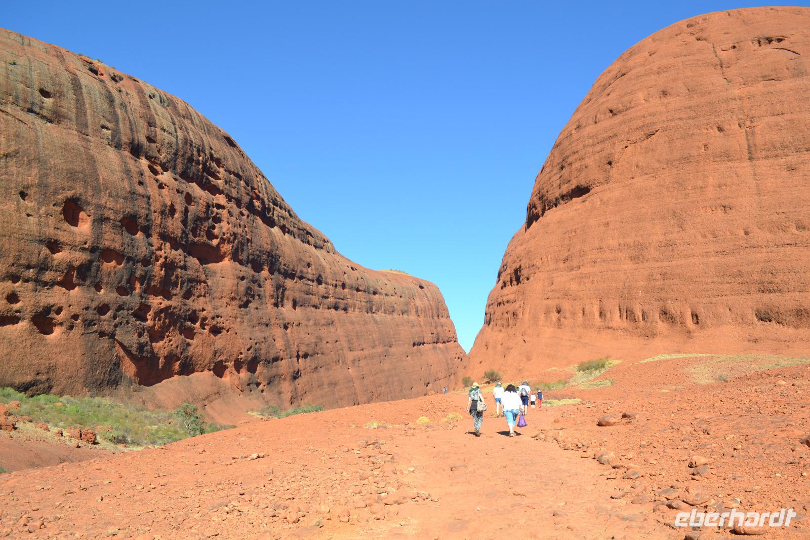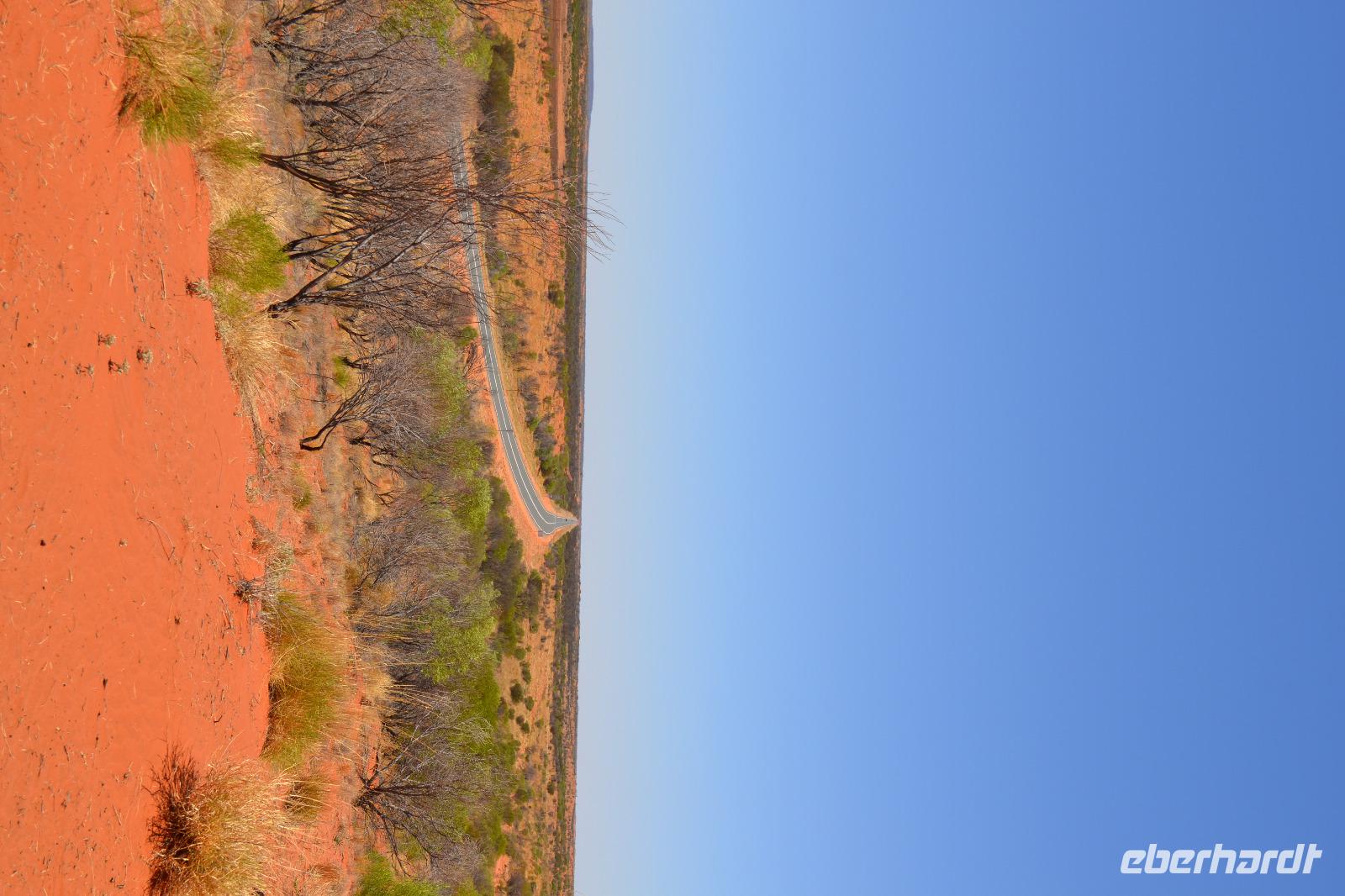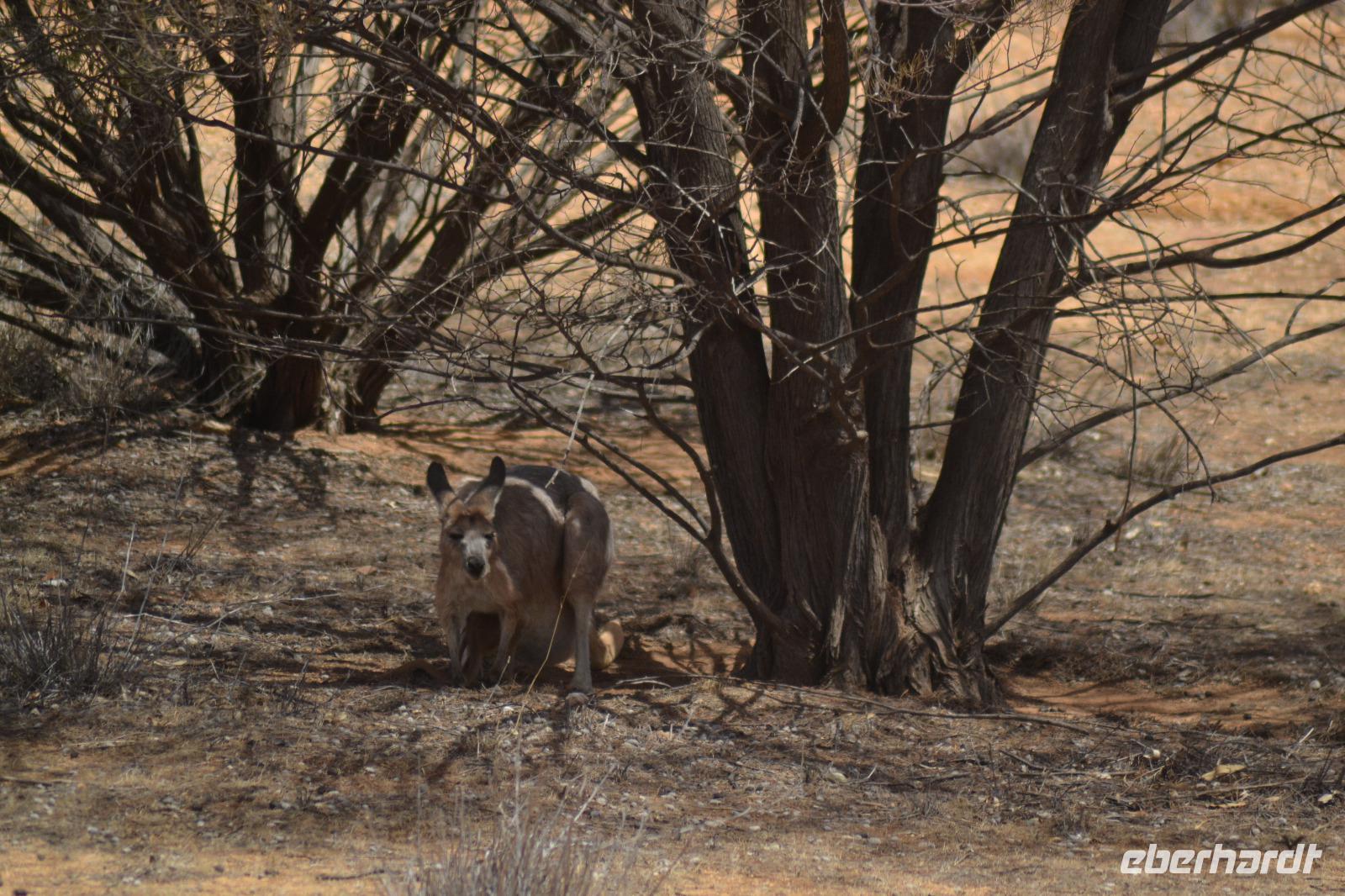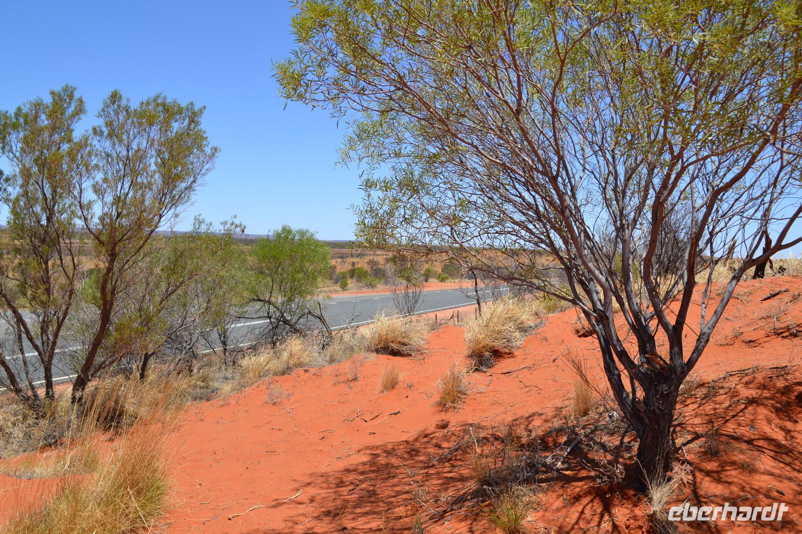 Heute stand eine lange Busfahrt durch das rote Outback bevor. Wir verließen unser Hotel in Alice Springs und legten nach der ersten Etappe eine Pause an einer Straußenfarm ein. Leider hatte diese heute geschlossen, doch an der Tankstelle stand ein Dromedar und ein paar Strauße zum Füttern bereit. Weiter ging es Richtung Ayers Rock! Der Busfahrer hatte es heute leicht, denn auf der ca. 5 Stündigen Fahrt musste er nur 1-mal rechts abbiegen. Entlang des Stuart Highway hielten wir an einer roten Sanddüne, hinter welcher sich ein ausgetrockneter Salzsee befand. Dieser liegt bereits seit vielen Jahren ohne Wasser brach, aber die weißen Salzrückstände sind geblieben. Von dort aus hatte man einen tollen Blick auf den Mount Connor. Der Tafelberg wird oft mit dem Uluru verwechselt, da sich beide sehr ähnlichsehen. Wir trafen am frühen Nachmittag in unserem Hotel ein und konnten uns ein wenig ausruhen und auf die Wanderung an den Olgas vorbereiten. Einige Gäste nutzen die Zeit für ein Schläfchen, andere aßen eine Kleinigkeit zum Mittag oder fuhren zusammen mit Eva in das „Zentrum" von Ayers Rock. 15:30 Uhr fuhren wir gemeinsam zu dem Kata Tjutas, eine Gruppe von 36 Bergen. Sie sind auch bekannt unter dem Namen „die Olgas", benannt nach Königin Olga von Württemberg, die Gemahlin König Karls. Wir wanderten ca. 1 Stunde zu der Felsspalte und waren froh uns die Fliegennetze gekauft zu haben. Auch auf das trinken konnte heute auf keinen Fall verzichtet werden, denn durch die geringe Luftfeuchtigkeit kann es schnell zu Dehydrierungen kommen. Im Anschluss fuhren wir zu unserem heutigen Highlight- dem Sonnenuntergang am Uluru! Wir waren nicht die einzigen Touristen, die dieses Spektakel erleben wollte. Wir hatten unseren separaten Tisch mit ein paar kleinen Snacks und Sekt. Unsere Reisebegleitung hatte heute Geburtstag und gab auch noch ein Gläschen Schnaps aus. Wir beobachteten die untergehende Sonne und die sich veränderten Rottöne am Felsen. Als die Sonne verschwunden war sind wir zurück in unser Hotel und hatten einen BBQ Abend. Wir suchten uns das rohe Fleisch an der Theke aus und grillten es nach eigenem Geschmack selbst. Laura verteilte an jeden ein Glas Wein. Da der heutige Tag sehr anstrengend war und wir bereits am frühen Morgen raus mussten gingen wir nach dem Essen direkt auf unsere Zimmer.