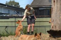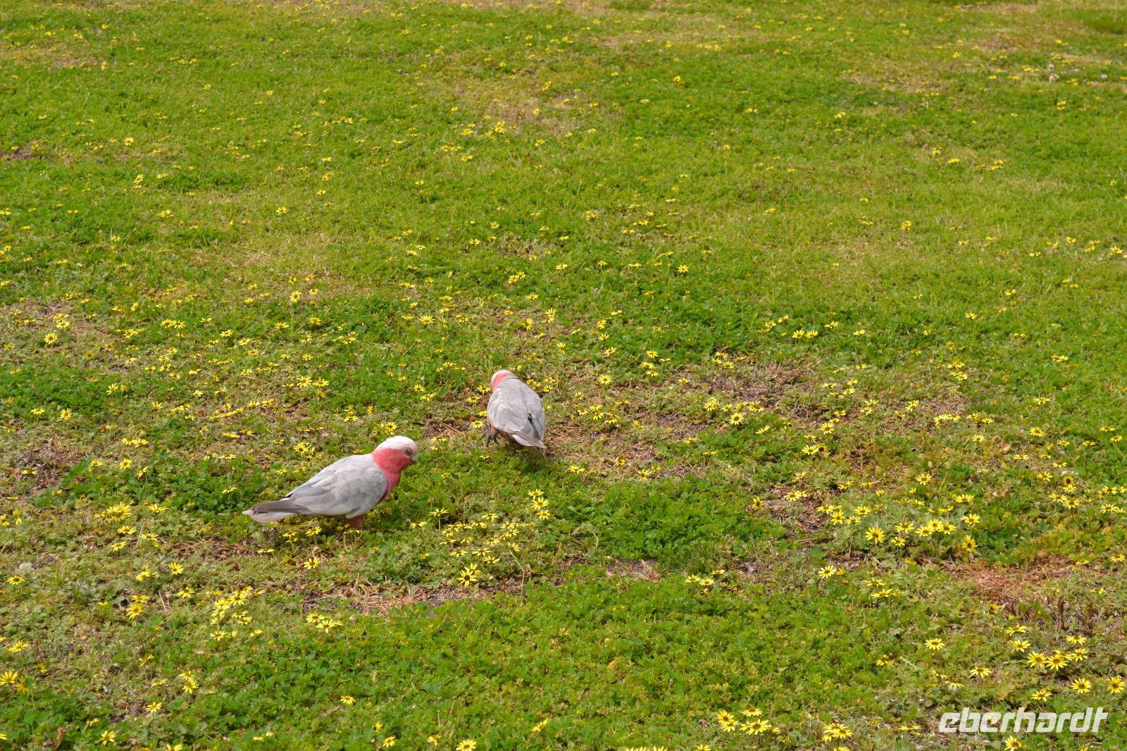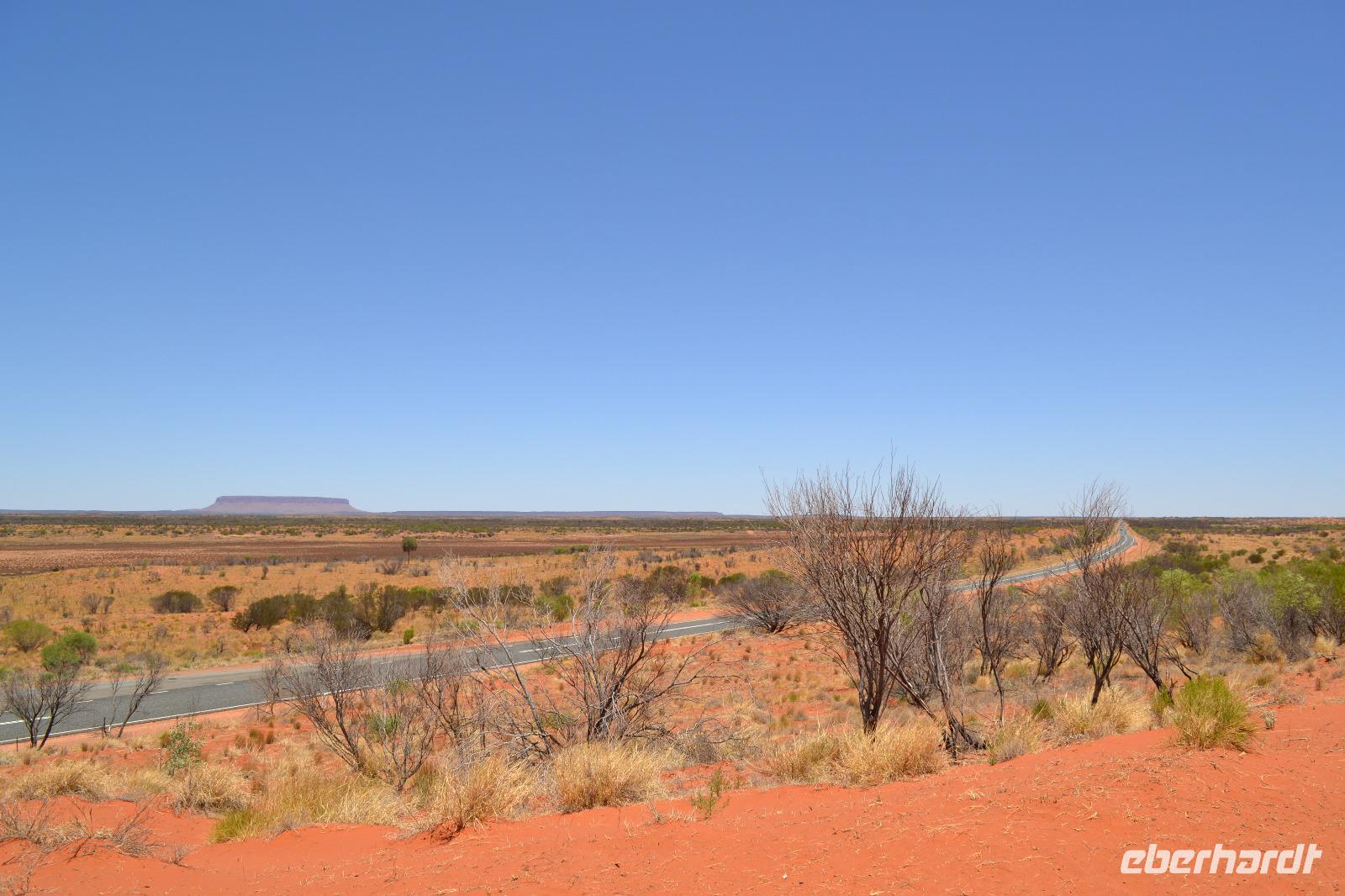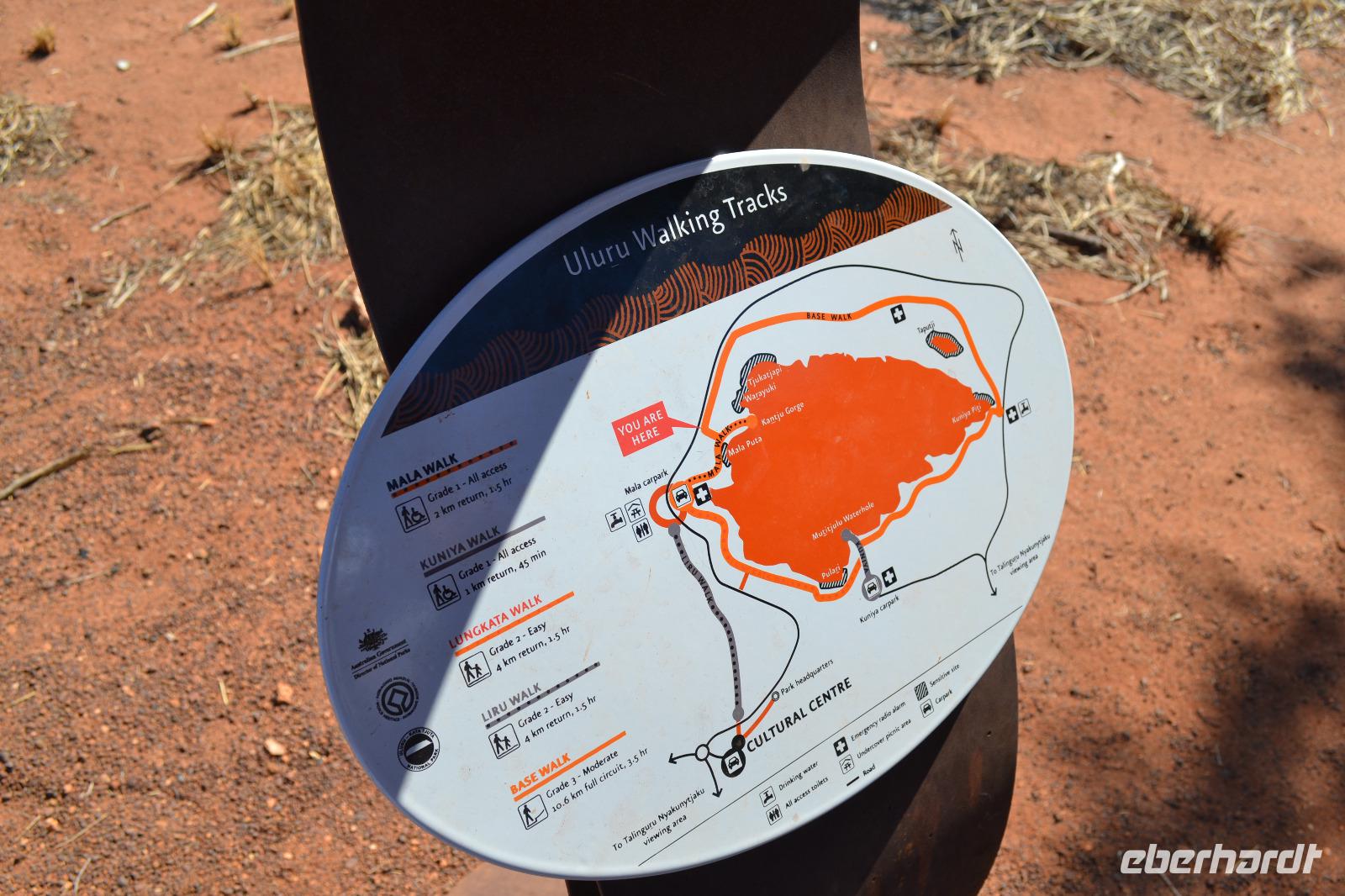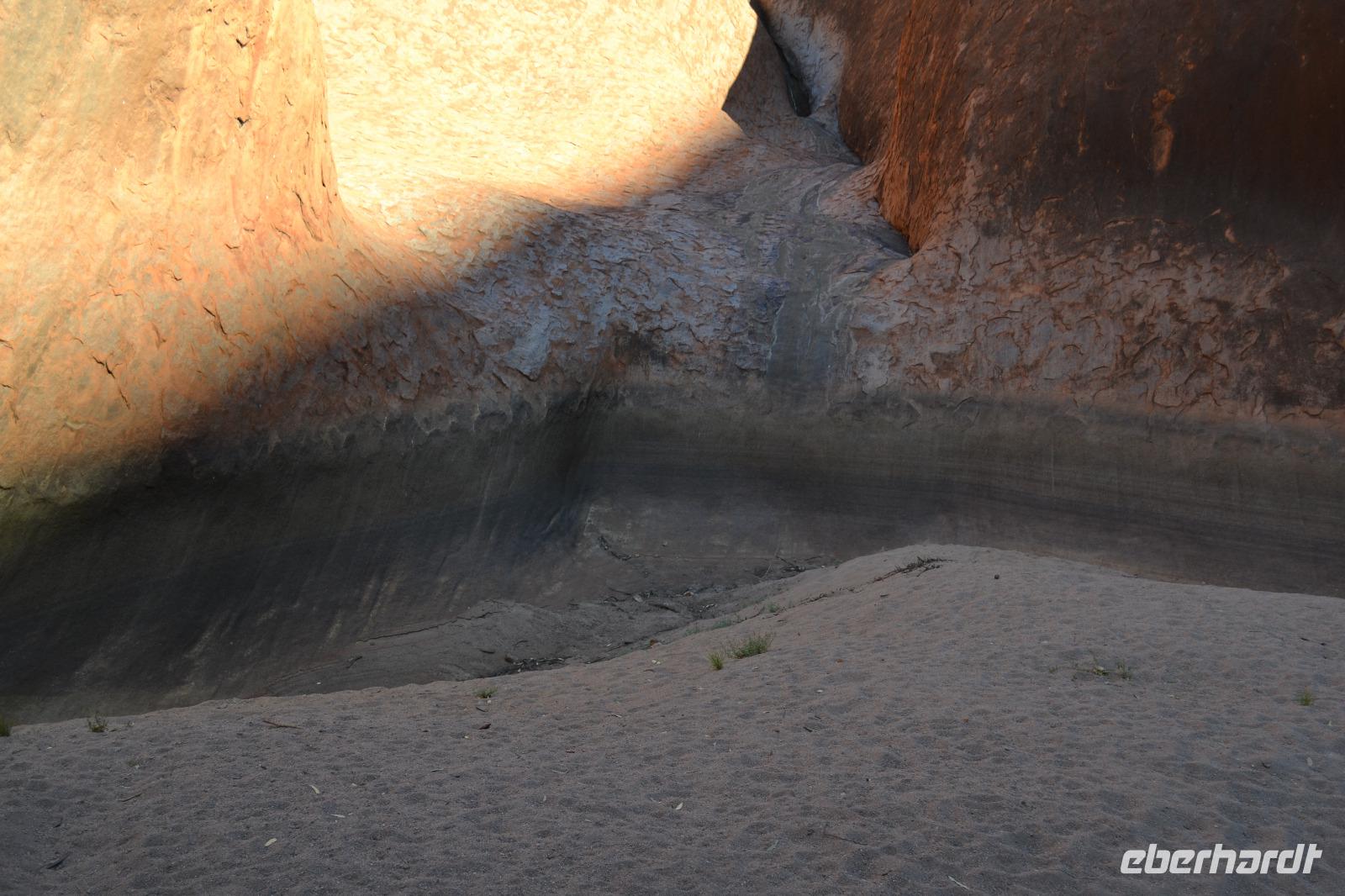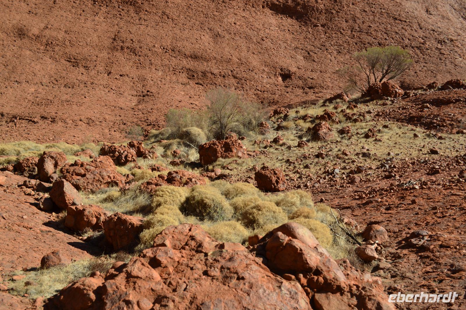 Heute stand eine lange Busfahrt durch das rote Outback bevor. Wir verließen unser Hotel in Alice Springs und legten nach der ersten Etappe eine Pause an einer Straußenfarm ein. Leider hatte diese heute geschlossen, doch an der Tankstelle stand ein Dromedar und ein paar Strauße zum Füttern bereit. Weiter ging es Richtung Ayers Rock! Der Busfahrer hatte es heute leicht, denn auf der ca. 5 Stündigen Fahrt musste er nur 1-mal rechts abbiegen. Entlang des Stuart Highway hielten wir an einer roten Sanddüne, hinter welcher sich ein ausgetrockneter Salzsee befand. Dieser liegt bereits seit vielen Jahren ohne Wasser brach, aber die weißen Salzrückstände sind geblieben. Von dort aus hatte man einen tollen Blick auf den Mount Connor. Der Tafelberg wird oft mit dem Uluru verwechselt, da sich beide sehr ähnlichsehen. Wir trafen am frühen Nachmittag in unserem Hotel ein und konnten uns ein wenig ausruhen und auf die Wanderung an den Olgas vorbereiten. Einige Gäste nutzen die Zeit für ein Schläfchen, andere aßen eine Kleinigkeit zum Mittag oder fuhren zusammen mit Eva in das „Zentrum" von Ayers Rock. 15:30 Uhr fuhren wir gemeinsam zu dem Kata Tjutas, eine Gruppe von 36 Bergen. Sie sind auch bekannt unter dem Namen „die Olgas", benannt nach Königin Olga von Württemberg, die Gemahlin König Karls. Wir wanderten ca. 1 Stunde zu der Felsspalte und waren froh uns die Fliegennetze gekauft zu haben. Auch auf das trinken konnte heute auf keinen Fall verzichtet werden, denn durch die geringe Luftfeuchtigkeit kann es schnell zu Dehydrierungen kommen. Im Anschluss fuhren wir zu unserem heutigen Highlight- dem Sonnenuntergang am Uluru! Wir waren nicht die einzigen Touristen, die dieses Spektakel erleben wollte. Wir hatten unseren separaten Tisch mit ein paar kleinen Snacks und Sekt. Unsere Reisebegleitung hatte heute Geburtstag und gab auch noch ein Gläschen Schnaps aus. Wir beobachteten die untergehende Sonne und die sich veränderten Rottöne am Felsen. Als die Sonne verschwunden war sind wir zurück in unser Hotel und hatten einen BBQ Abend. Wir suchten uns das rohe Fleisch an der Theke aus und grillten es nach eigenem Geschmack selbst. Laura verteilte an jeden ein Glas Wein. Da der heutige Tag sehr anstrengend war und wir bereits am frühen Morgen raus mussten gingen wir nach dem Essen direkt auf unsere Zimmer.