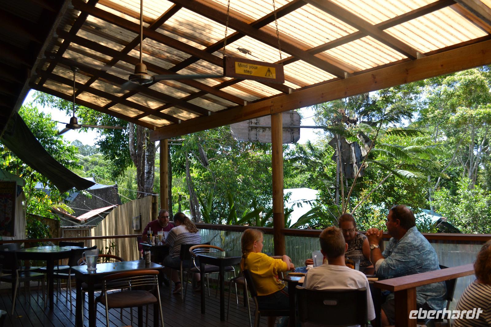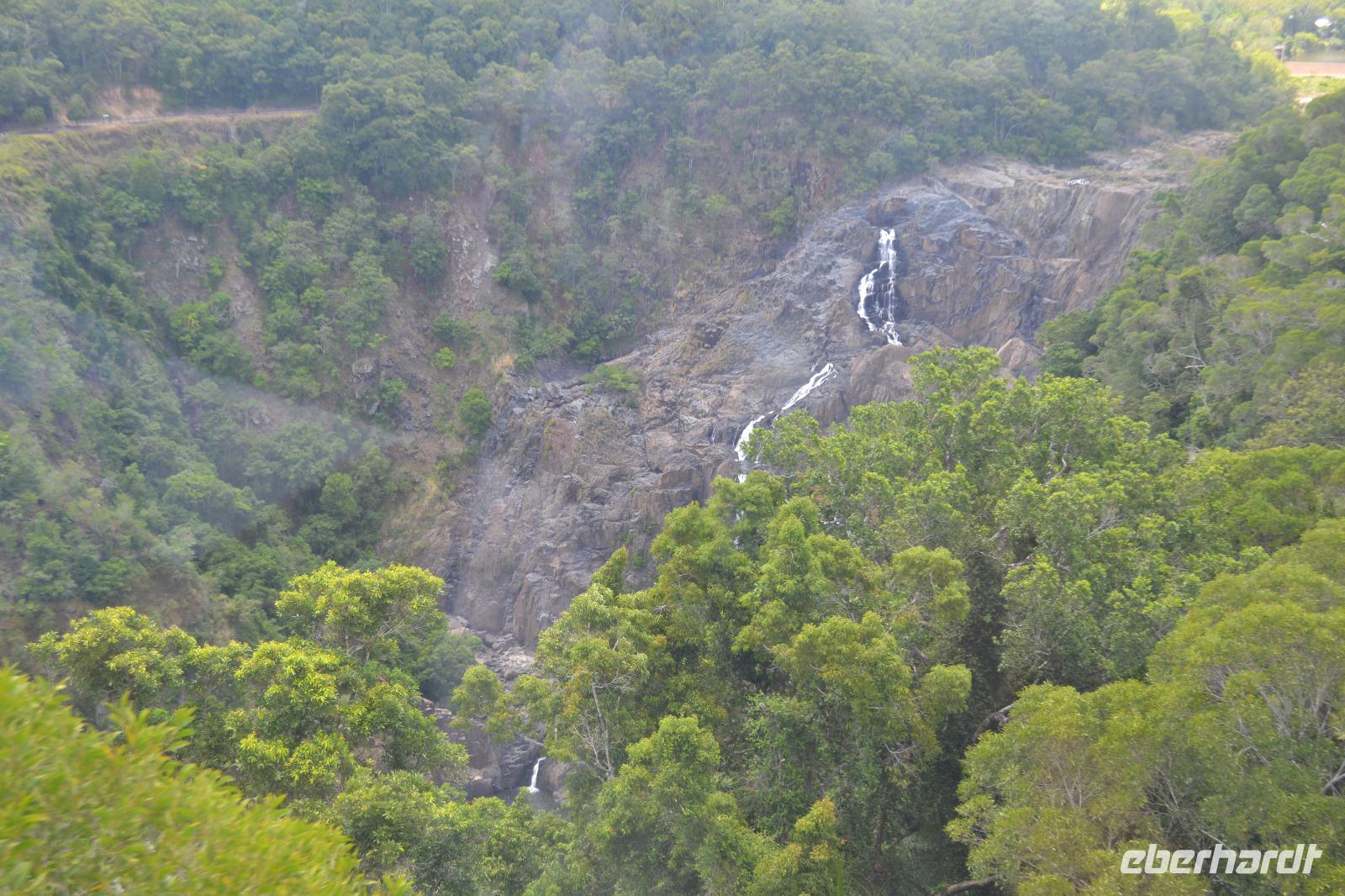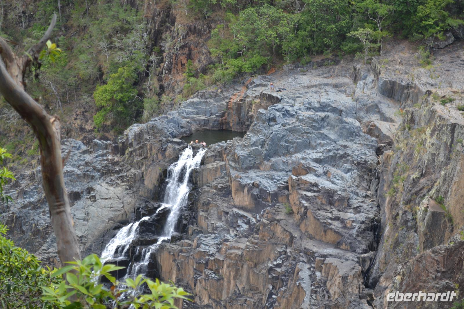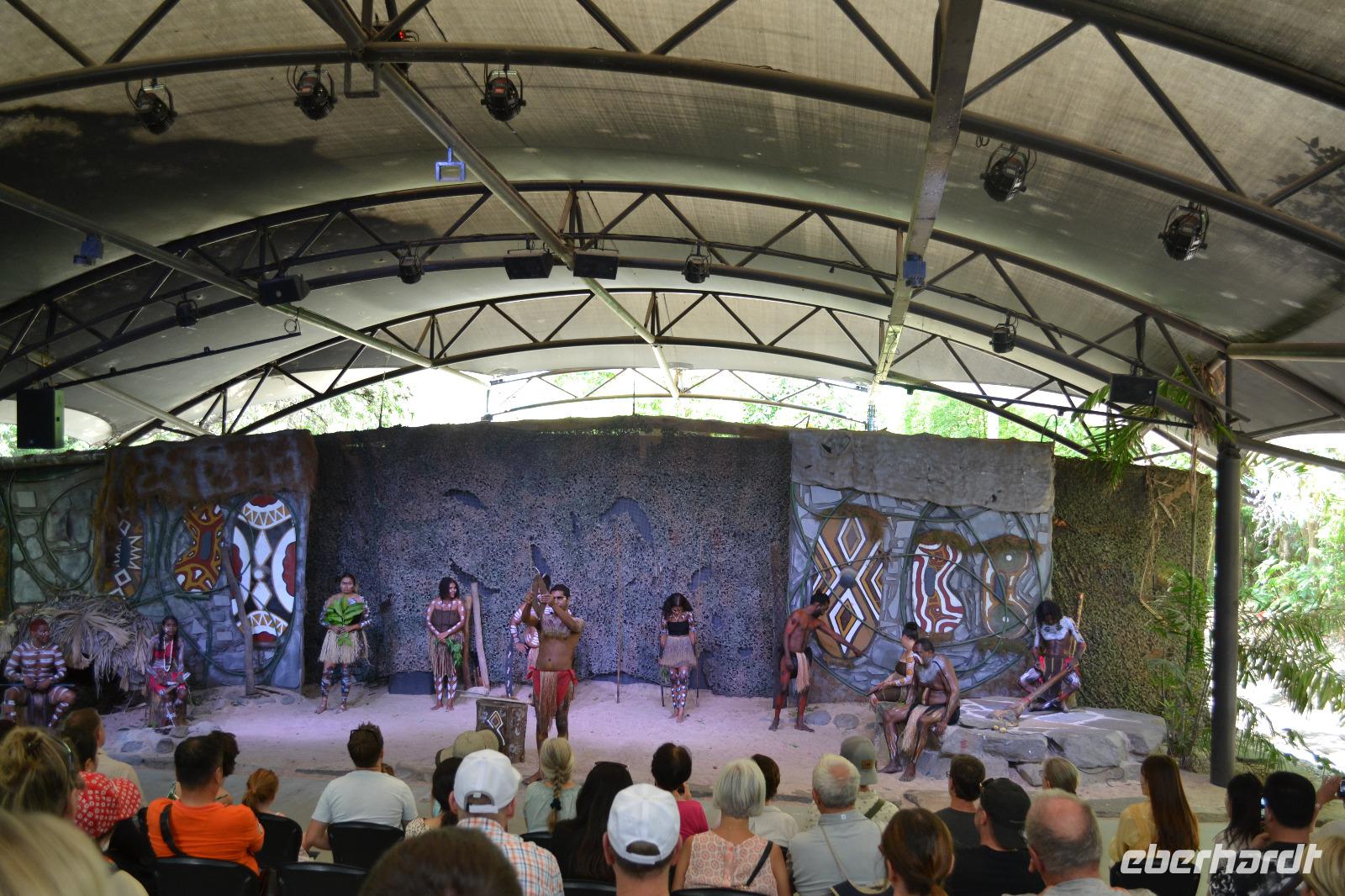 Nach einem reichhaltigen Frühstück verbrachten wir den heutigen Vormittag gemeinsam mit einer anderen Eberhardt Travel Gruppe in dem Tjapukai Kulturzentrum. Zunächst wurden wir in dem Kino bei einer Bilder- und Tanzshow begrüßt. Im Anschluss ging es über eine Brücke an einem kleinen See mit Schildkröten und Aalen vorbei. Diese konnten mit Brot gefüttert werden. Wir sammeln uns im Theater, wo uns von zwei Gästeführer einige Früchte des Regenwaldes, sowie die Waffen und Bestrafungen des Stammes erklärten. Als Abschluss wurde uns gezeigt wie man auf einem Didgeridoo spielt. Danach ging es für uns ans Eingemachte. Wir durften uns vor den Augen der Einheimischen beim Bumerang werfen ausprobieren. Nicht jeder hatte Erfolg dabei, aber Spaß hat es auf jeden Fall gemacht! Man kann behaupten in Australien einen Bumerang geworfen zu haben. Nach der sportlichen Aktion spazierten wir zurück in das Theater. Dort führten uns die Stammeszugehörigen eine Tanzdarbietung vor. Es handelte sich um Uralte Tänze des Tjapukai Stammes um Tiere zu vertreiben oder sich mit der Natur in Einklang zu bringen. Nach dem Bumerang folgte die nächste Disziplin im Speer werfen. Mittels eines Beschleunigers klappte das Werfen super und wir kamen weit. Mittags verließen wir das Zentrum und es ging mit der Skyrail bis nach Kuranda in den Regenwald. Unterwegs stiegen wir zweimal aus den Gondeln damit uns Annette einen Einblick in die Natur geben konnte. Dort tummelte es nur von Baumriesen und kleinen Tierchen. Um den Wald zu schützen wurden für die Touristen Pfade zum laufen errichtet. Somit zerstört man die kleinen Lebewesen nicht und sinkt in dem weichen Material nicht ein. Um die Barron Falls gut zu sehen baute man eine riesige Stahl Konstruktion mit Glasfenster in den Regenwald. Von da aus beobachteten wir Teenager in einen Teil des Wasserfalls springen. Für unser Mittagessen fuhren wir bis in den kleinen Ort Kuranda. Unser Essen wurde uns in einer Markthalle in mitten der Natur serviert. Auch ein paar schaulustige Leguane zeigten sich. Uns blieb noch ein wenig Zeit durch die Geschäfte zu bummeln oder in das Vogel-bzw. Schmetterlingshaus zu gehen. 15:15 Uhr trafen wir uns alle an dem Bahnhof um mit der Scenic Railway zurück nach Freshwater und dann weiter mit dem Bus nach Cairns zu fahren. Wir genossen die Fahrt mit dem Zug durch die Natur. Am Abend erreichten wir unser Hotel und Anette verabschiedete sich bis zum übernächsten Tag. Wir trafen uns zum Abendessen an der Hotelbar. Einige Gäste sind noch an der Esplanade hängen geblieben und bekamen glücklicherweise auch noch zu später Stunde ihr Menü.