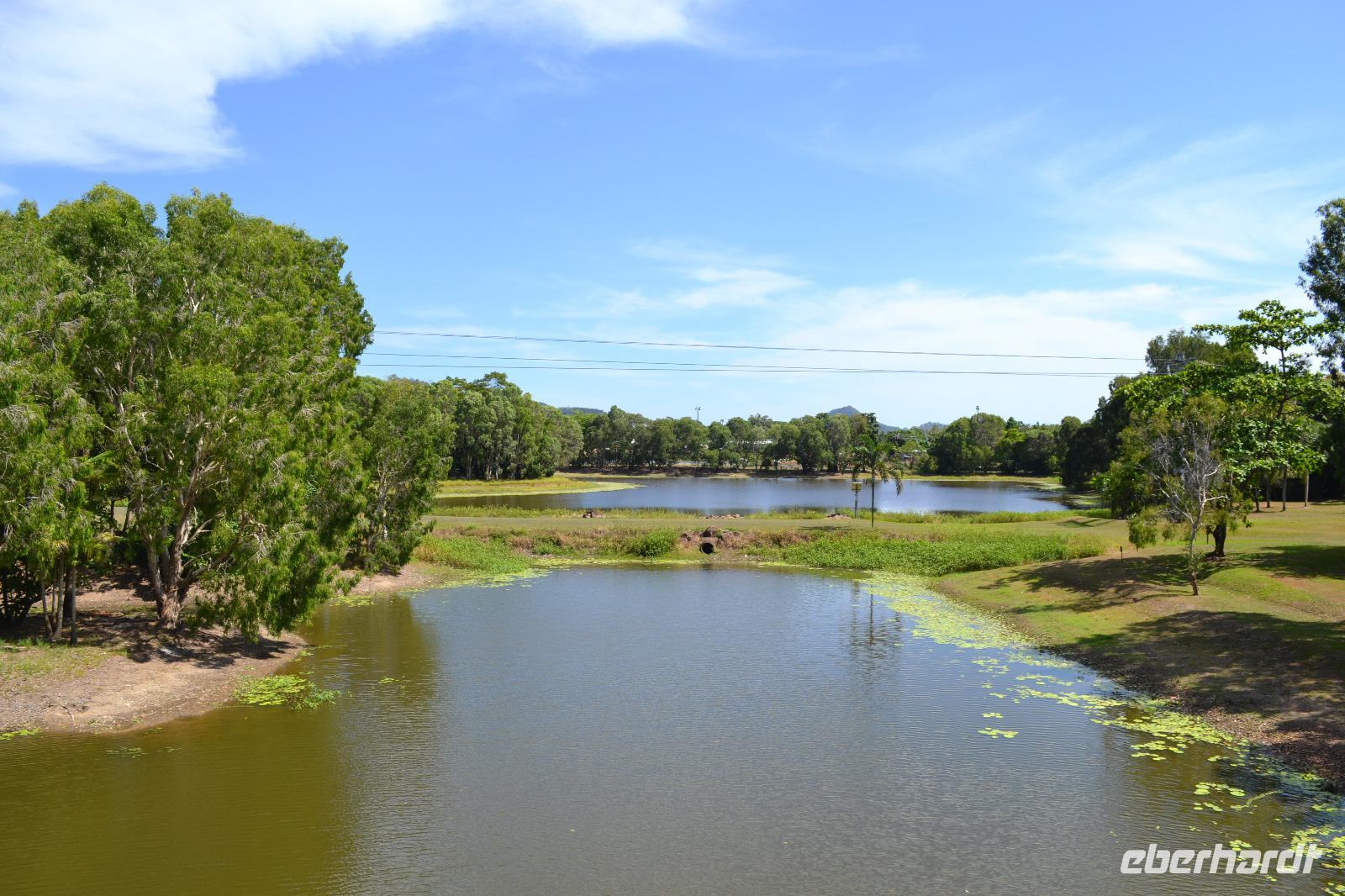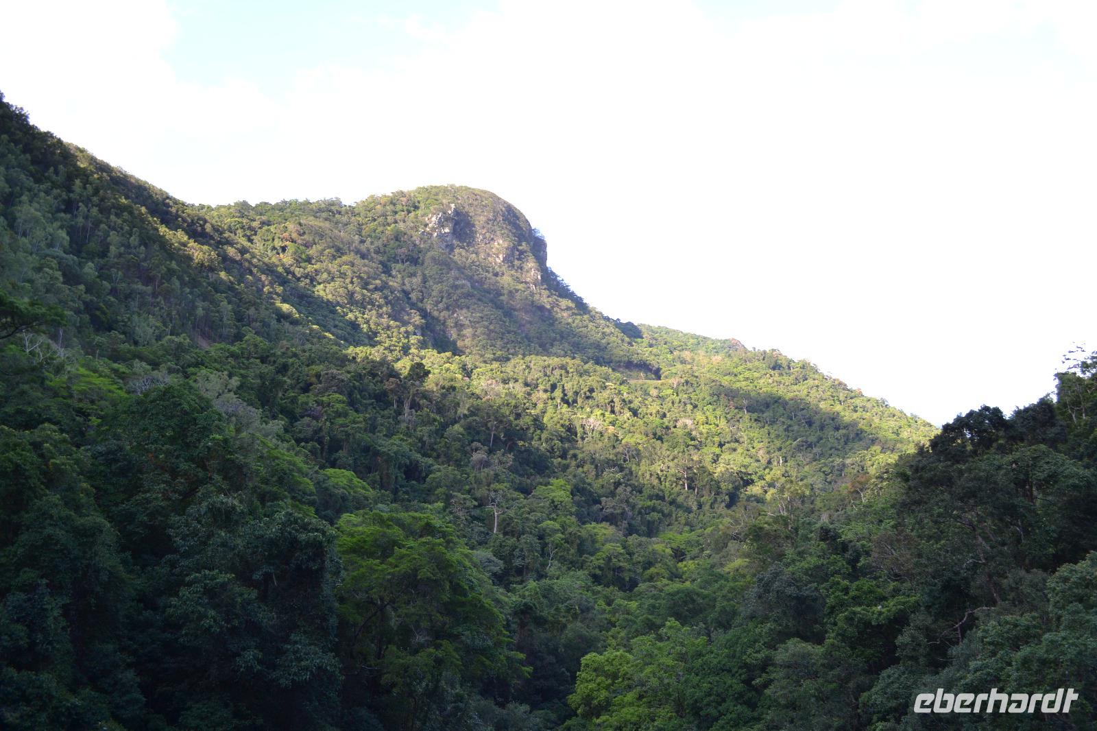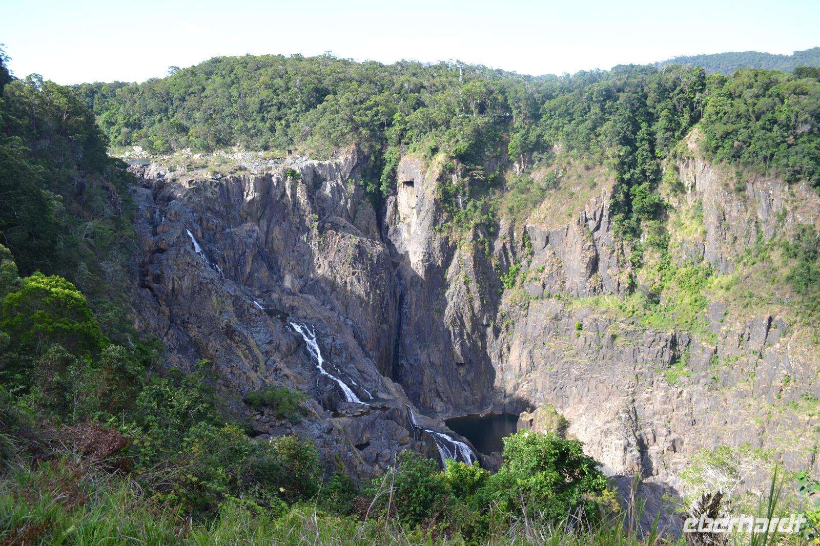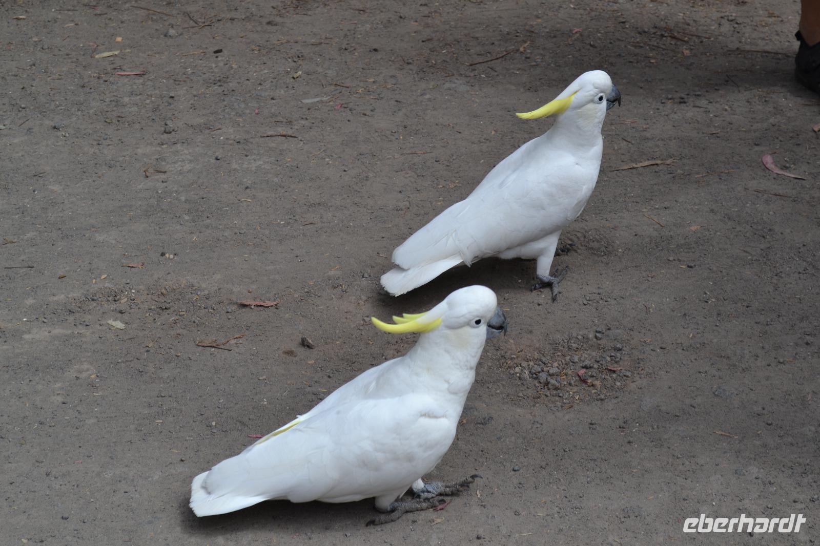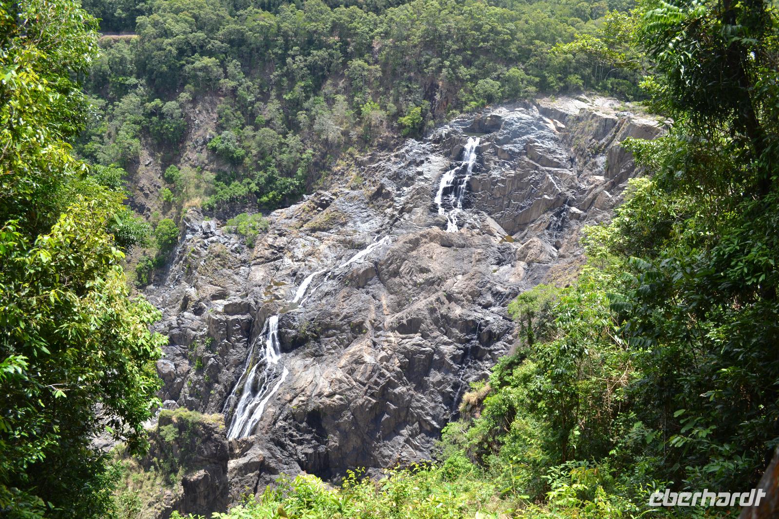 Nach einem reichhaltigen Frühstück verbrachten wir den heutigen Vormittag gemeinsam mit einer anderen Eberhardt Travel Gruppe in dem Tjapukai Kulturzentrum. Zunächst wurden wir in dem Kino bei einer Bilder- und Tanzshow begrüßt. Im Anschluss ging es über eine Brücke an einem kleinen See mit Schildkröten und Aalen vorbei. Diese konnten mit Brot gefüttert werden. Wir sammeln uns im Theater, wo uns von zwei Gästeführer einige Früchte des Regenwaldes, sowie die Waffen und Bestrafungen des Stammes erklärten. Als Abschluss wurde uns gezeigt wie man auf einem Didgeridoo spielt. Danach ging es für uns ans Eingemachte. Wir durften uns vor den Augen der Einheimischen beim Bumerang werfen ausprobieren. Nicht jeder hatte Erfolg dabei, aber Spaß hat es auf jeden Fall gemacht! Man kann behaupten in Australien einen Bumerang geworfen zu haben. Nach der sportlichen Aktion spazierten wir zurück in das Theater. Dort führten uns die Stammeszugehörigen eine Tanzdarbietung vor. Es handelte sich um Uralte Tänze des Tjapukai Stammes um Tiere zu vertreiben oder sich mit der Natur in Einklang zu bringen. Nach dem Bumerang folgte die nächste Disziplin im Speer werfen. Mittels eines Beschleunigers klappte das Werfen super und wir kamen weit. Mittags verließen wir das Zentrum und es ging mit der Skyrail bis nach Kuranda in den Regenwald. Unterwegs stiegen wir zweimal aus den Gondeln damit uns Annette einen Einblick in die Natur geben konnte. Dort tummelte es nur von Baumriesen und kleinen Tierchen. Um den Wald zu schützen wurden für die Touristen Pfade zum laufen errichtet. Somit zerstört man die kleinen Lebewesen nicht und sinkt in dem weichen Material nicht ein. Um die Barron Falls gut zu sehen baute man eine riesige Stahl Konstruktion mit Glasfenster in den Regenwald. Von da aus beobachteten wir Teenager in einen Teil des Wasserfalls springen. Für unser Mittagessen fuhren wir bis in den kleinen Ort Kuranda. Unser Essen wurde uns in einer Markthalle in mitten der Natur serviert. Auch ein paar schaulustige Leguane zeigten sich. Uns blieb noch ein wenig Zeit durch die Geschäfte zu bummeln oder in das Vogel-bzw. Schmetterlingshaus zu gehen. 15:15 Uhr trafen wir uns alle an dem Bahnhof um mit der Scenic Railway zurück nach Freshwater und dann weiter mit dem Bus nach Cairns zu fahren. Wir genossen die Fahrt mit dem Zug durch die Natur. Am Abend erreichten wir unser Hotel und Anette verabschiedete sich bis zum übernächsten Tag. Wir trafen uns zum Abendessen an der Hotelbar. Einige Gäste sind noch an der Esplanade hängen geblieben und bekamen glücklicherweise auch noch zu später Stunde ihr Menü.