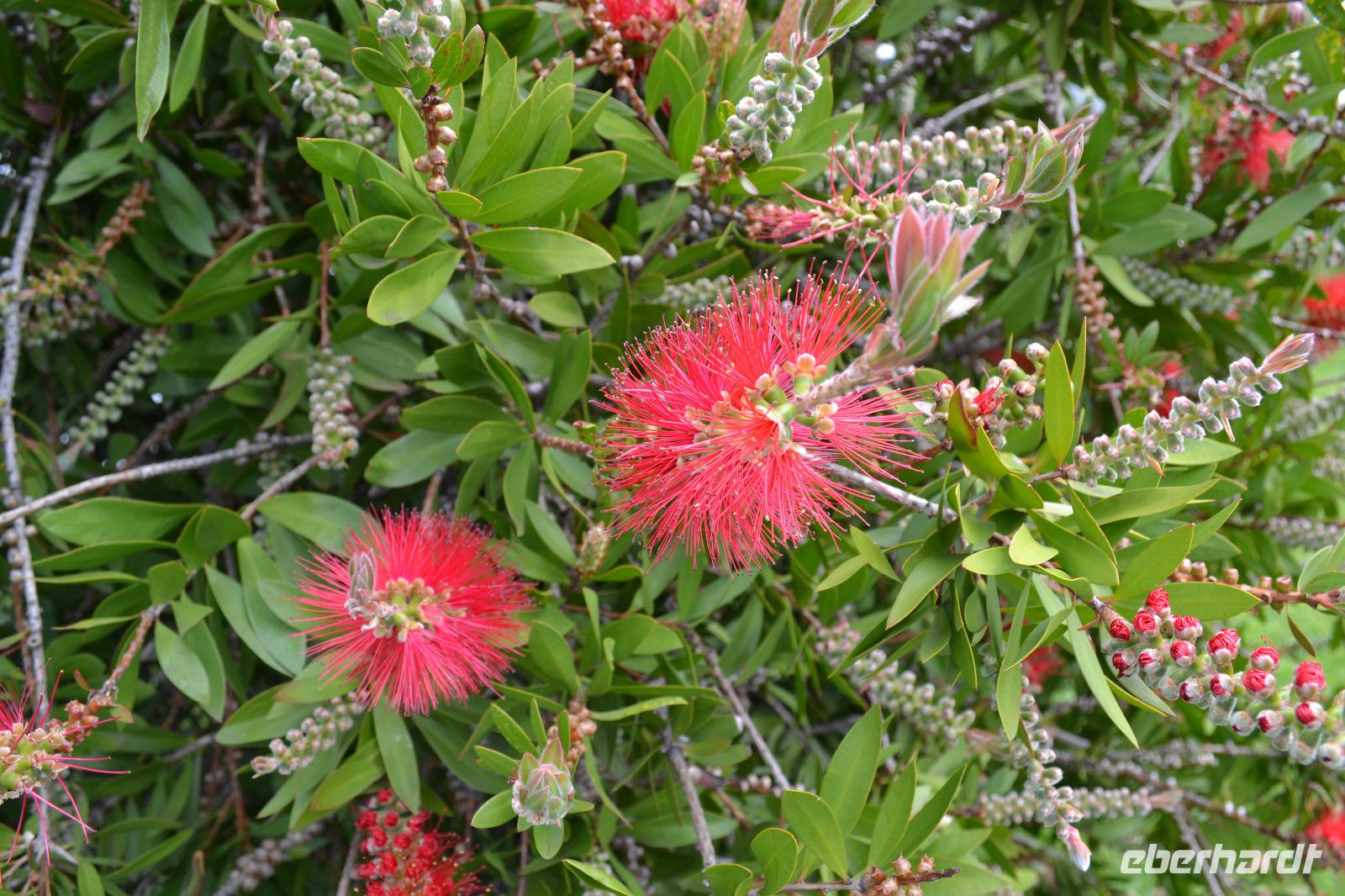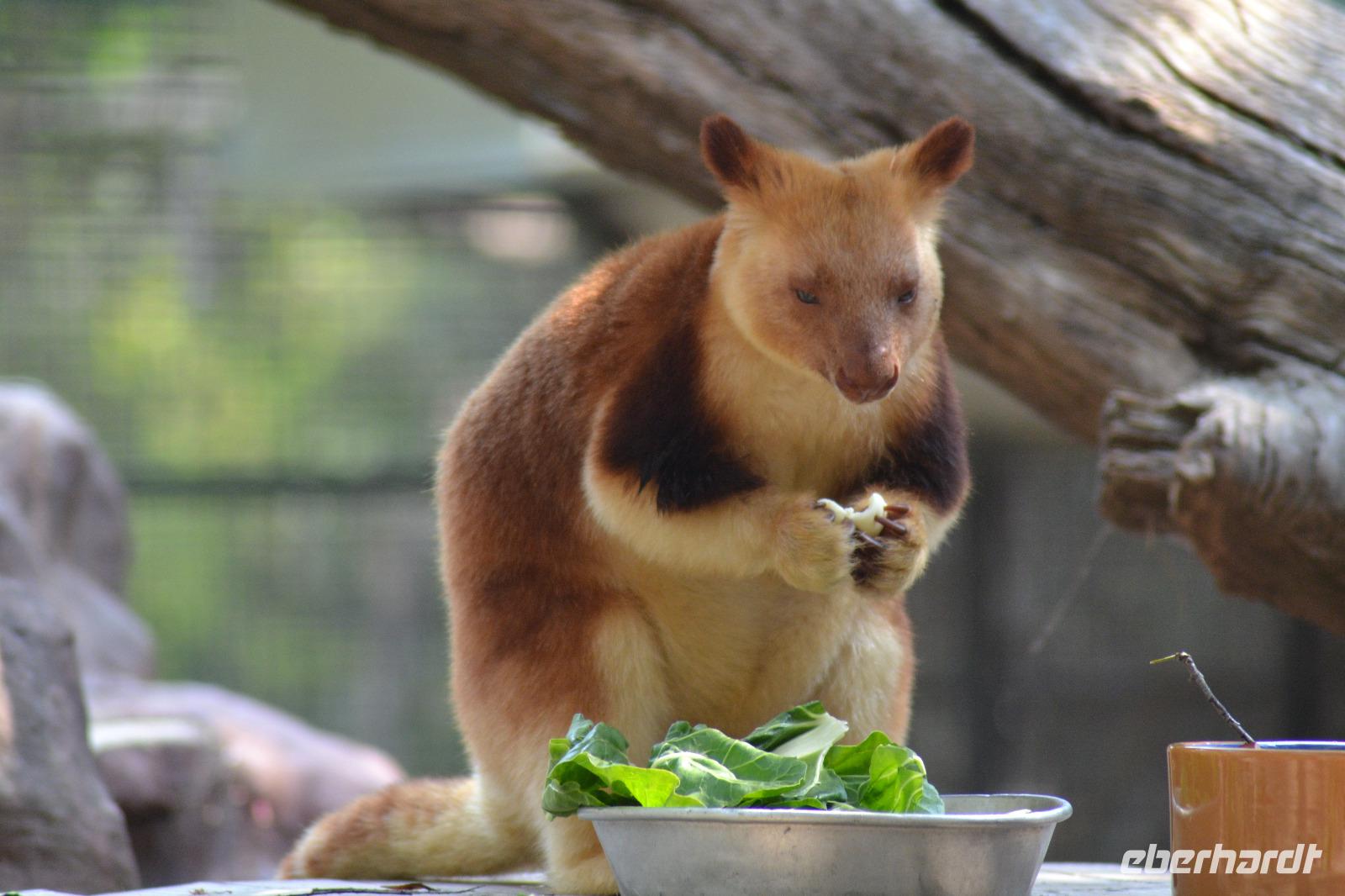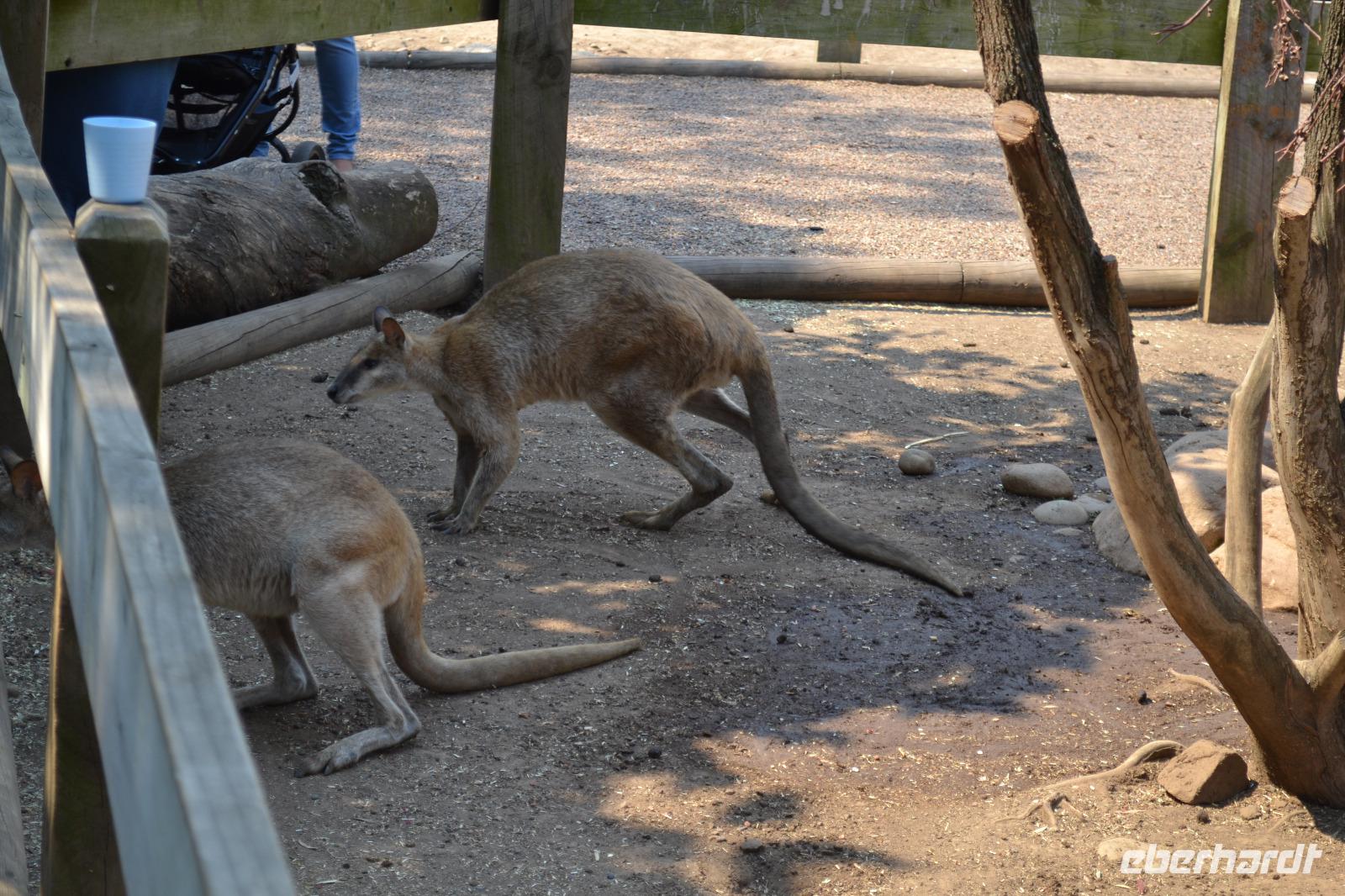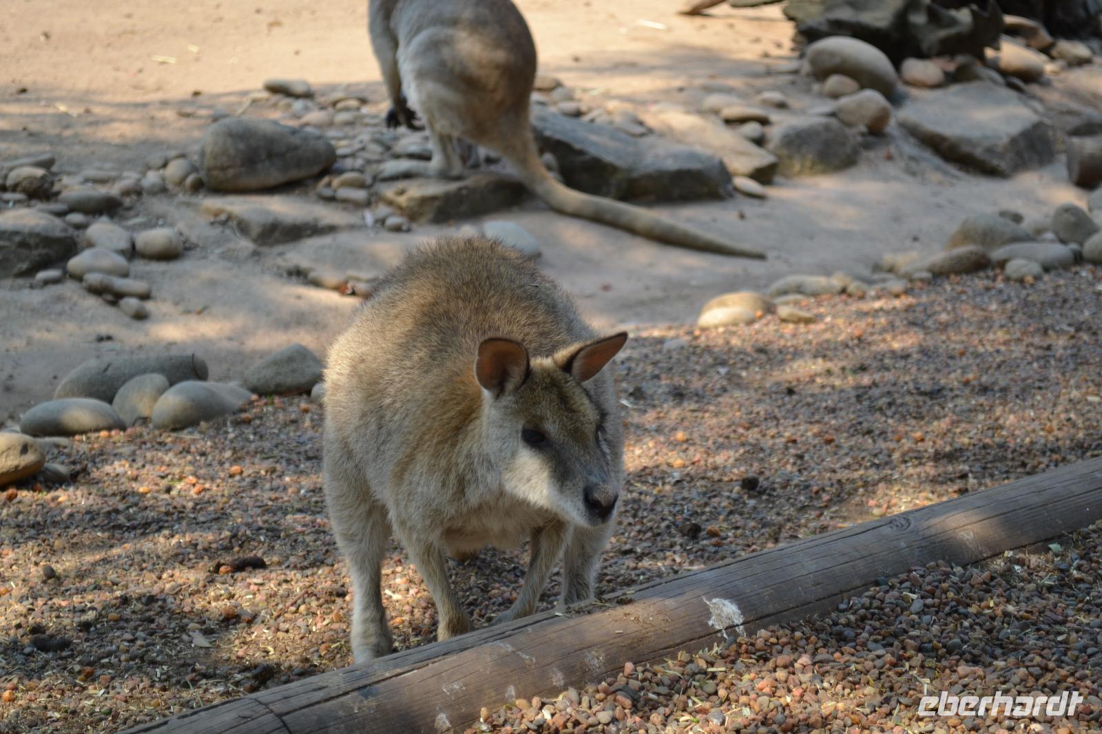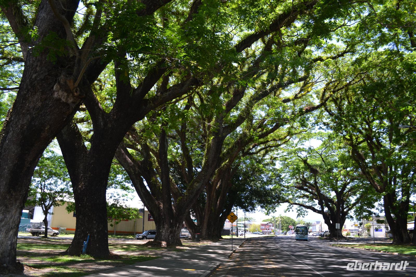 Nach einem reichhaltigen Frühstück verbrachten wir den heutigen Vormittag gemeinsam mit einer anderen Eberhardt Travel Gruppe in dem Tjapukai Kulturzentrum. Zunächst wurden wir in dem Kino bei einer Bilder- und Tanzshow begrüßt. Im Anschluss ging es über eine Brücke an einem kleinen See mit Schildkröten und Aalen vorbei. Diese konnten mit Brot gefüttert werden. Wir sammeln uns im Theater, wo uns von zwei Gästeführer einige Früchte des Regenwaldes, sowie die Waffen und Bestrafungen des Stammes erklärten. Als Abschluss wurde uns gezeigt wie man auf einem Didgeridoo spielt. Danach ging es für uns ans Eingemachte. Wir durften uns vor den Augen der Einheimischen beim Bumerang werfen ausprobieren. Nicht jeder hatte Erfolg dabei, aber Spaß hat es auf jeden Fall gemacht! Man kann behaupten in Australien einen Bumerang geworfen zu haben. Nach der sportlichen Aktion spazierten wir zurück in das Theater. Dort führten uns die Stammeszugehörigen eine Tanzdarbietung vor. Es handelte sich um Uralte Tänze des Tjapukai Stammes um Tiere zu vertreiben oder sich mit der Natur in Einklang zu bringen. Nach dem Bumerang folgte die nächste Disziplin im Speer werfen. Mittels eines Beschleunigers klappte das Werfen super und wir kamen weit. Mittags verließen wir das Zentrum und es ging mit der Skyrail bis nach Kuranda in den Regenwald. Unterwegs stiegen wir zweimal aus den Gondeln damit uns Annette einen Einblick in die Natur geben konnte. Dort tummelte es nur von Baumriesen und kleinen Tierchen. Um den Wald zu schützen wurden für die Touristen Pfade zum laufen errichtet. Somit zerstört man die kleinen Lebewesen nicht und sinkt in dem weichen Material nicht ein. Um die Barron Falls gut zu sehen baute man eine riesige Stahl Konstruktion mit Glasfenster in den Regenwald. Von da aus beobachteten wir Teenager in einen Teil des Wasserfalls springen. Für unser Mittagessen fuhren wir bis in den kleinen Ort Kuranda. Unser Essen wurde uns in einer Markthalle in mitten der Natur serviert. Auch ein paar schaulustige Leguane zeigten sich. Uns blieb noch ein wenig Zeit durch die Geschäfte zu bummeln oder in das Vogel-bzw. Schmetterlingshaus zu gehen. 15:15 Uhr trafen wir uns alle an dem Bahnhof um mit der Scenic Railway zurück nach Freshwater und dann weiter mit dem Bus nach Cairns zu fahren. Wir genossen die Fahrt mit dem Zug durch die Natur. Am Abend erreichten wir unser Hotel und Anette verabschiedete sich bis zum übernächsten Tag. Wir trafen uns zum Abendessen an der Hotelbar. Einige Gäste sind noch an der Esplanade hängen geblieben und bekamen glücklicherweise auch noch zu später Stunde ihr Menü.