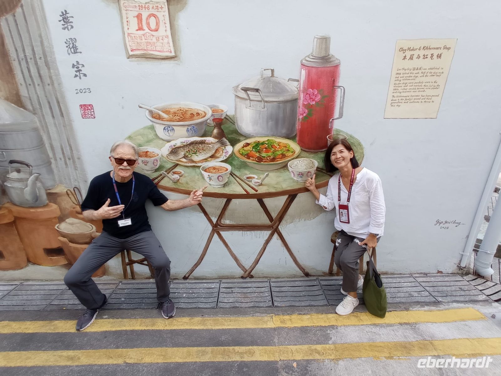 Rechtzeitig im Hotel zurück treffen wir dann wieder auf Helena, die uns zu einer sehr interessanten Stadtrundfahrt durch ihre Heimatstadt mitnimmt. Vor allem durch ihre fürsorgliche, warmherzige Art wird dieser Nachmittag zu einem Ereignis erster Güte. Gekonnt präsentiert sie uns sowohl den Botanischen als auch den Orchideen-Garten, zeigt uns die verschiedenen Viertel dieser multikulturellen Stadt, wobei sie überall alle zu kennen scheint, und führt uns zuletzt in einen der beliebten Foodstalls, in dem wir uns bei gutem asiatischen Essen stärken können.