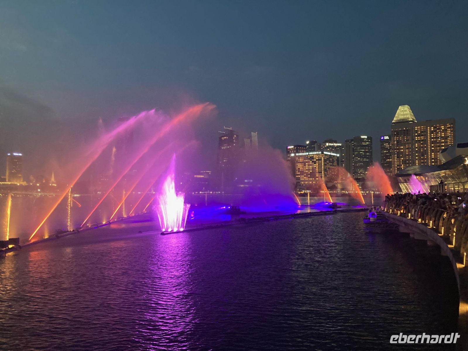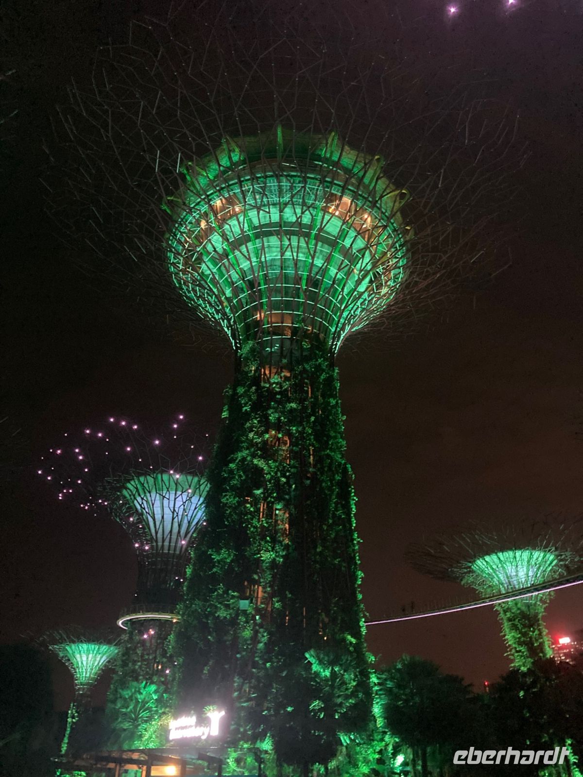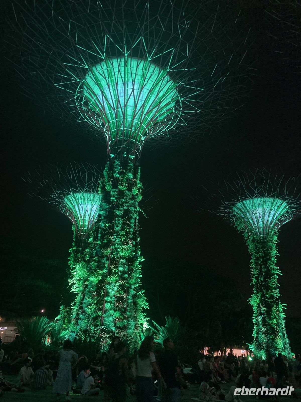 Während das eine seine Insassen rechtzeitig zur zuerst stattfindenden Spectra-Show bringt, befördert das andere seine Gäste zur Show an den Supertrees. Zuerst über Telefon und dann über Whats App können wir dieses kleine Missgeschick lösen und genießen, entspannt auf dem Rücken liegend, die berühmtesten Opernarien mit dem begleitenden Lichterspiel. Dabei fragen wir uns, wie diese Musik wohl von den neben uns befindlichen chinesischen und malaiischen Ohren aufgenommen wird.