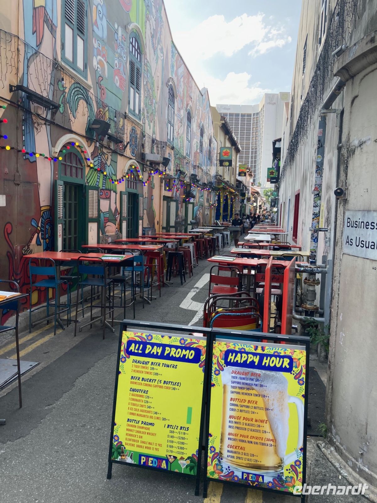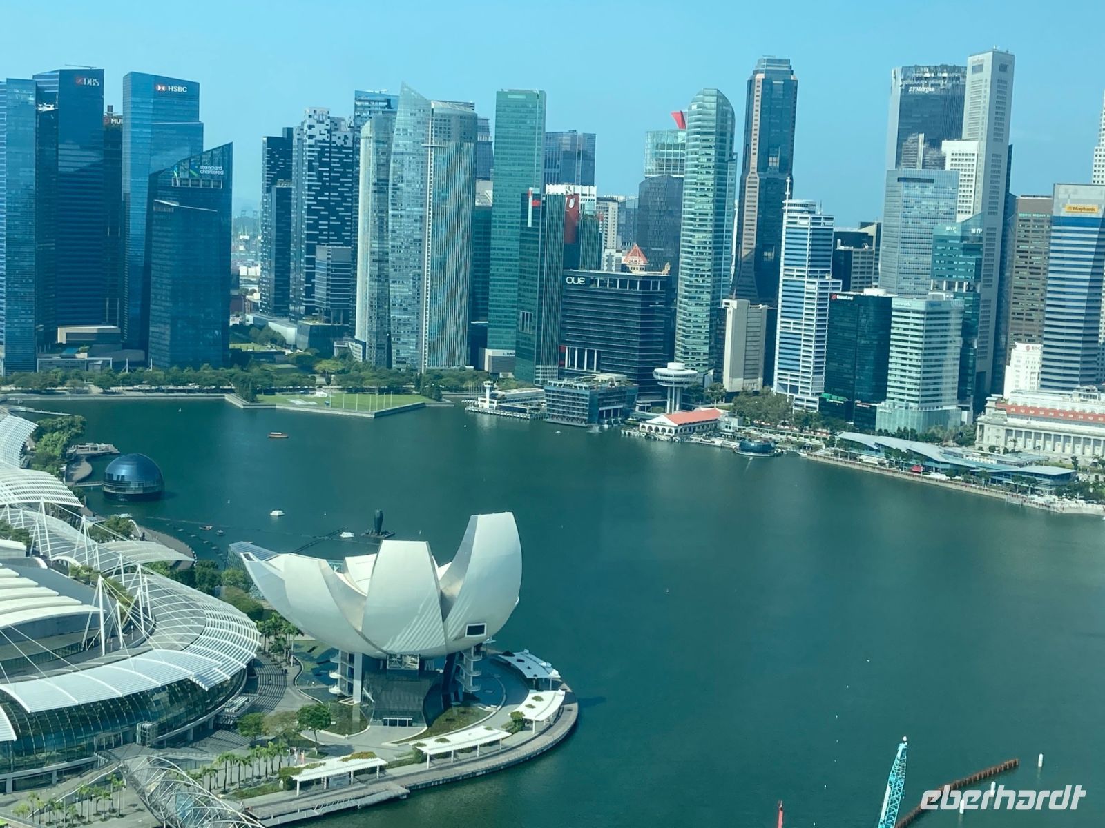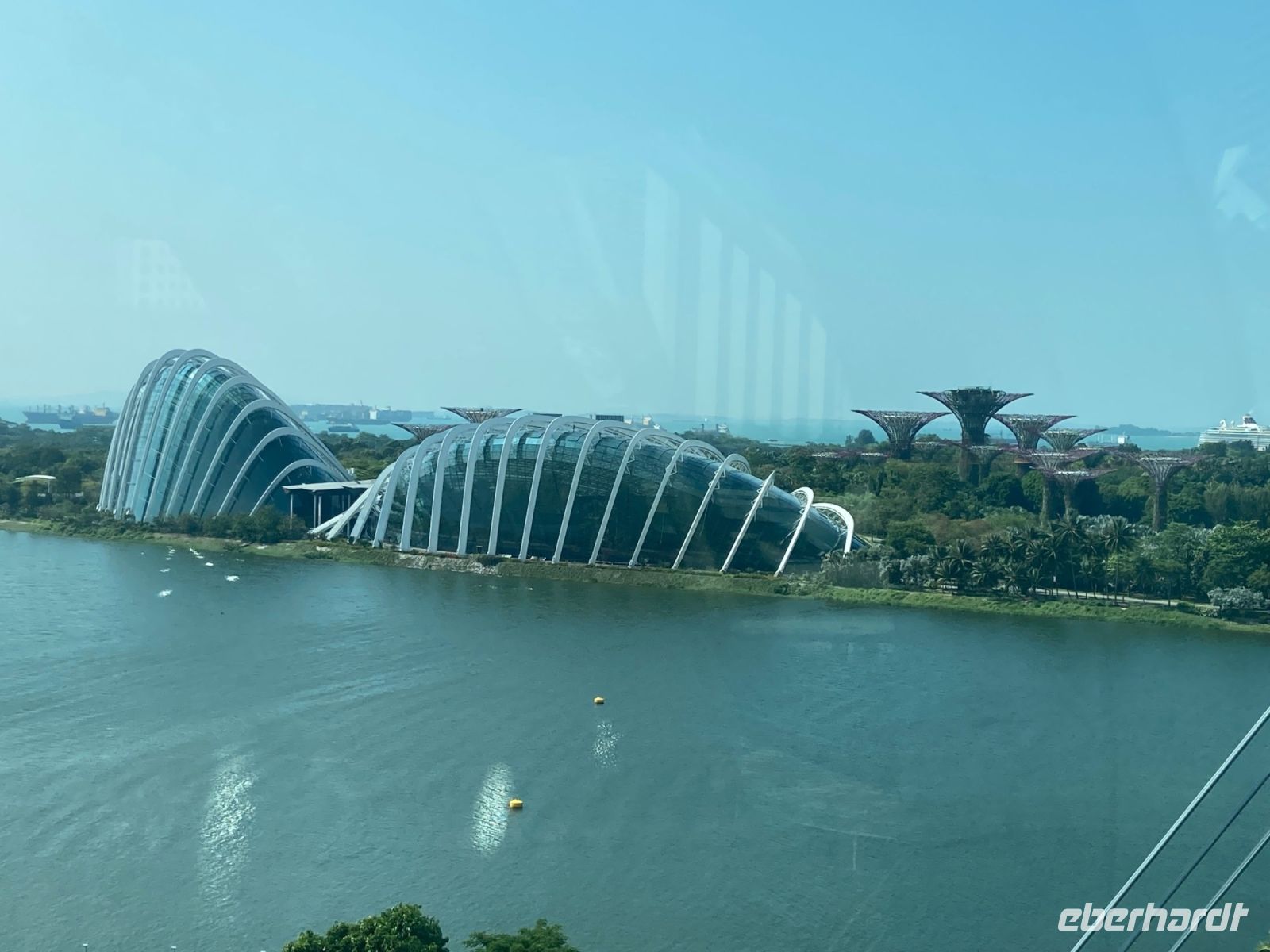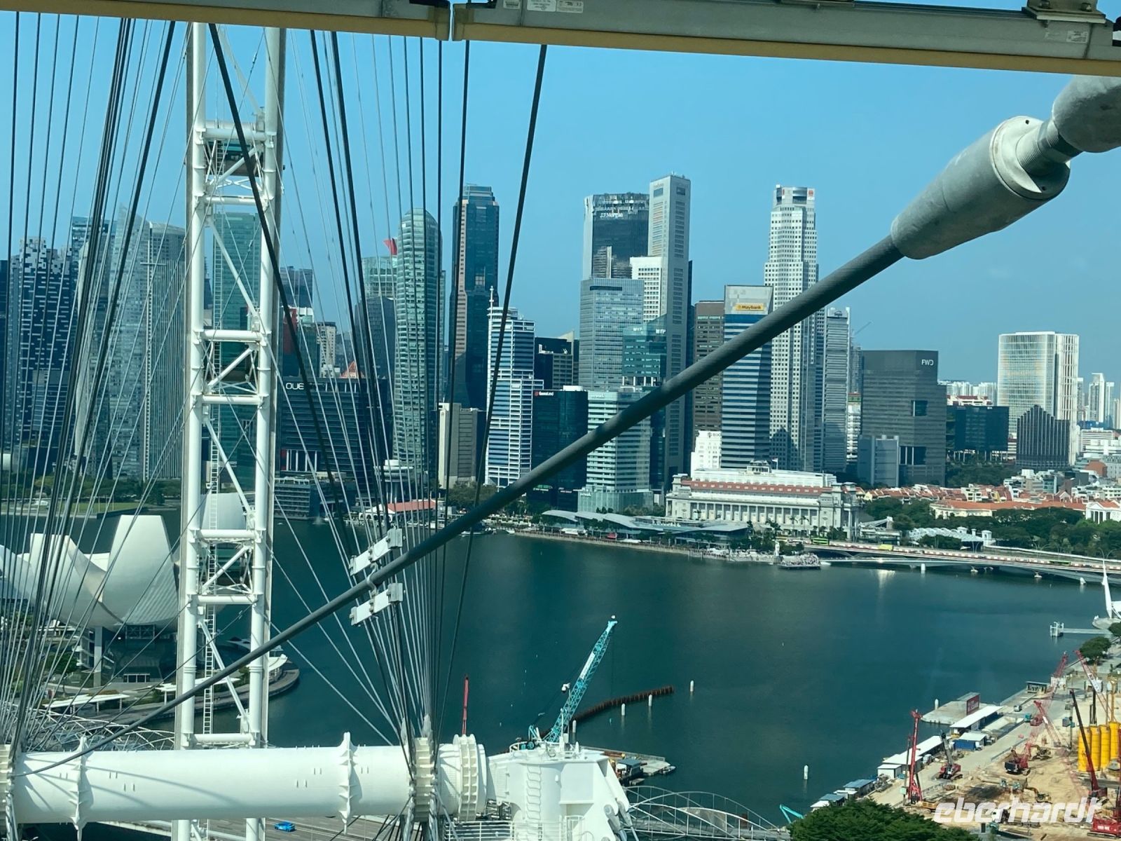 Trotz des Schlafdefizits wollen am nächsten Morgen fast alle den Vormittag nutzen, um diese Stadt der Superlative aus einem anderen Blickwinkel zu betrachten. Also machen wir uns, die hohe Luftfeuchtigkeit negierend, zu Fuß zum Singapur Flyer auf, dem großen Riesenrad in der Marina Bay Area, um die Highlights der Stadt von oben zu genießen. Dabei ergeben sich faszinierende, nie erfahrene Ausblicke und natürlich unzählige Möglichkeiten, tolle Fotos zu schießen.