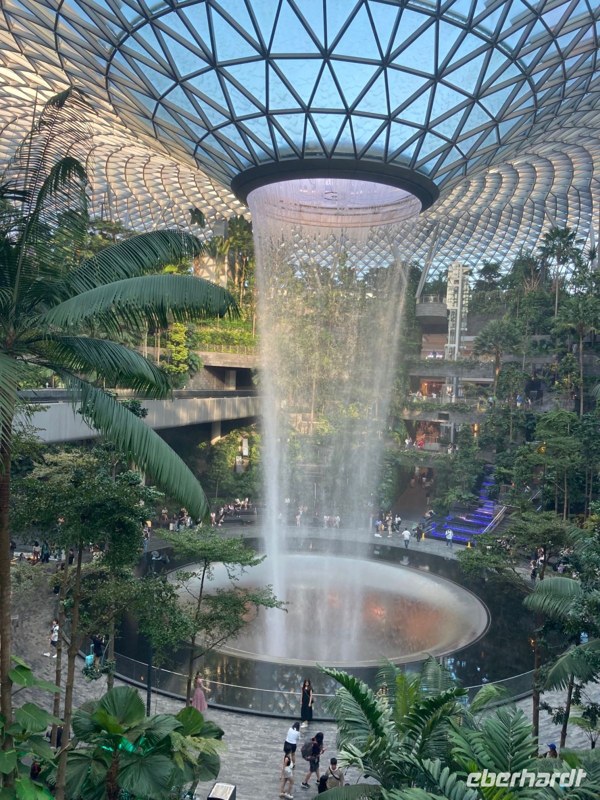 Und dann geht es schon wieder zurück zum extravaganten Flughafen, in dem wir zügig alle Formalitäten erledigen, sodass uns genug Zeit bleibt, um den beeindruckenden großen Indoor-Wasserfall "Jewel" zu besichtigen.