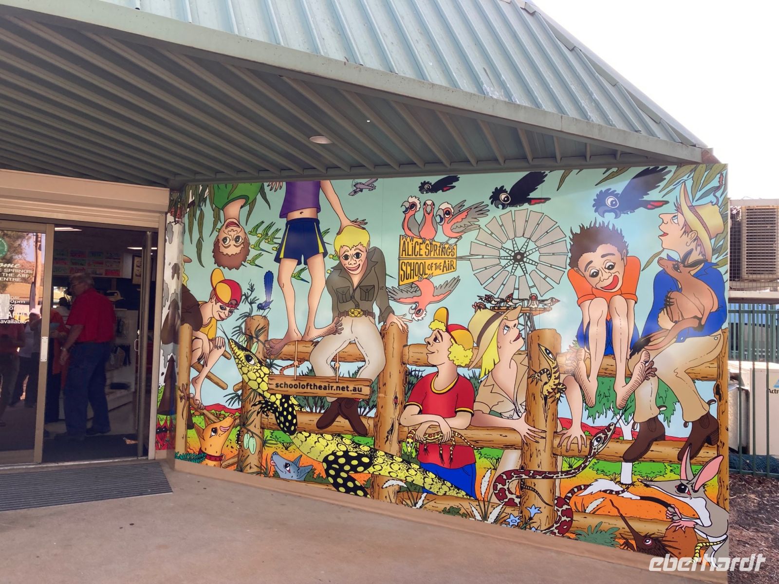 Am Vormittag geht die Erkundung von Alice Springs weiter. Mit unserem neuen Reiseleiter Martin, einem gemütlichen Österreicher, statten wir der School of the Air, dem "größten Klassenzimmer der Welt", einen Besuch ab. Die freundlichen Pädagoginnen zeichnen ein umfassendes Bild, wie der Unterricht der weitverstreuten Farmerkinder funktioniert, wie es zu den notwendigen Sozialkontakten kommt und wie die Prüfungen ablaufen.