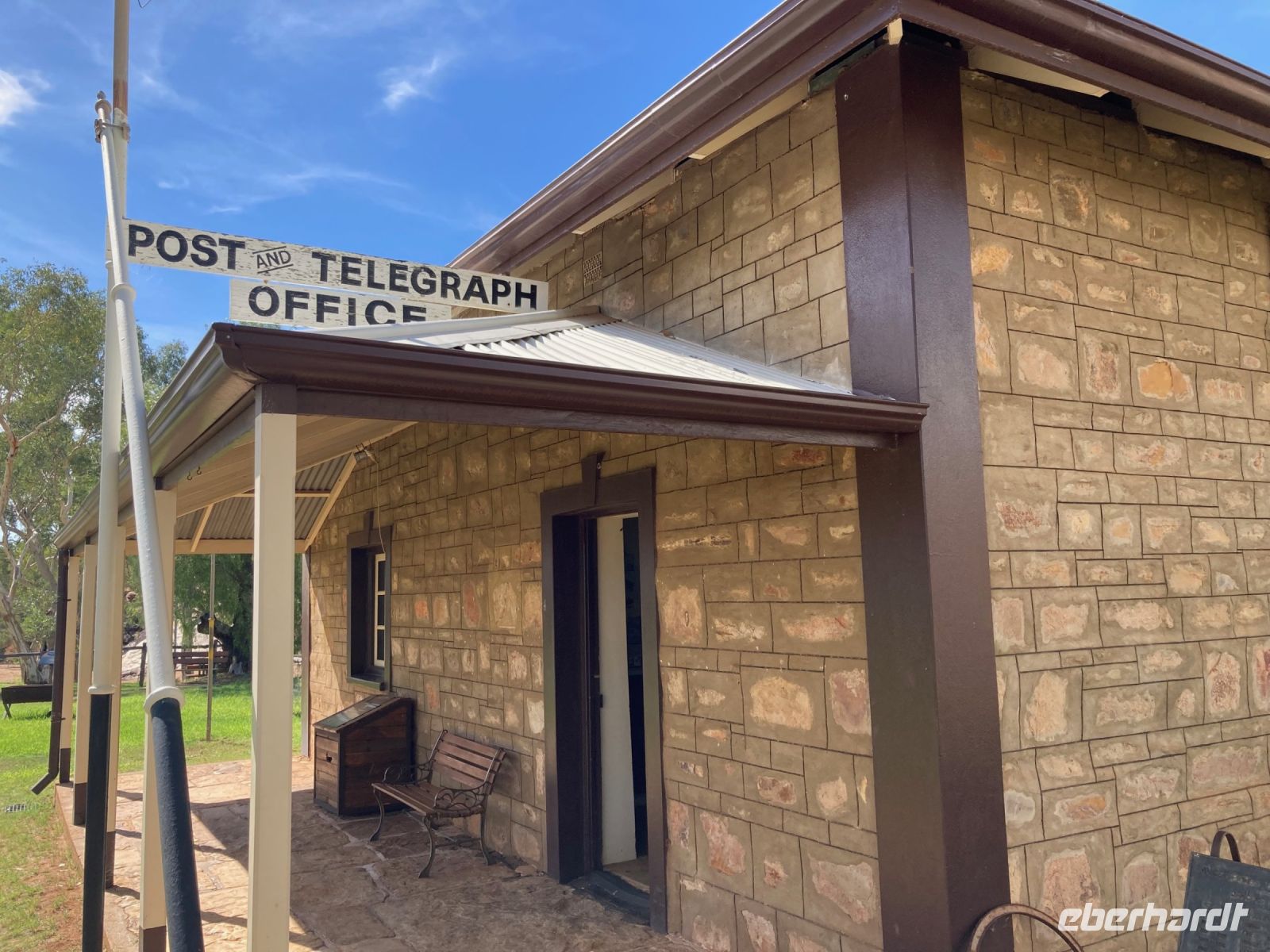 Zum Schluss führt uns Martin noch zur alten Telegaphenstation und bietet uns einen eindringlichen Geschichtsvortrag, der die telegrafische Anbindung des Outbacks ins weitentfernte London zum Thema hat.