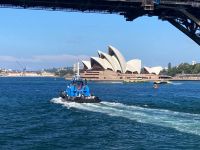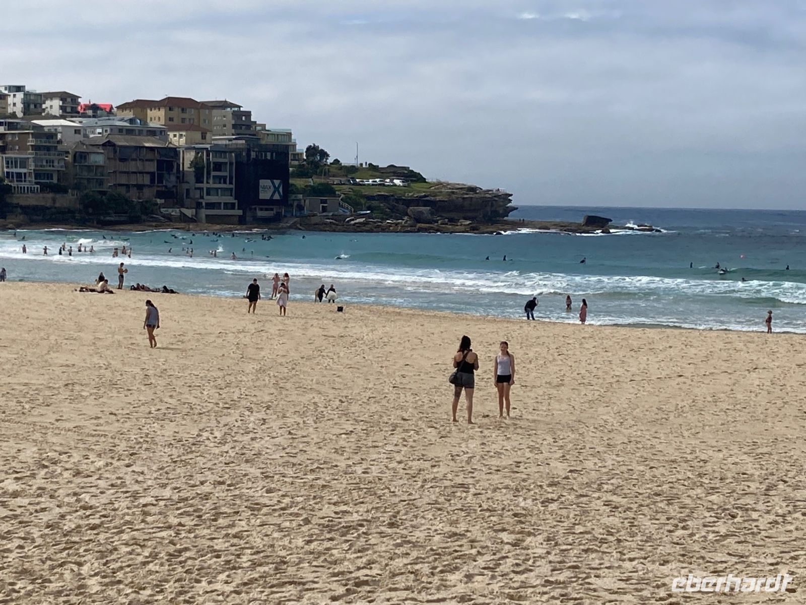 Am Vormittag steht die obligatorische Stadtrundfahrt an. Unter Silvias Führung kreisen wir zunächst um das berühmte Opernhaus. Einen ersten Blick auf dieses legendäre Bauwerk können wir von der Keimzelle der Stadt, den "Rocks", aus werfen, ehe wir durch den Botanischen Garten zum Mrs. Macquaries Point gelangen, von dem aus die Sicht noch eindrucksvoller ist. Danach geleitet uns Silvia durch die Vororte dieser wirklich wunderschönen Stadt mit ihren vielen Buchten und Häfen, bis wir dann die offene See erreichen und am vielbesuchten Bondi-Beach die Füße ins Wasser tauchen.