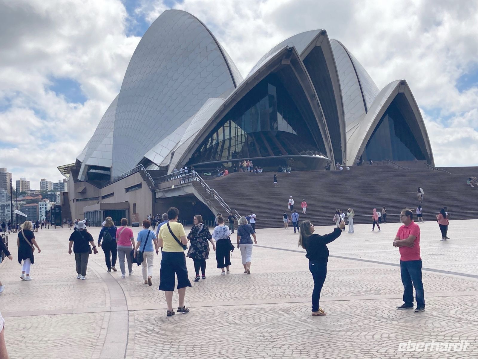 Und dann machen wir uns schon zu unserer nächsten Destination auf: Wir fahren zum putzigen Miniflughafen der Stadt, durchlaufen als inzwischen routinierte Vielflieger lässig die lästigen Checks und kommen am Nachmittag entspannt in Sydney an. Dort empfängt uns unsere neue Reiseleiterin Silvia, findet alsbald den richtigen Bus und bringt uns ins wieder sehr zentral gelegene Hotel (ein Hauptkriterium der EBERHARDT-Disponenten). Erste Erkundungsgänge ("ich muss die Oper sehen") und ein gutes Abendessen im Hotel beschließen für die meisten diesen Tag.