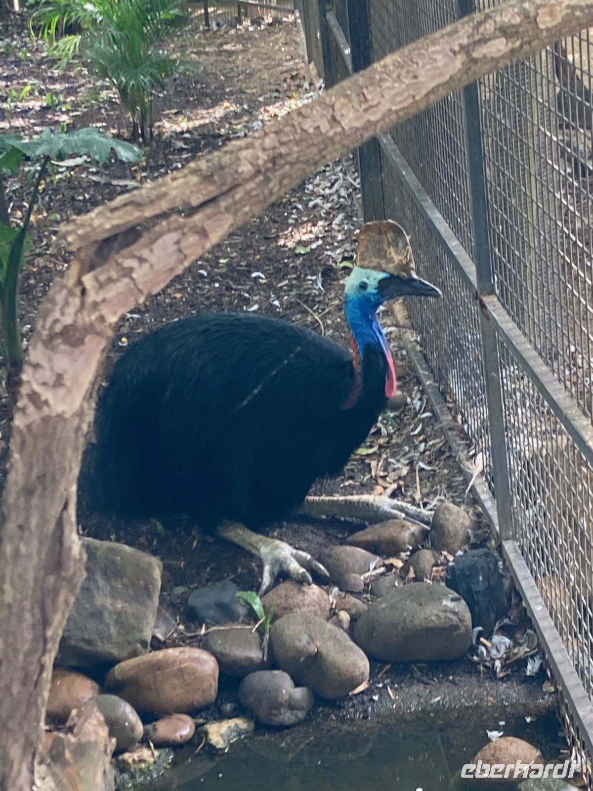 Auf dem Weg zurück machen wir halt am Featherdale Wildlife Park, einem kleinen Zoo, der nur australische Tiere beherbergt. Auf unserer bisherigen Reise sind uns meist nur exotische Vögel begegnet, stets herangezoomt und aufs Bild gebannt von unserer Foto-Queen. Nun haben wir die Gelegenheit, die doch sehr andersartigen endemischen Tiere aus nächster Nähe zu betrachten Von den putzigen Wallabies über den stoischen Helmkasuar bis hin zum etwas neurotischen Albino-Känguruh ist alles vertreten.