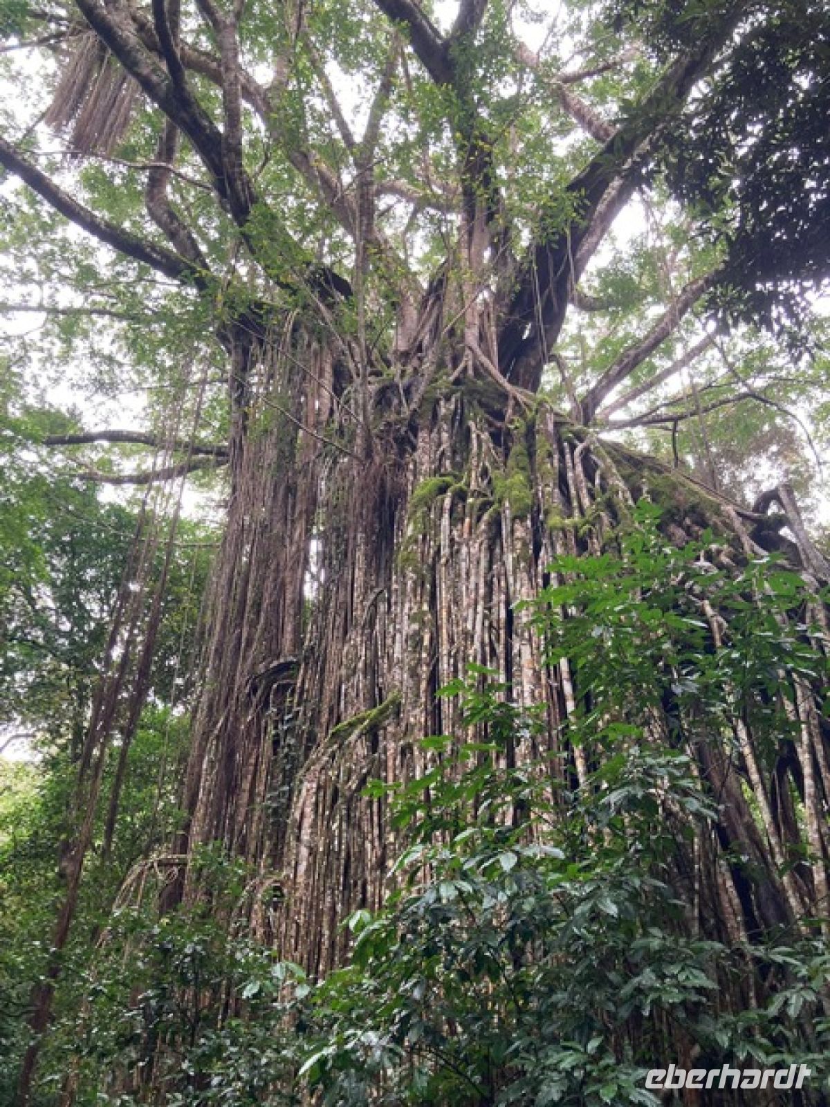 Da das extreme Wetter der letzten Wochen die spektakuläre Bahnstrecke zurück nach Cairns an vielen Stellen stark beschädigt hat, muss auch das Nachmittagsprogramm umgestaltet werden. So bietet die australische Companie eine Fahrt über die Tablelands hin zu einem monumentalen Würgefeigenbaum an, um dann auf dem Weg zurück noch an einem idyllischen Vulkansee halt zu machen.