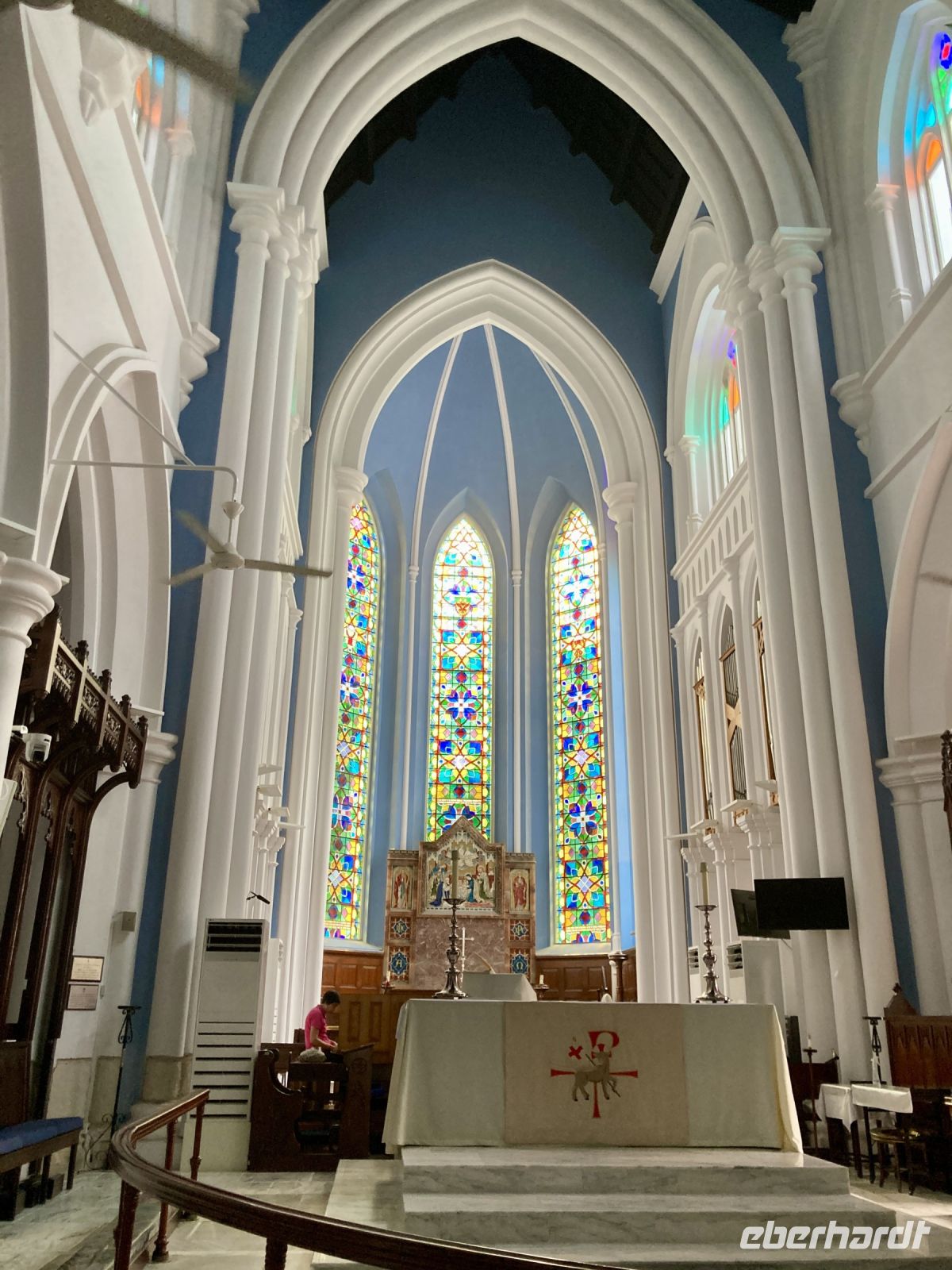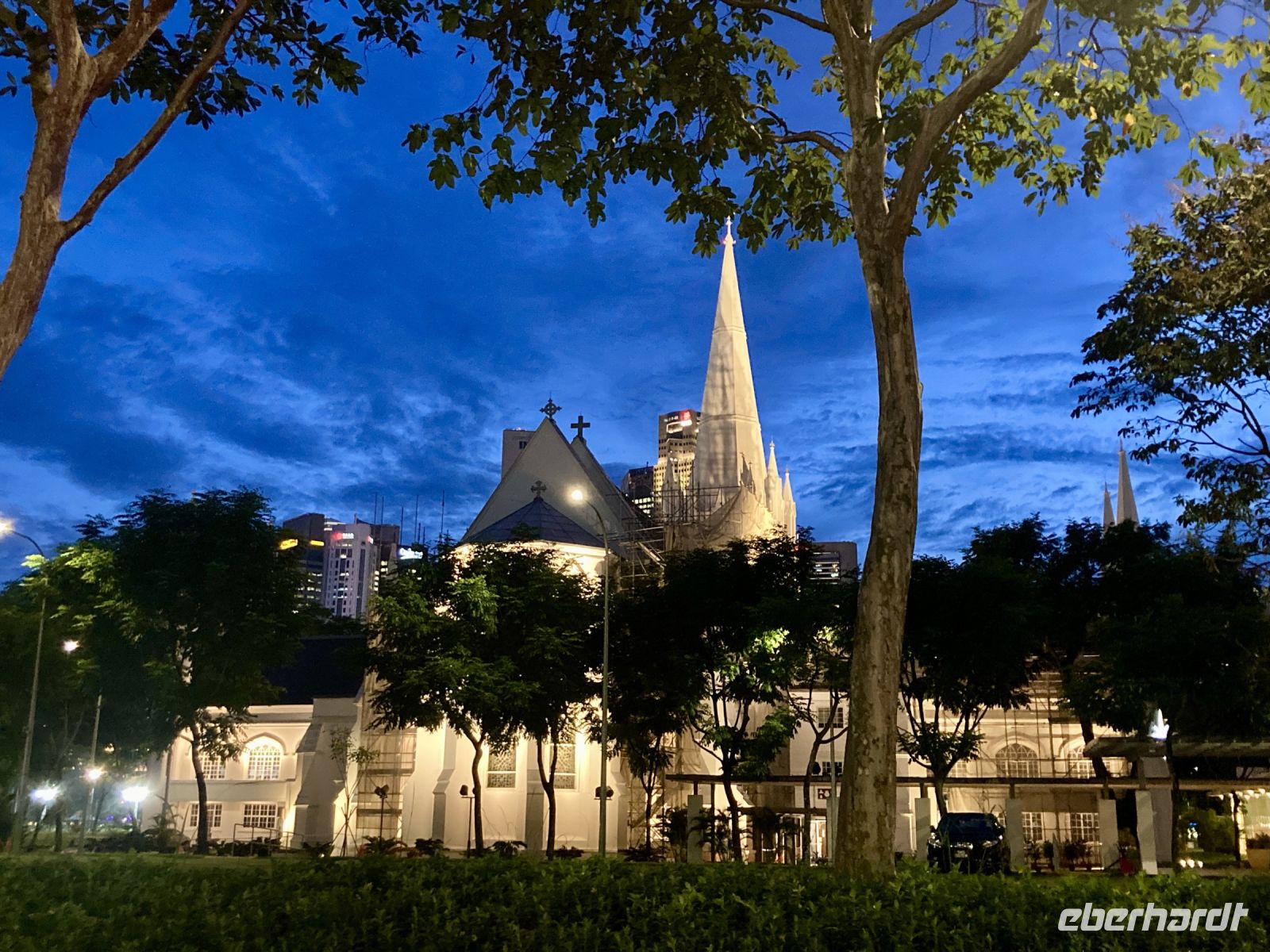 Wir fuhren am beeindruckenden Fullerton Hotel aus dem Jahr 1938 vorbei und konnten weitere berühmte Sehenswürdigkeiten wie das Marina Bay Sands, das Theater, das Asia Civilization Museum sowie das Parlamentsgebäude und den Court Yard bewundern. Nach dieser eindrucksvollen Tour schlenderten wir gemütlich zurück zum Hotel und machten dabei noch einen kurzen Abstecher zur St. Andrew’s Cathedral, die uns mit ihrer beeindruckenden Architektur begeisterte. Auch das berühmte Raffles Hotel durfte auf unserem Weg nicht fehlen.