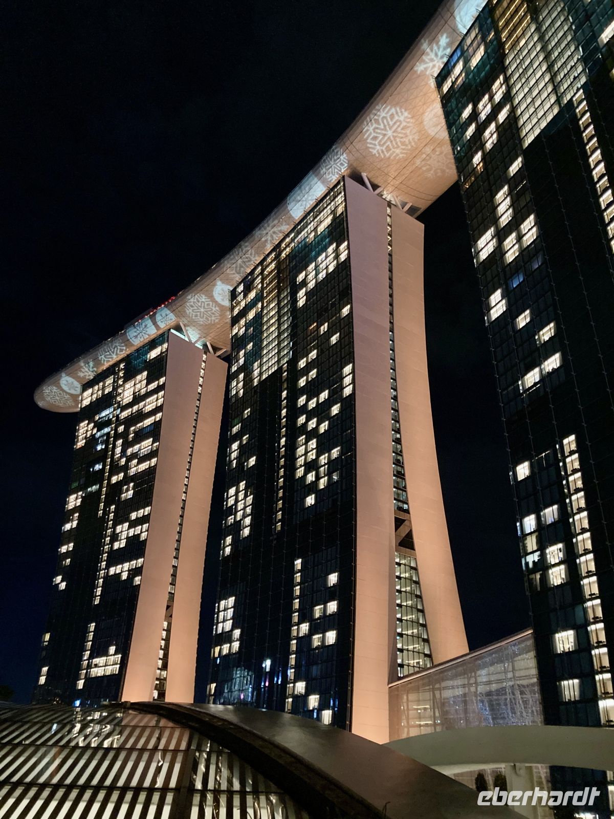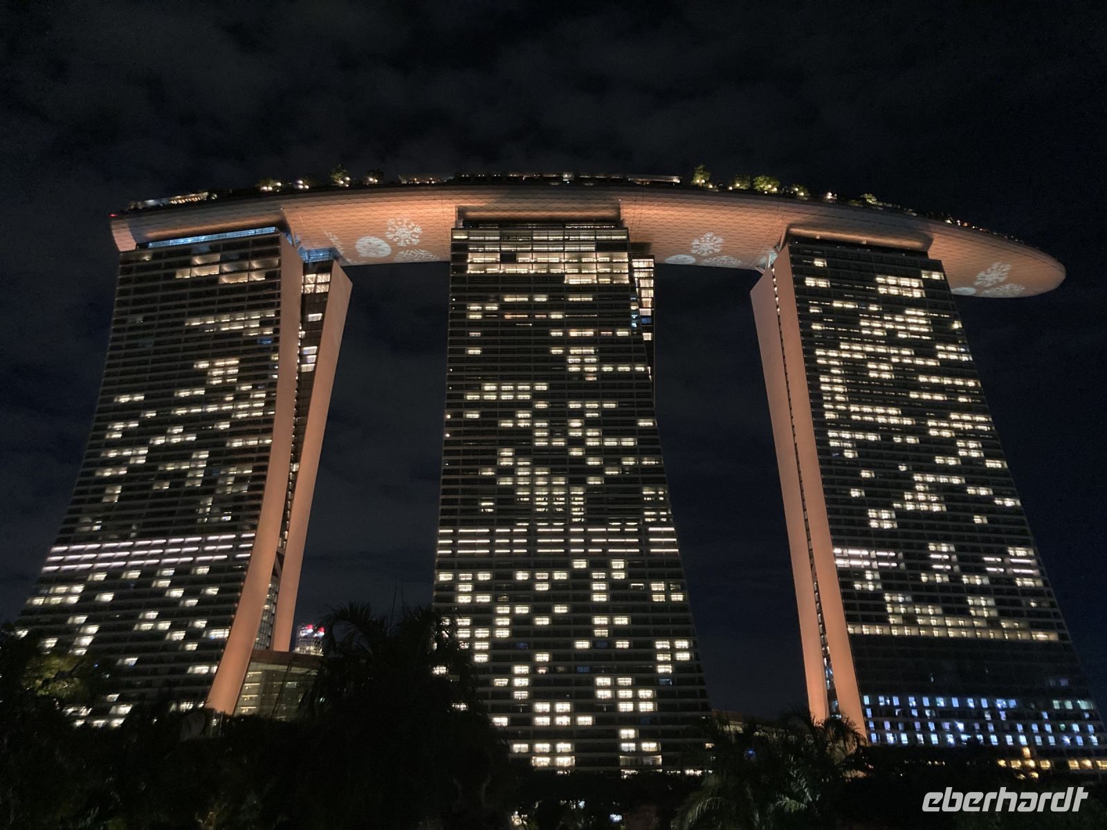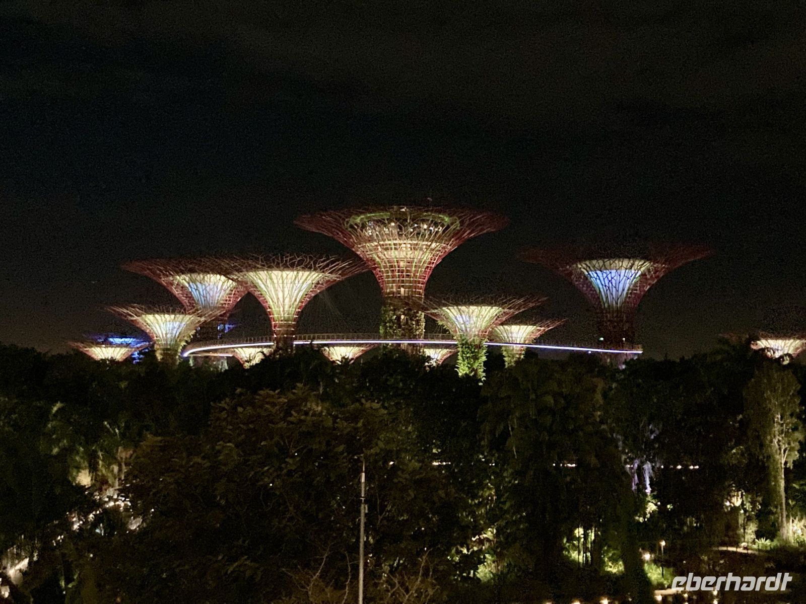 Am Abend machten wir uns auf den Weg zum Marina Bay Sands, um die berühmte Lichtershow zu sehen. Der Weg dorthin war aufgrund zahlreicher Baustellen etwas länger als geplant, doch wir schafften es trotzdem gerade noch rechtzeitig. Die Show war ein faszinierendes Spektakel aus Licht und Musik, das uns alle in Staunen versetzte. Anschließend betrachteten wir noch die Show bei den Gardens by the Bay und genossen die beeindruckende Atmosphäre dieses einzigartigen Ortes.