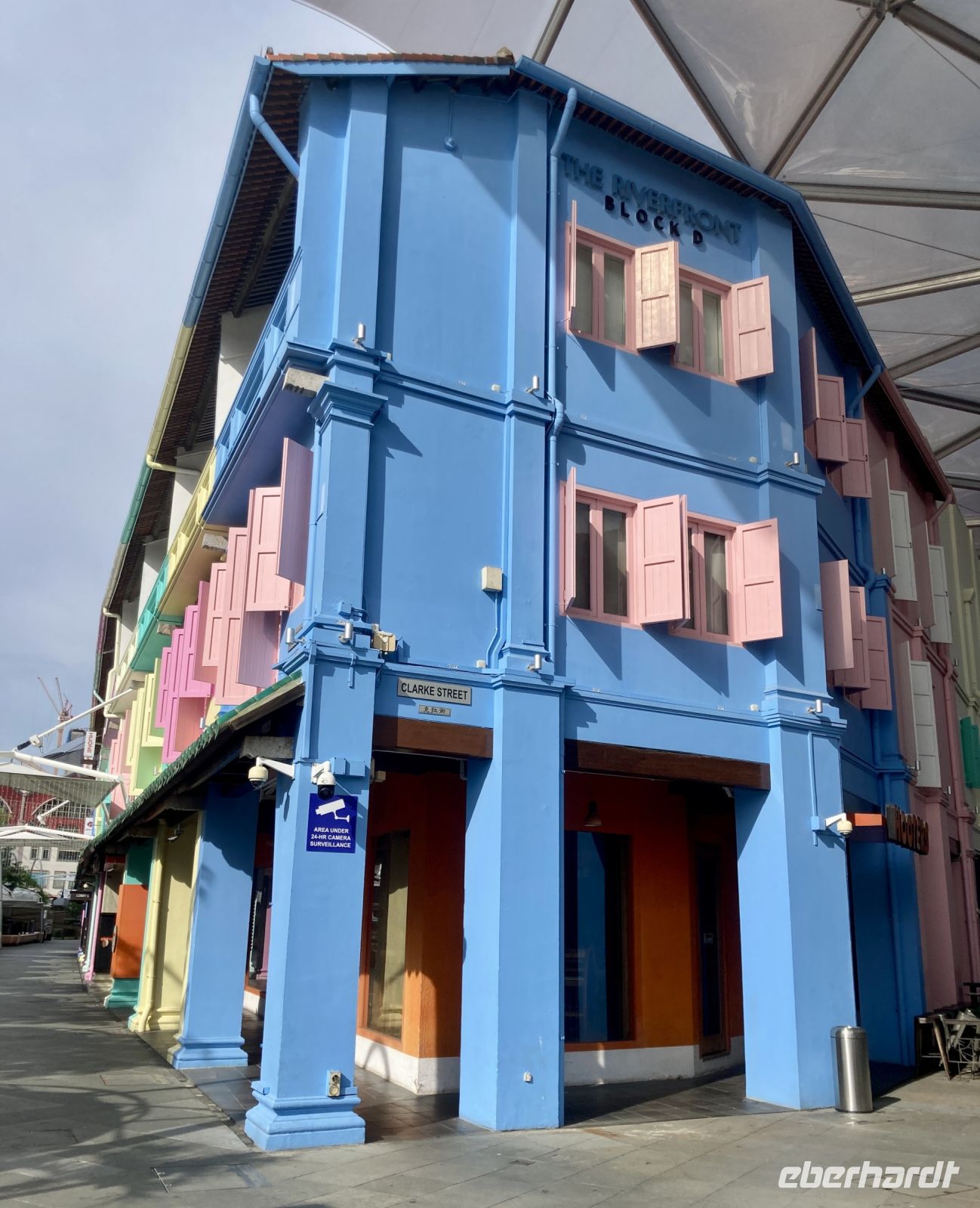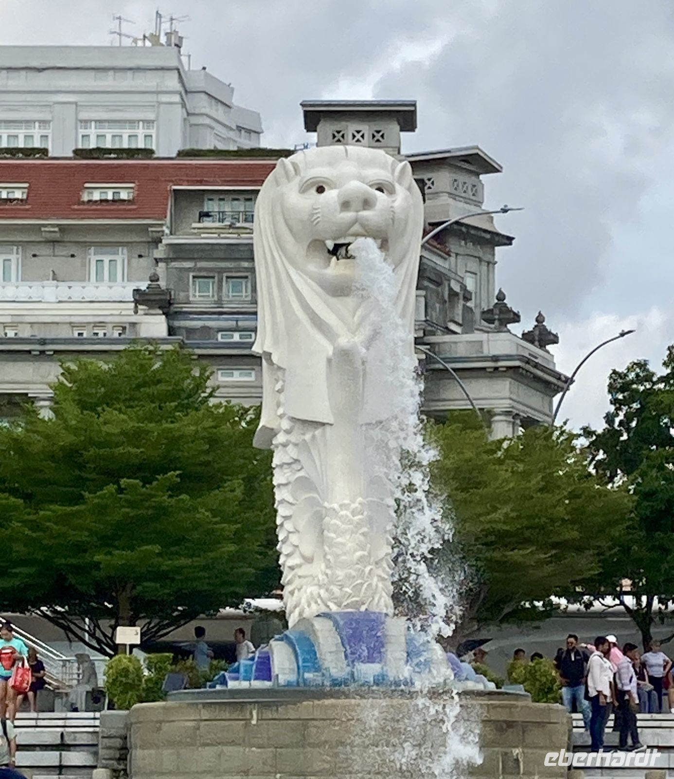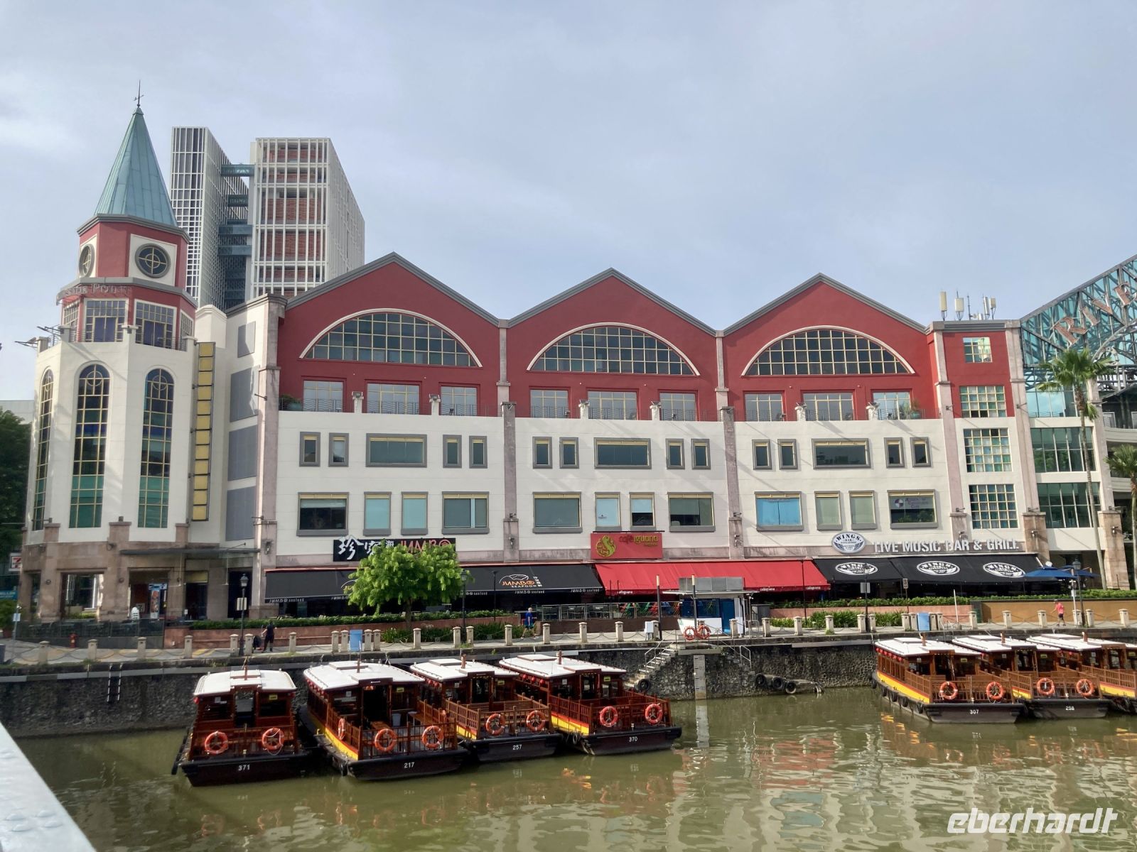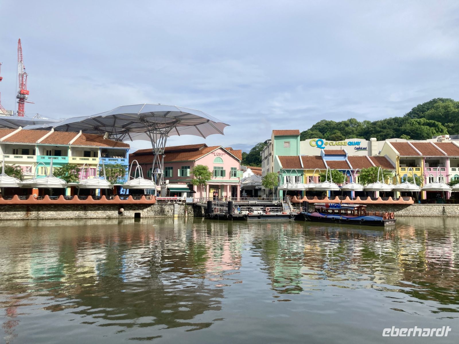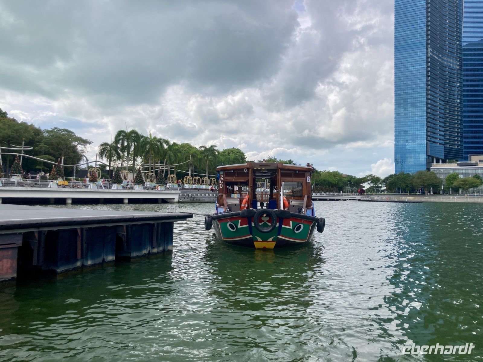 Am Vormittag nutzten wir die Gelegenheit, Singapur einmal vom Wasser aus zu erleben. Wir begaben uns nach Clarke Quay, wo wir auf ein Boot stiegen, das uns auf eine faszinierende Tour entlang des Singapore River führte. Während der Fahrt passierten wir das historische Riverside Village, und wir bemerkten, dass der Wasserstand an diesem Tag ungewöhnlich niedrig war. Weiter ging es vorbei am Boat Quay, der als erster Quay Singapurs bekannt ist und heute viele Restaurants und Bars beherbergt.