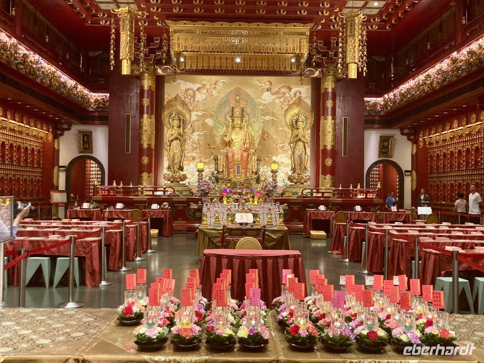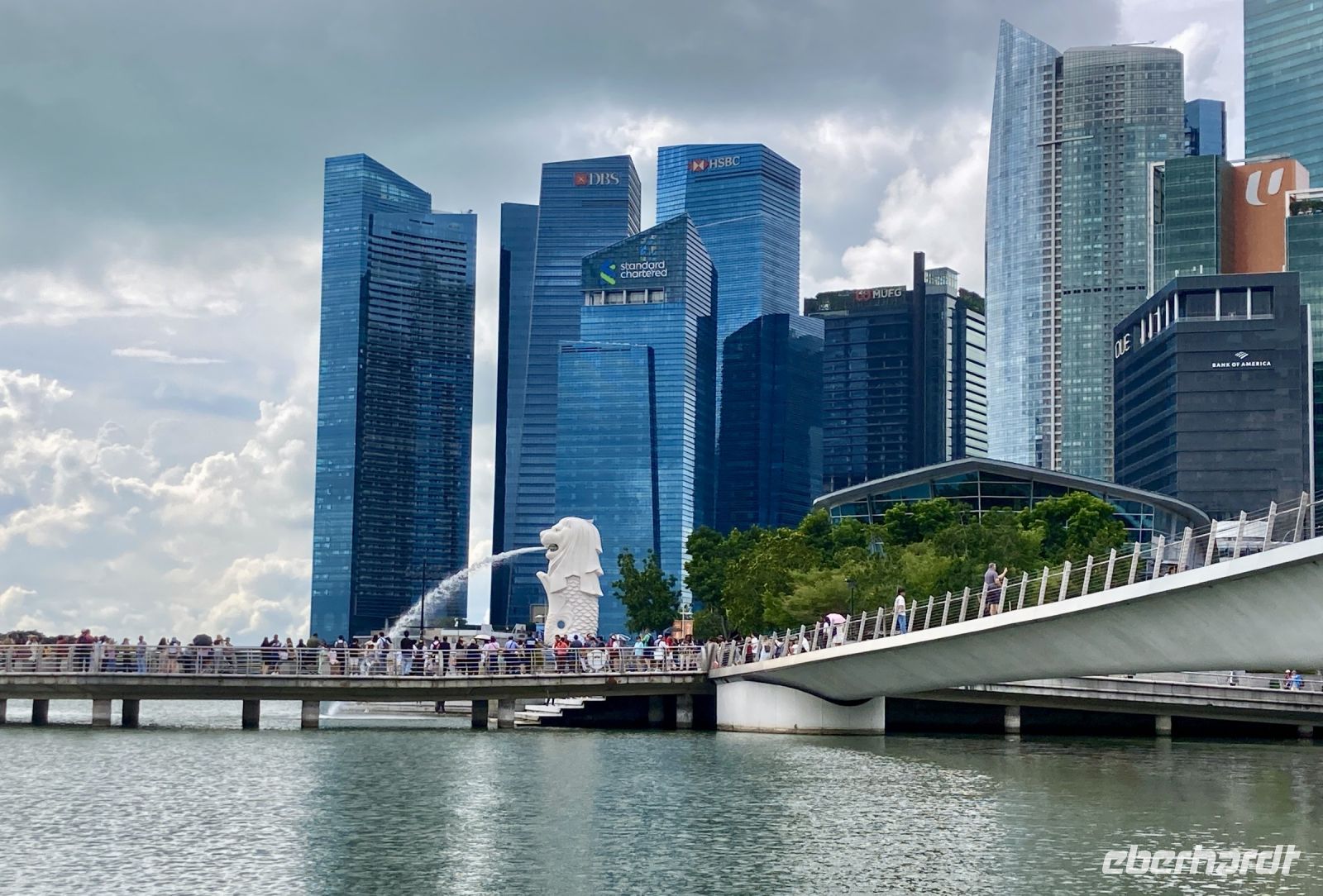 Nach einer kurzen Pause im Hotel, um uns frisch zu machen, starteten wir unsere Stadtrundfahrt. Der erste Stopp führte uns zum Merlion, dem Wahrzeichen Singapurs. Anschließend ging es hinauf auf die Aussichtsplattform des Marina Bay Sands, von der aus wir einen atemberaubenden Blick über die Stadt genießen konnten. Zum Mittagessen verschlug es uns in eine der typischen Garküchen in Chinatown. Danach besuchten wir einen der beeindruckenden Tempel in Chinatown, der uns mit seinen Farben und seiner Atmosphäre in den Bann zog.