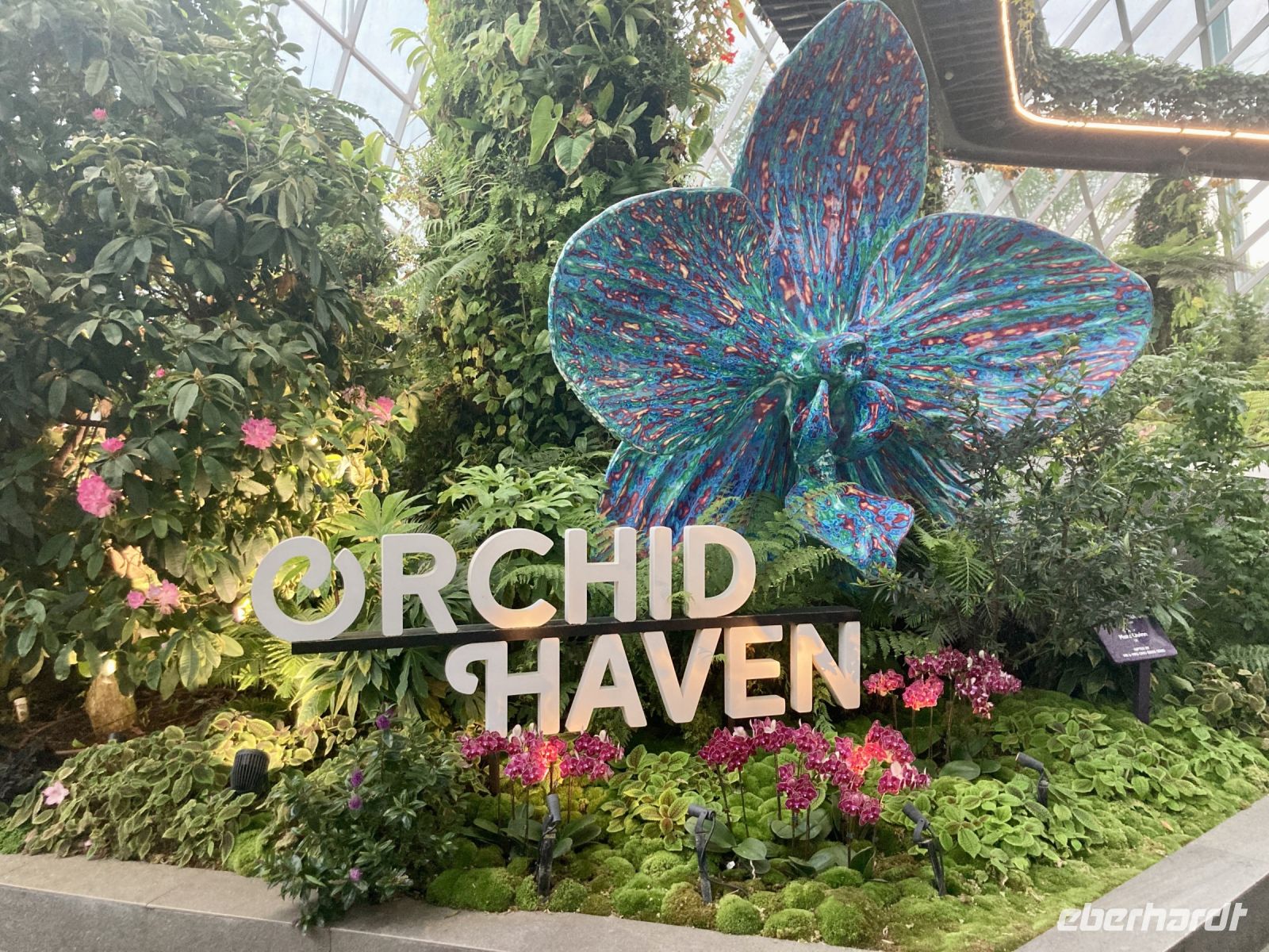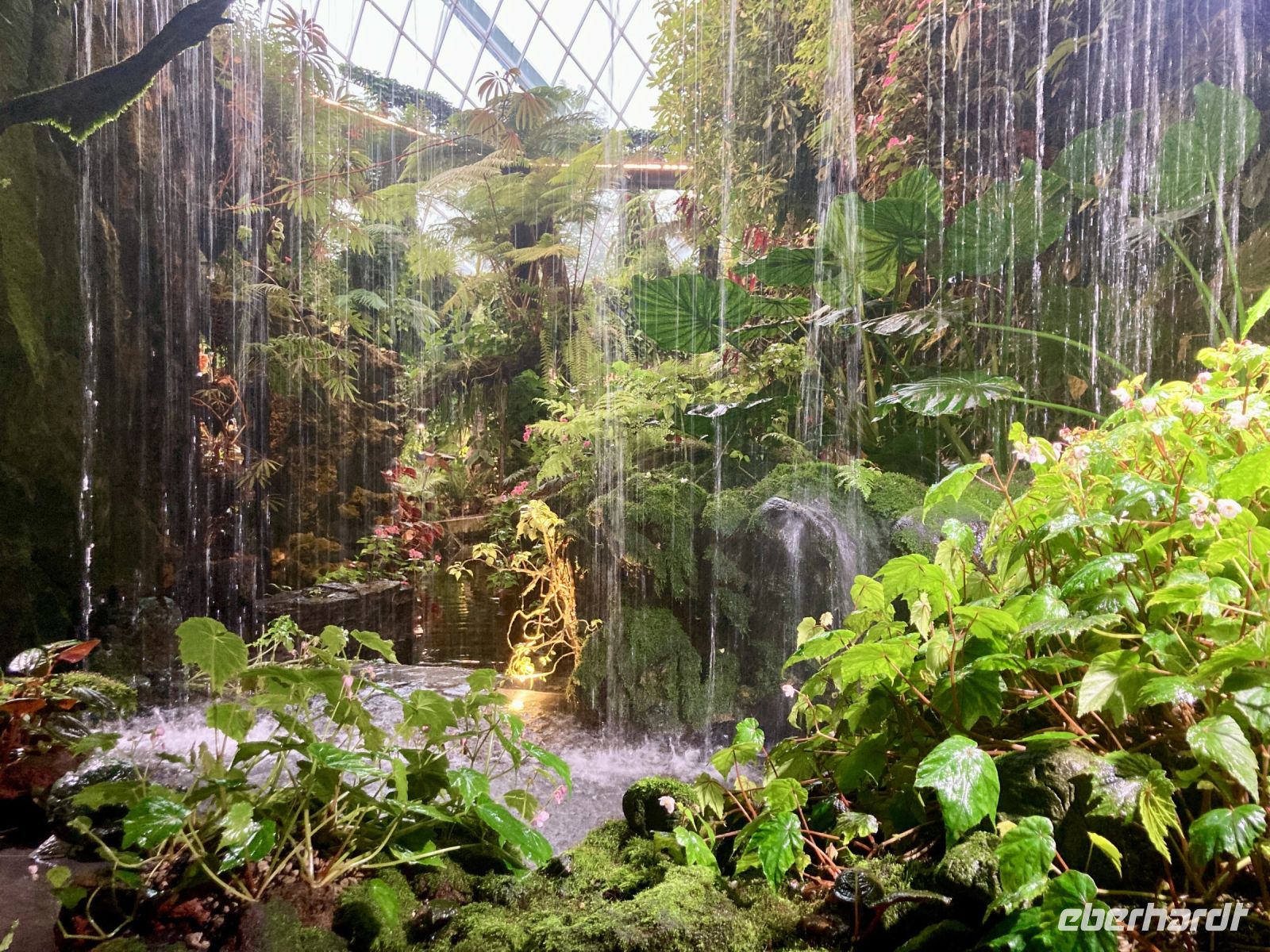 Leider zogen am Nachmittag dunkle Wolken auf, und ein plötzlicher heftiger Regenguss zwang uns dazu, unsere Pläne kurzfristig anzupassen. Anstatt den Orchideengarten zu besuchen, entschieden wir uns für den Cloud Forest, eine beeindruckende Indoor-Anlage, in der es ebenfalls eine große Vielfalt an Orchideen und anderen Pflanzen zu bewundern gab.