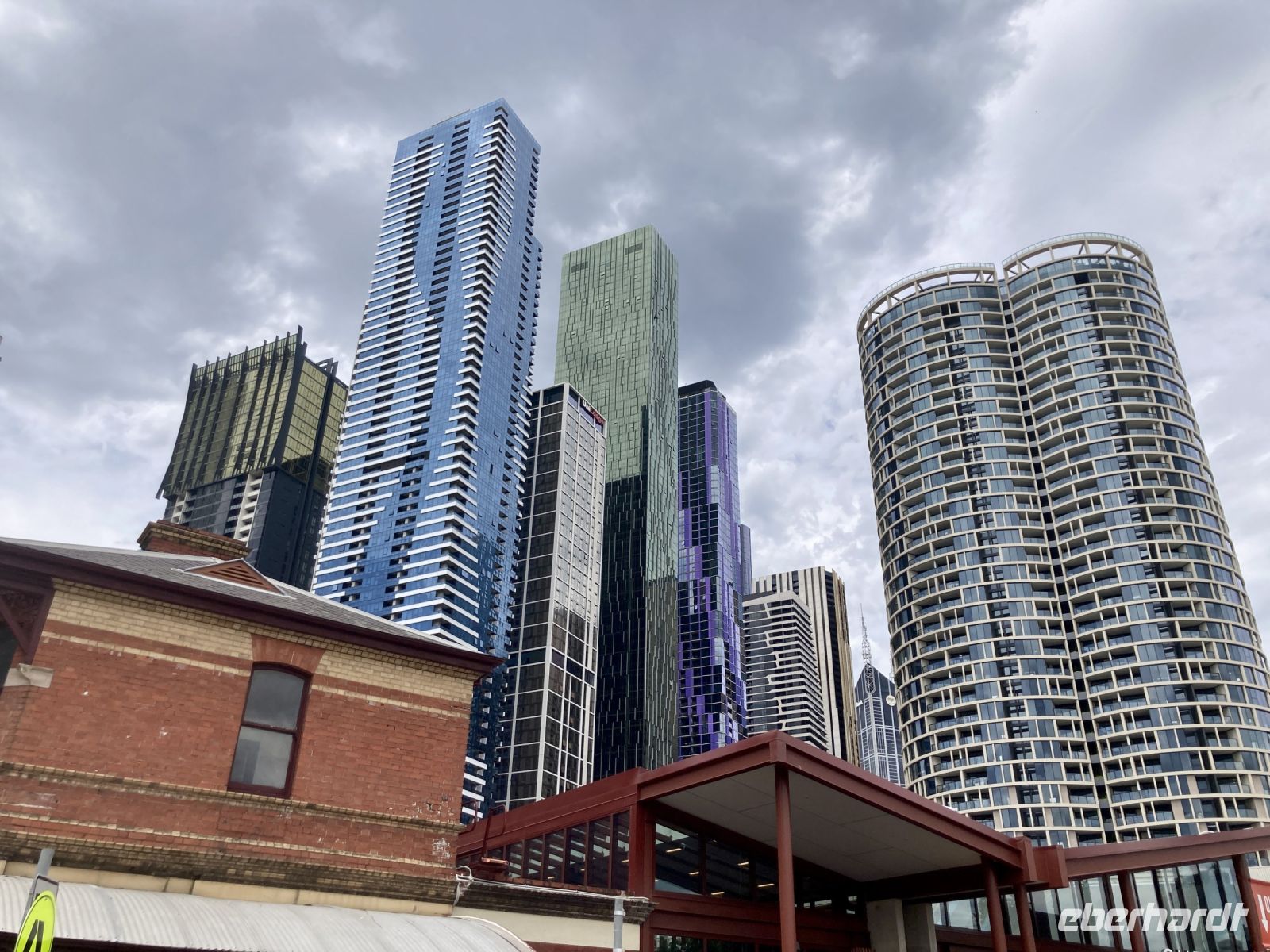 Unsere Stadtrundfahrt startete mit einem Besuch des berühmten Queen Victoria Markts. Dieser historische Markt ist ein wahres Paradies für Feinschmecker und bietet eine Vielzahl an lokalen Speisen, Getränken und frischen Produkten. Wir hatten etwas Zeit, um den Markt zu erkunden und die lebhafte Atmosphäre zu genießen. Danach ging es weiter durch die Stadt, wo wir die beeindruckenden Häuser im viktorianischen Stil bewundern konnten, die ein Zeugnis der reichen Geschichte Melbournes sind.