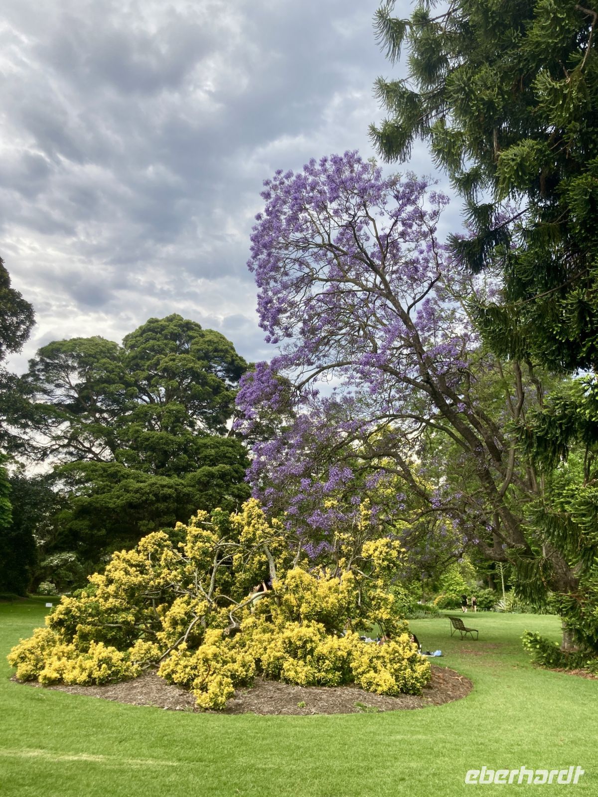 Die Blue Mountains, befinden sich etwa zwei Stunden westlich von Sydney und sind für ihre atemberaubende Natur bekannt. Diese Gebirgskette erstreckt sich über rund 11.000 Quadratkilometer und zeichnet sich durch steile Klippen, dichte Regenwälder, tief eingeschnittene Täler und markante Felsenformationen aus. Die charakteristische blaue Farbe der Blue Mountains entsteht durch das Zusammenspiel von Licht und Eukalyptusdämpfen. Eukalyptusbäume, die in der Region weit verbreitet sind, setzen ätherische Öle frei, die in der Luft verdampfen. Diese Öle reflektieren das Sonnenlicht und streuen es auf eine Weise, die das Licht besonders in den blauen Spektralbereich lenkt. Dies führt zu dem typischen blauen Schimmer, den die Berge bei bestimmten Lichtverhältnissen haben. Zusätzlich spielt die geographische Lage der Blue Mountains eine Rolle: Durch die vielen Täler und Höhenunterschiede wird das Licht noch verstärkt und erzeugt eine mystische, blaue Atmosphäre. Es gibt also keine „echte“ blaue Farbe in den Bergen, sondern sie entsteht durch optische Effekte, die mit der speziellen Zusammensetzung der Luft und den Eukalyptusbäumen in Verbindung stehen?.