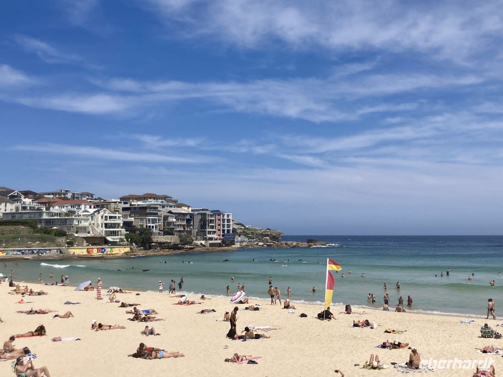 Sydney ist auch für seine zahlreichen Nationalparks und über 100 Strände bekannt, die der Stadt ihren einzigartigen Charme verleihen. Unsere erste Station war Double Bay, ein exklusives Wohnviertel, wo wir Fotostopps einlegten, um die beeindruckende Einfahrt des Hafens und die atemberaubende Skyline von Sydney zu bewundern. Weiter ging es dann zum berühmten Bondi Beach, einem der bekanntesten Strände der Stadt. Der Bondi Beach ist etwa 1 Kilometer lang und bietet bei schönstem Wetter einen herrlichen Blick auf den Ozean, den wir während unserer Mittagspause genießen konnten. Es war der perfekte Ort, um das tolle Wetter zu erleben und die entspannte Atmosphäre zu spüren.