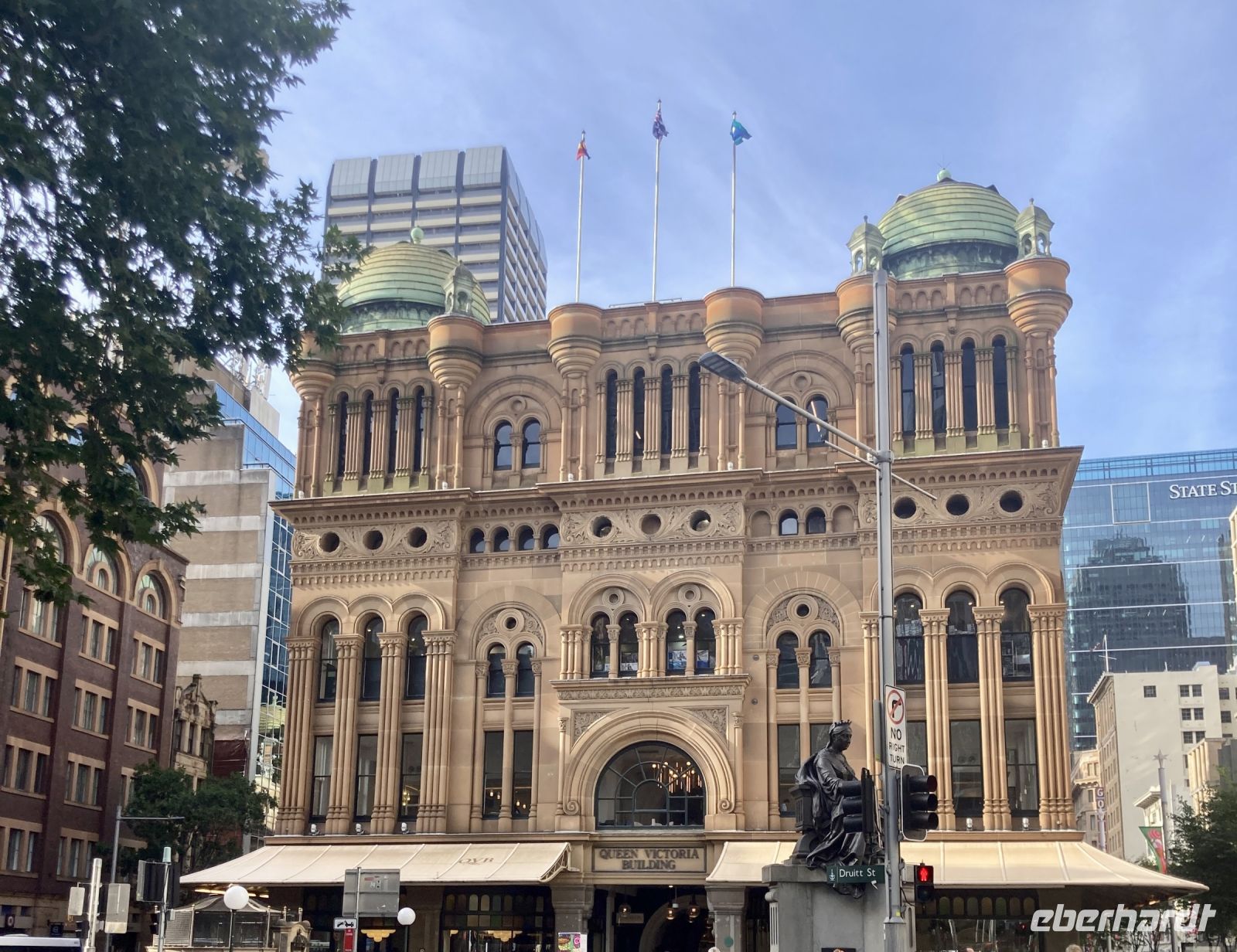 Ein weiteres Highlight des Tages war Mrs. Macquarie’s Point, ein berühmter Aussichtspunkt, der einen fantastischen Blick auf den Hafen und das Opernhaus bietet. Nach dieser beeindruckenden Aussicht fuhren wir weiter und erreichten am Nachmittag unser Hotel. Wir hatten noch genug Zeit, um den Sydney Tower zu besuchen, den höchsten Punkt der Stadt. Auf dem Weg dorthin gingen wir durch das historische Queen Victoria Building, ein wunderschön restauriertes Einkaufszentrum, das mit seiner Architektur und Geschichte beeindruckt. Vom Sydney Tower aus, der 250 Meter hoch ist, hatten wir einen atemberaubenden Panoramablick auf die gesamte Stadt und den Hafen.