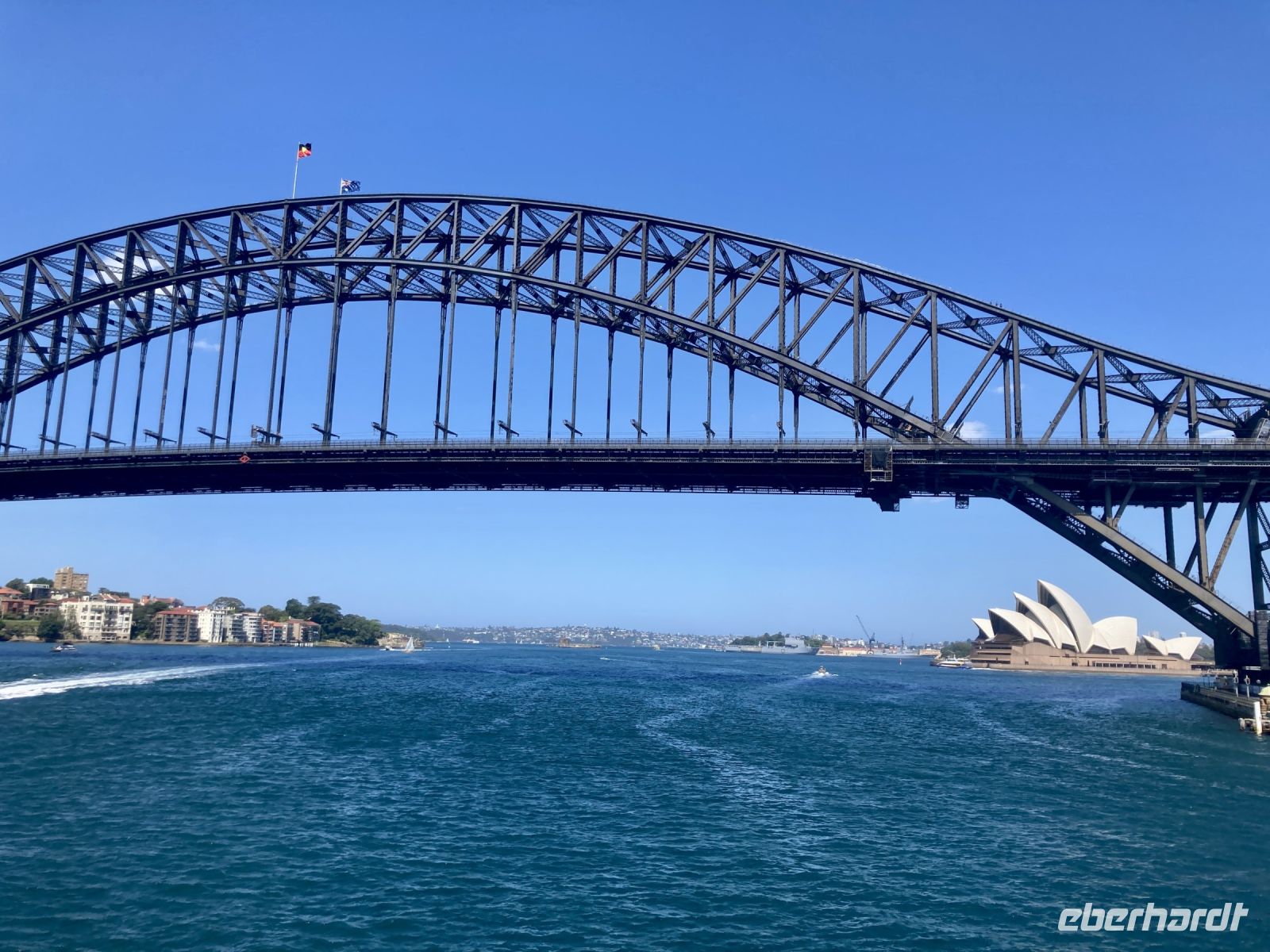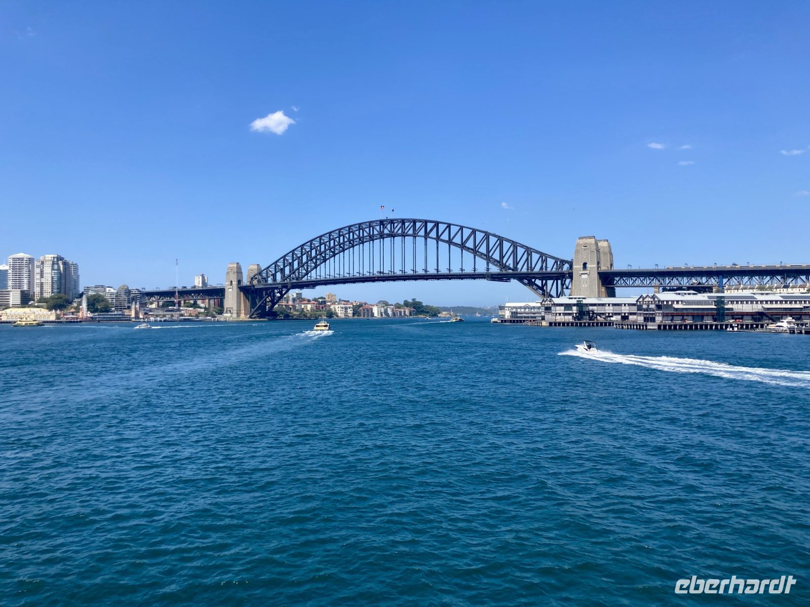 Ein besonderes Highlight des Tages war die Hafenrundfahrt, die uns erwartete. Vom Wasser aus konnten wir Sydney aus einer ganz anderen Perspektive erleben. Der Blick auf das Opernhaus, die Sydney Harbour Bridge und die Skyline der Stadt war einfach atemberaubend. Während wir über das Wasser glitten, genossen wir die frische Brise und die beeindruckende Aussicht auf den Hafen, der zu den schönsten der Welt gehört.