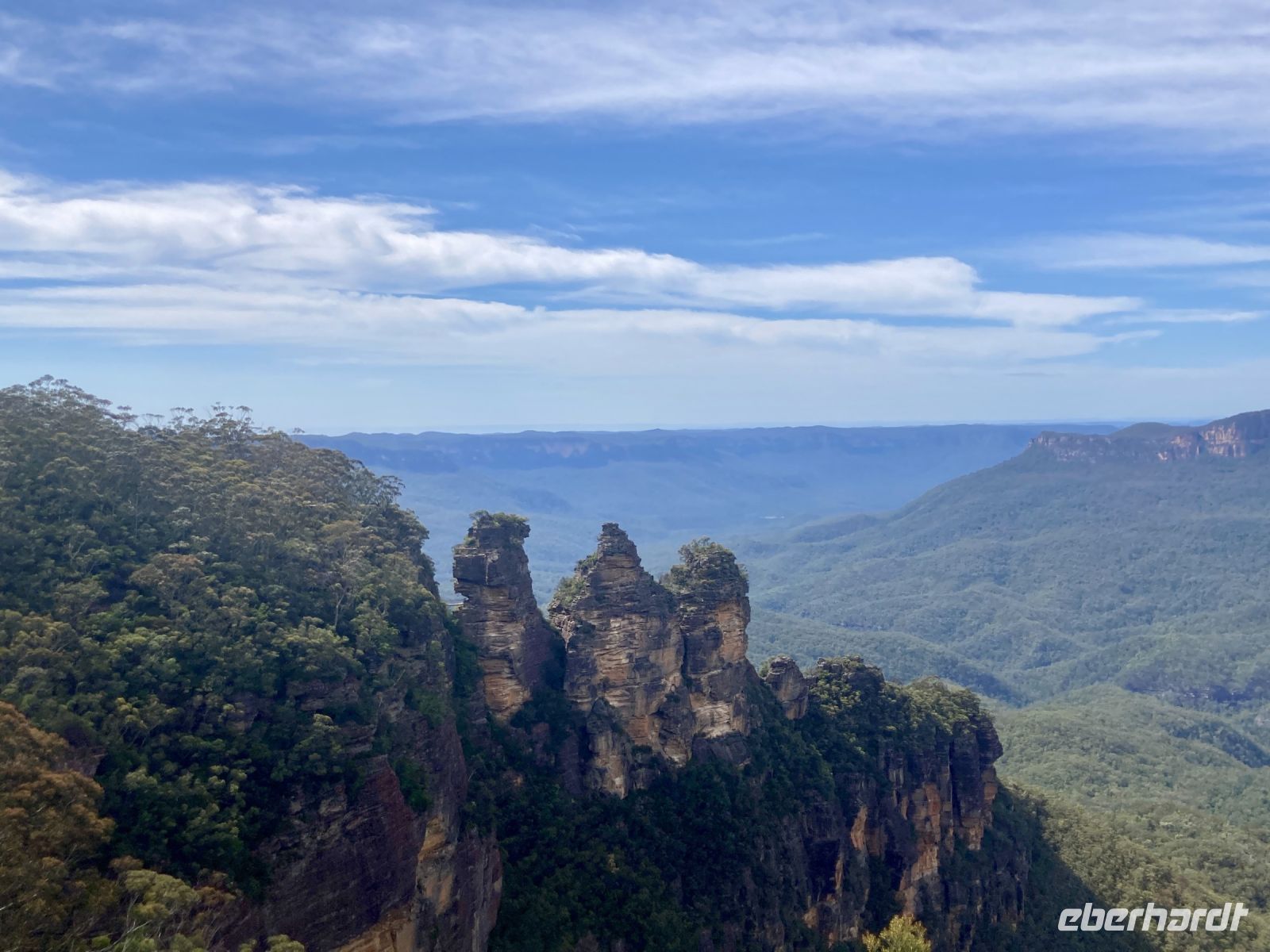 An diesem sonnigen Tag machten wir uns auf den Weg zu den Blue Mountains, einem UNESCO-Weltkulturerbe, das für seine beeindruckenden Naturwunder und malerischen Ausblicke bekannt ist. Die Blue Mountains erstrecken sich westlich von Sydney und bieten spektakuläre Felsenlandschaften, tiefe Täler und üppige Wälder. Ein Highlight der Region sind die „Three Sisters“, eine markante Felsenformation bei Katoomba, die aus der Legende der Aboriginals stammt.