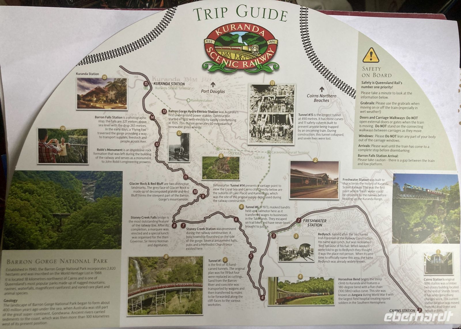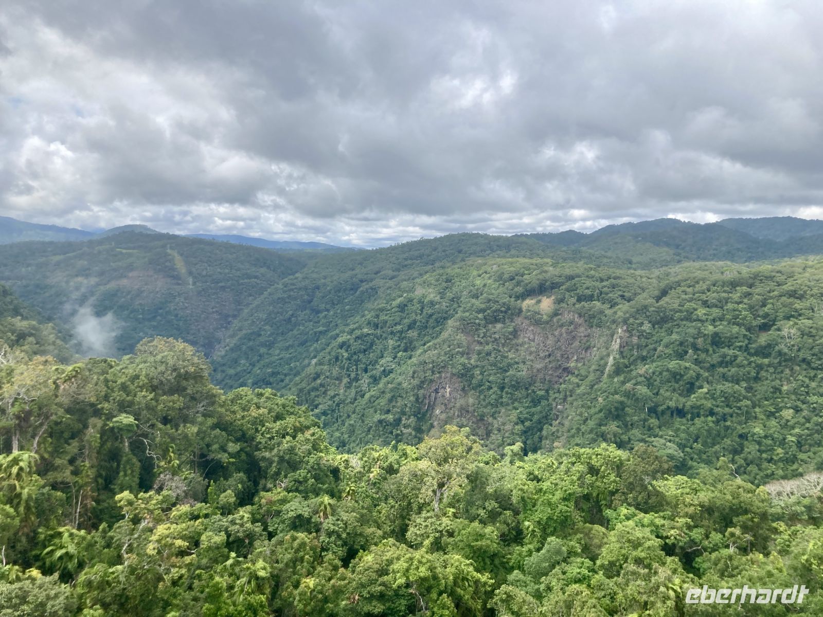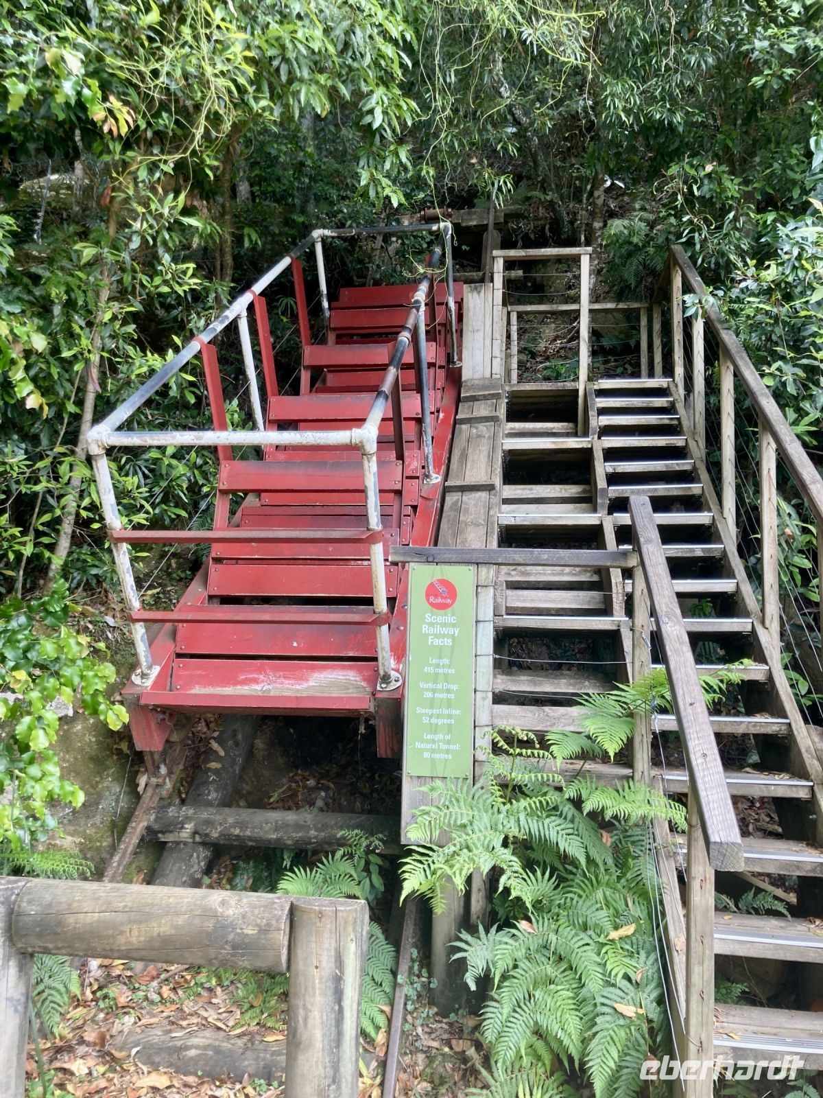 Der Rückweg nach Cairns führte uns mit dem Scenic Railway, einer malerischen Zugfahrt, die uns durch die tropische Landschaft und entlang der Barron Falls brachte. Die Scenic Railway ist eine historische Bahnstrecke, die 1891 eröffnet wurde und heute eine der bekanntesten Touristenattraktionen der Region ist. Während der Fahrt genossen wir spektakuläre Ausblicke auf die Berge, den Regenwald und die Wasserfälle.
