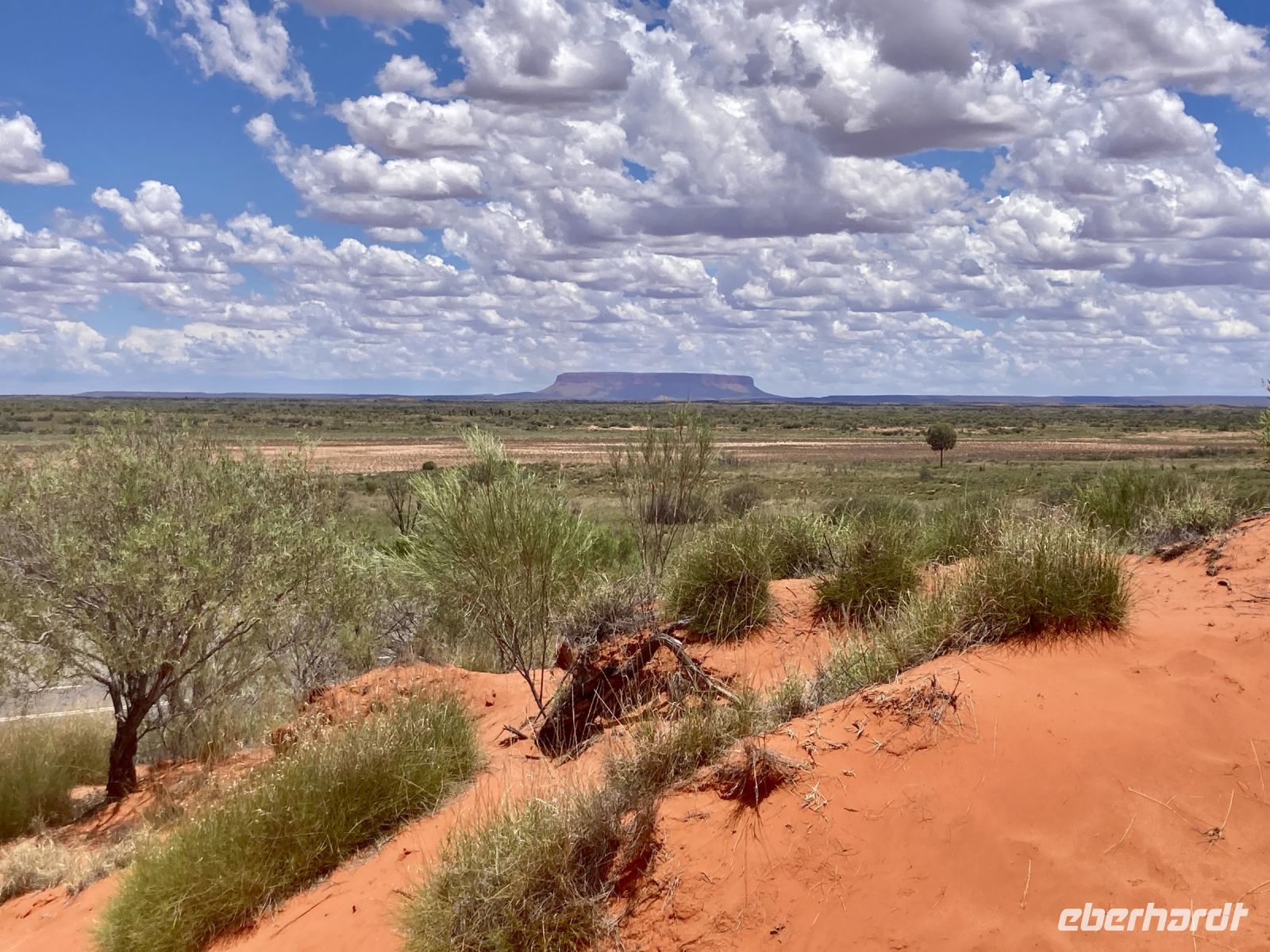 Nach dem Besuch des Anzac Hill fuhren wir weiter durch das Outback, beeindruckt von der endlosen Weite und der einzigartigen Landschaft. Eve, unsere Reiseleiterin, gab uns interessante Einblicke in das Leben hier. Zum Beispiel leben im Outback rund 400 verschiedene Reptilienarten, und es ist äußerst selten, Dingos in freier Wildbahn zu sehen – wir hatten das Glück, zwei dieser Tiere zu sichten. Die Region ist bekannt für ihre 326 Sonnentage im Jahr, was sie zu einem besonders sonnigen Teil Australiens macht. Zudem erfuhren wir, dass 1865 die ersten Kamele ins Land eingeführt wurden, was es den Entdeckern ermöglichte, das Zentrum des Landes ab 1872 besser zu erkunden?.