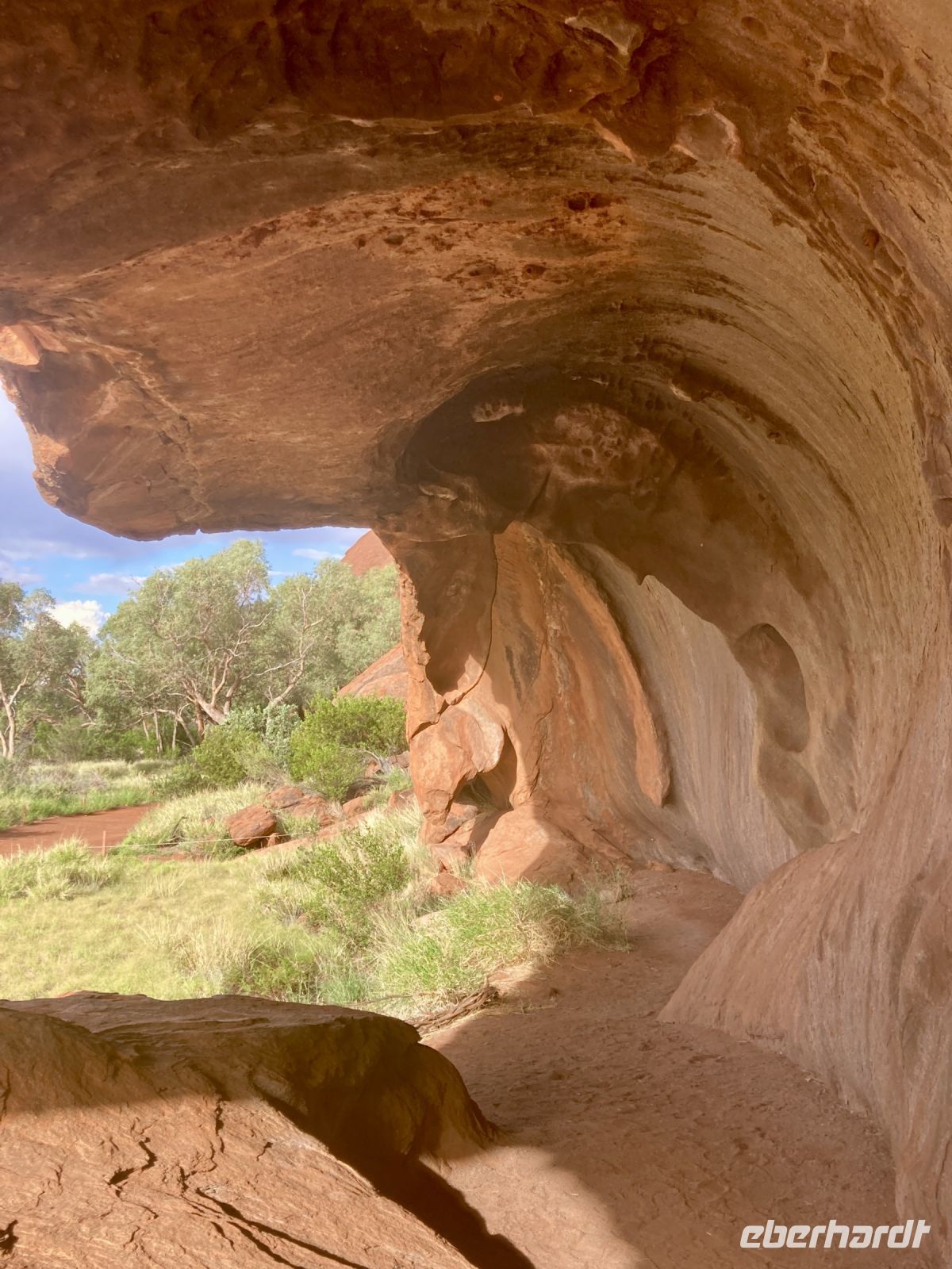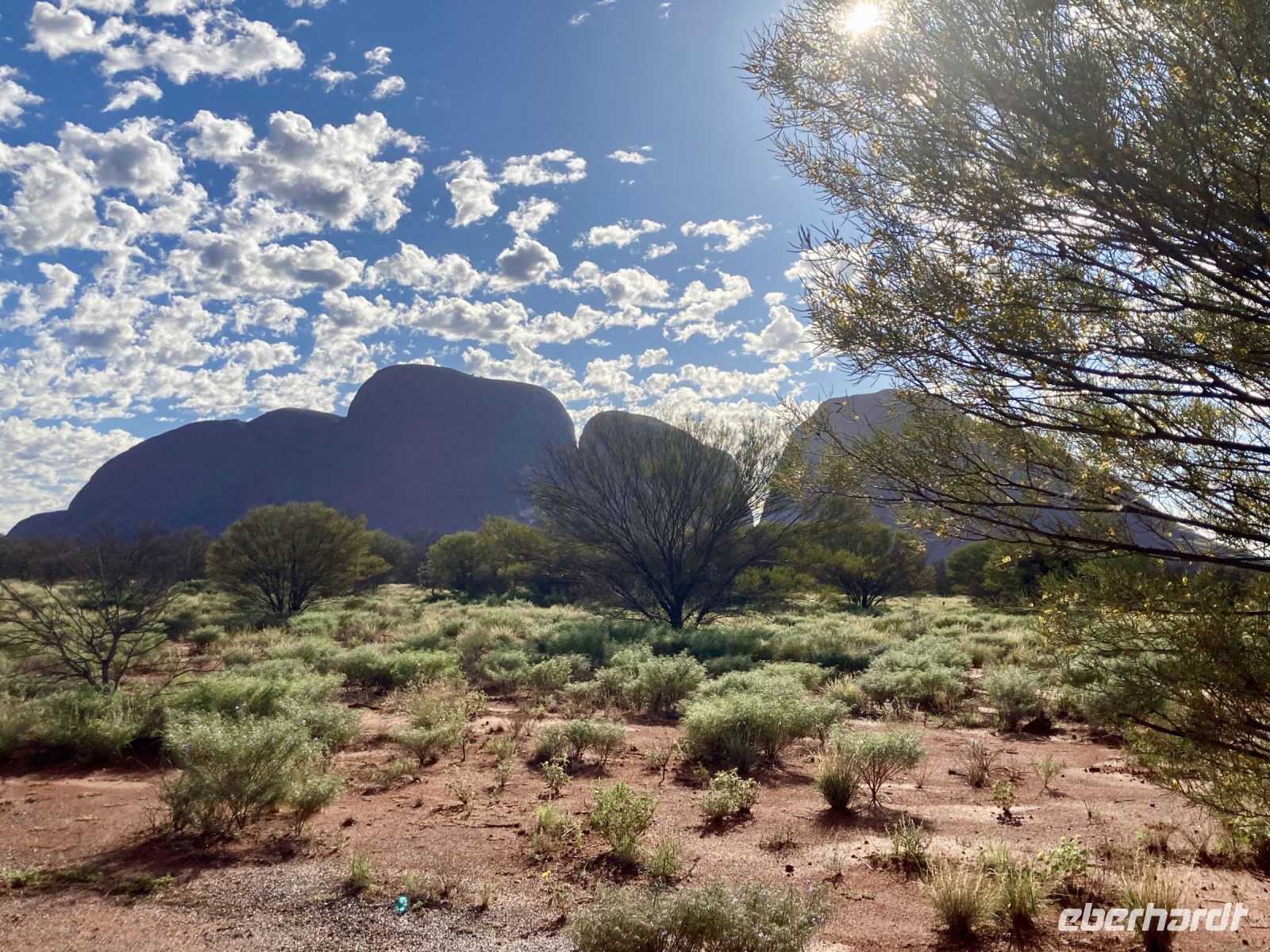 An diesem Morgen begann der Tag früh, denn wir wollten den atemberaubenden Sonnenaufgang am Uluru erleben. Das Farbenspiel, das der Felsen in den ersten Lichtstrahlen des Tages zeigte, war wirklich einzigartig und beeindruckend. Nach dem Sonnenaufgang machten wir uns auf, um durch die Walpa Gorge zu wandern, eine der vielen beeindruckenden Schluchten in der Umgebung des Uluru. Diese Wanderung bot uns noch einmal die Möglichkeit, die Schönheit des Outbacks hautnah zu erleben.