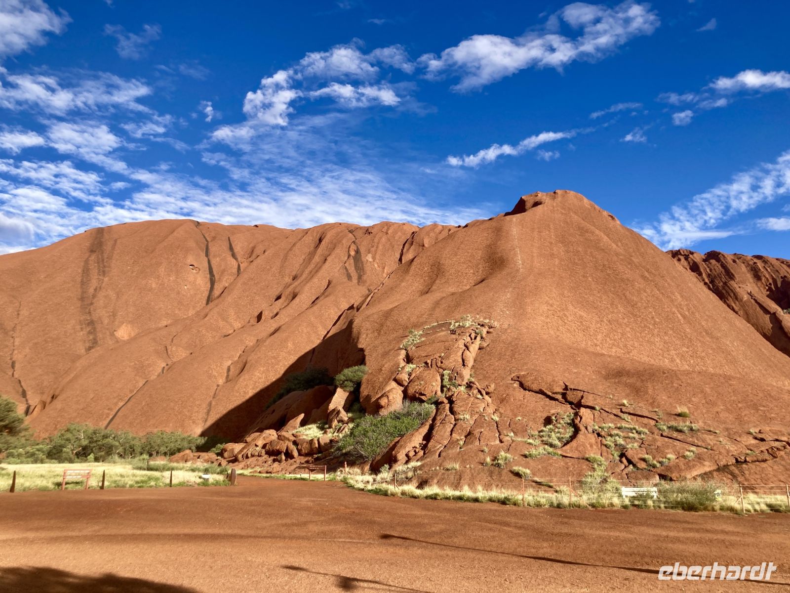 Auf dem Weg zum Uluru, dem heiligen Felsen der Anangu Aboriginals, machten wir Halt im Kulturzentrum, wo uns die Geschichte und Bedeutung dieses einzigartigen Ortes nähergebracht wurde. Der Uluru, der mit seinen markanten schwarzen Streifen aus oxidiertem Eisen bedeckt ist, ist ein Wahrzeichen der Aboriginals und ein atemberaubendes Naturwunder?.