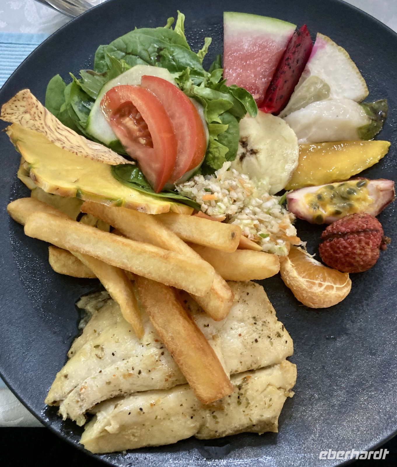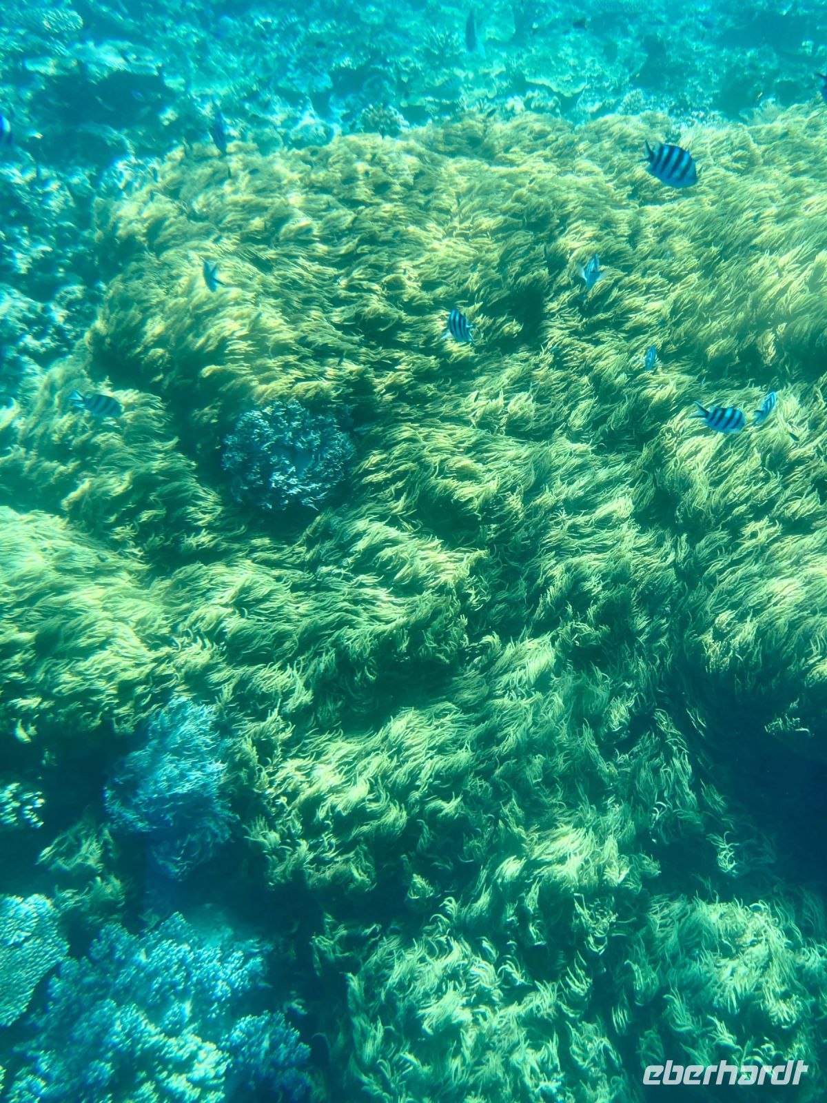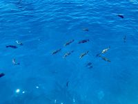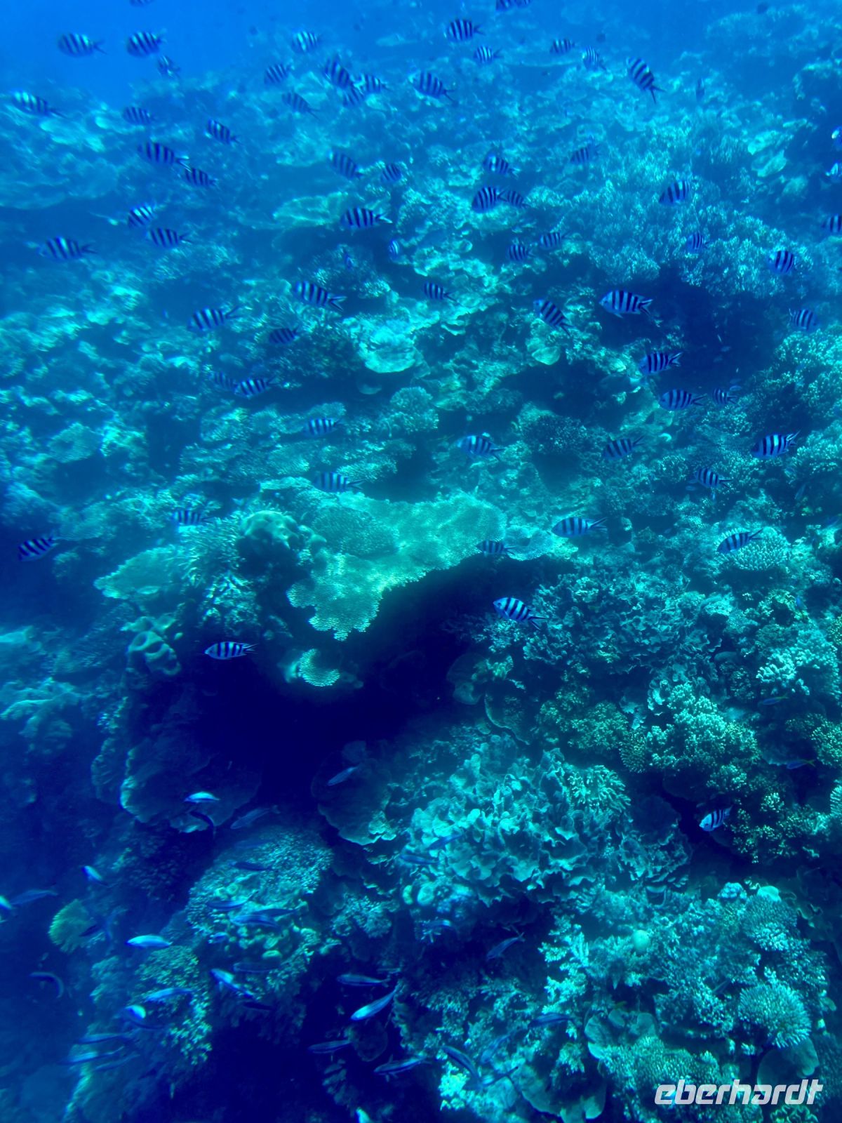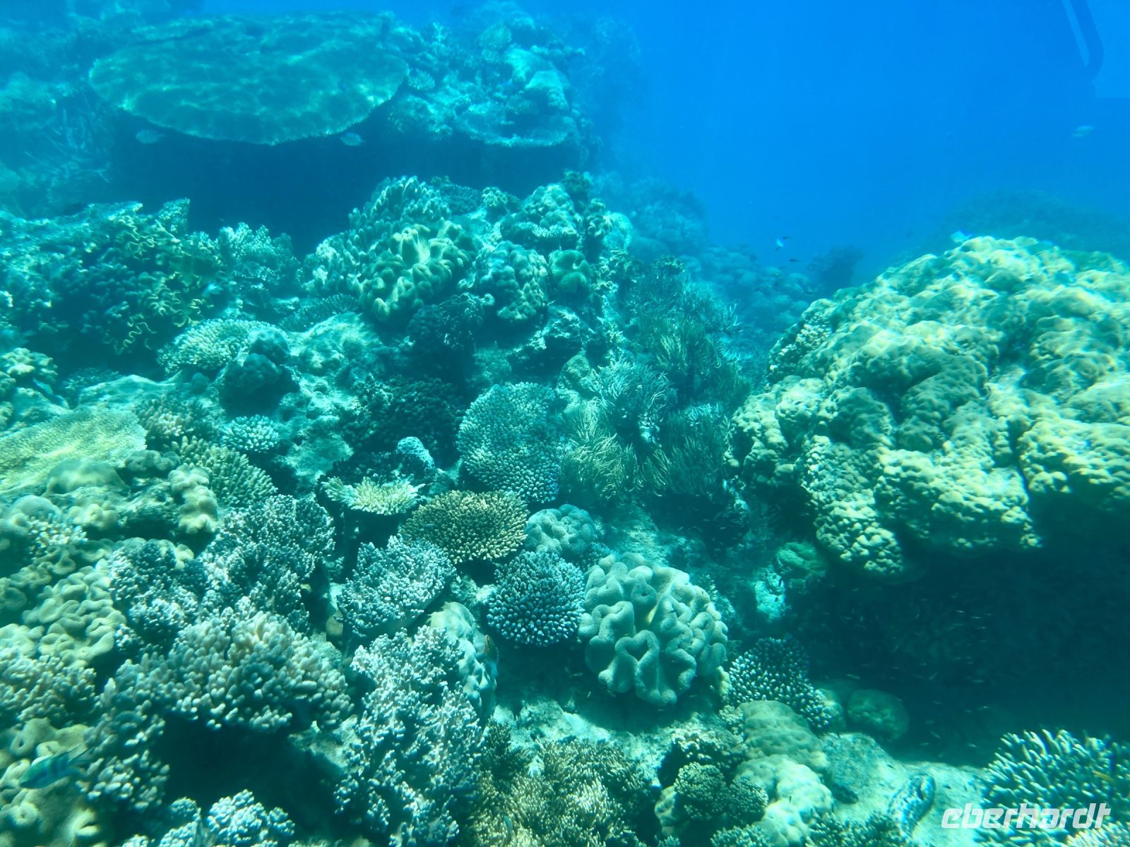 Nach dem Mittagessen, das uns an Bord serviert wurde, waren wir bereit, uns beim Schnorcheln auszupowern. Es war ein unglaubliches Erlebnis, inmitten des Riffs zu schwimmen, umgeben von zahlreichen bunten Fischen, majestätischen Korallen und anderen Meeresbewohnern. Die Farbenpracht und Vielfalt der Unterwasserwelt überwältigten uns. Wir hätten Stunden im Wasser verbringen können, so sehr waren wir von der Schönheit und Ruhe des Riffs gefangen, doch leider verging die Zeit viel zu schnell.