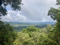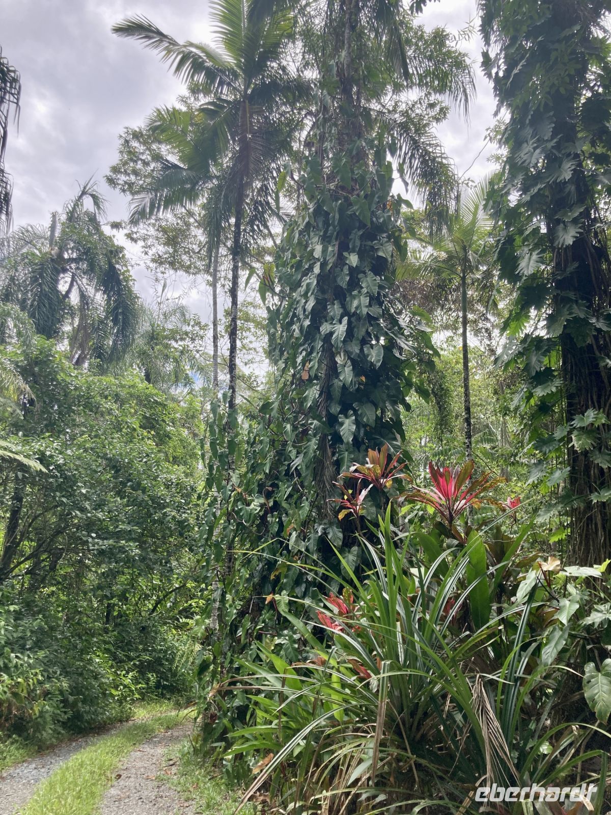 Unser letzter Ausflug führte uns heute in den Daintree Nationalpark, eines der ältesten und artenreichsten Regenwaldgebiete der Welt. Entlang der malerischen Küstenstraße fuhren wir in dieses außergewöhnliche Naturgebiet, das zum UNESCO-Weltkulturerbe gehört. Der Park erstreckt sich über eine Fläche von rund 1.200 Quadratkilometern. Der Daintree Rainforest ist der älteste kontinuierlich existierende Regenwald der Erde, der seit mehr als 135 Millionen Jahren besteht. Mit seinen 1.385 verschiedenen Baumarten ist der Park ein wahres Paradies für Naturliebhaber und Botaniker. Ein Regenwald benötigt eine Durchschnittstemperatur von mindestens 24 Grad Celsius und jährlich mindestens 2.000 Millimeter Niederschlag, um als solcher zu gelten.