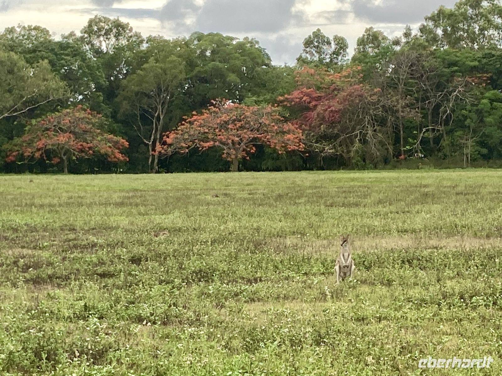 Nachdem wir diese spannende Bootsfahrt erlebt hatten, fuhren wir weiter nach Port Douglas, einem beliebten Ferienort. Dort hatten wir Zeit für einen entspannenden Strandspaziergang und genossen die malerische Aussicht auf das Meer. Als krönenden Abschluss des Tages und unserer Reise hatten wir noch das Glück, Wallabies in freier Wildbahn zu beobachten – ein unvergesslicher Moment.